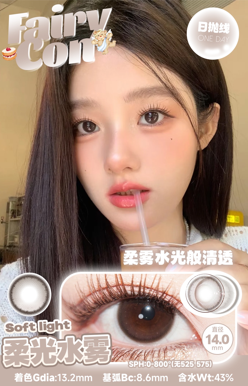 fairycon日抛 柔光水雾 超级温柔 14.0mm 含硅水凝胶 日抛无售后!!!