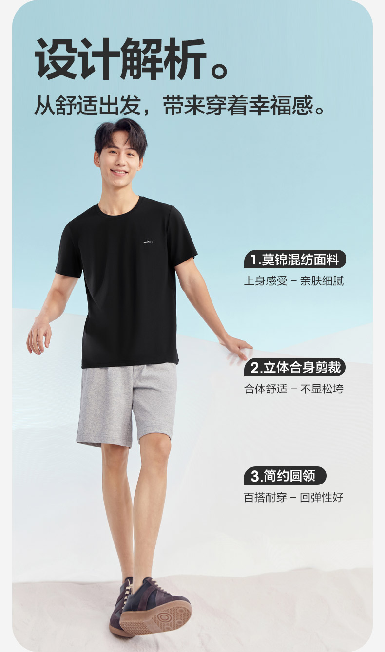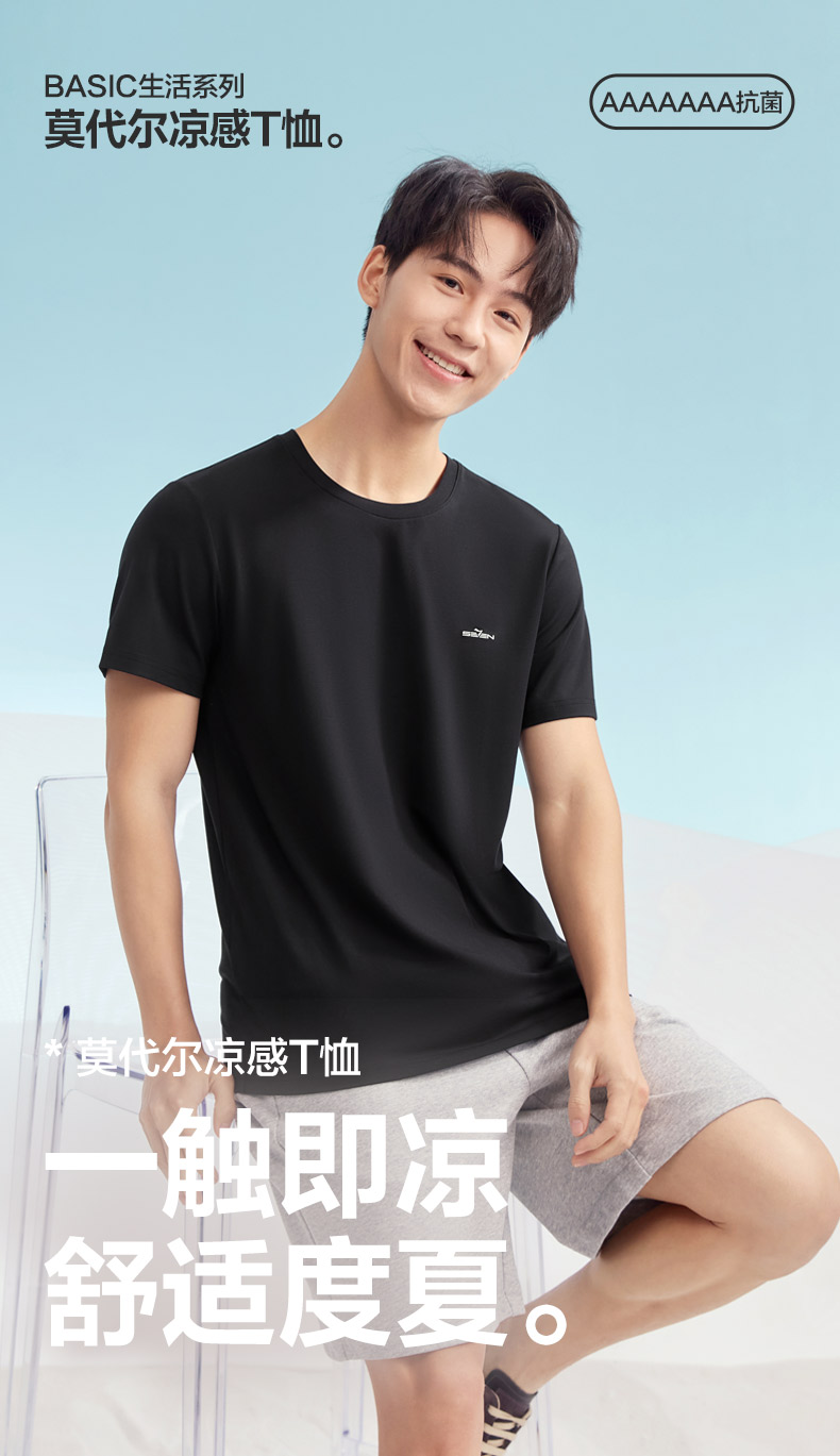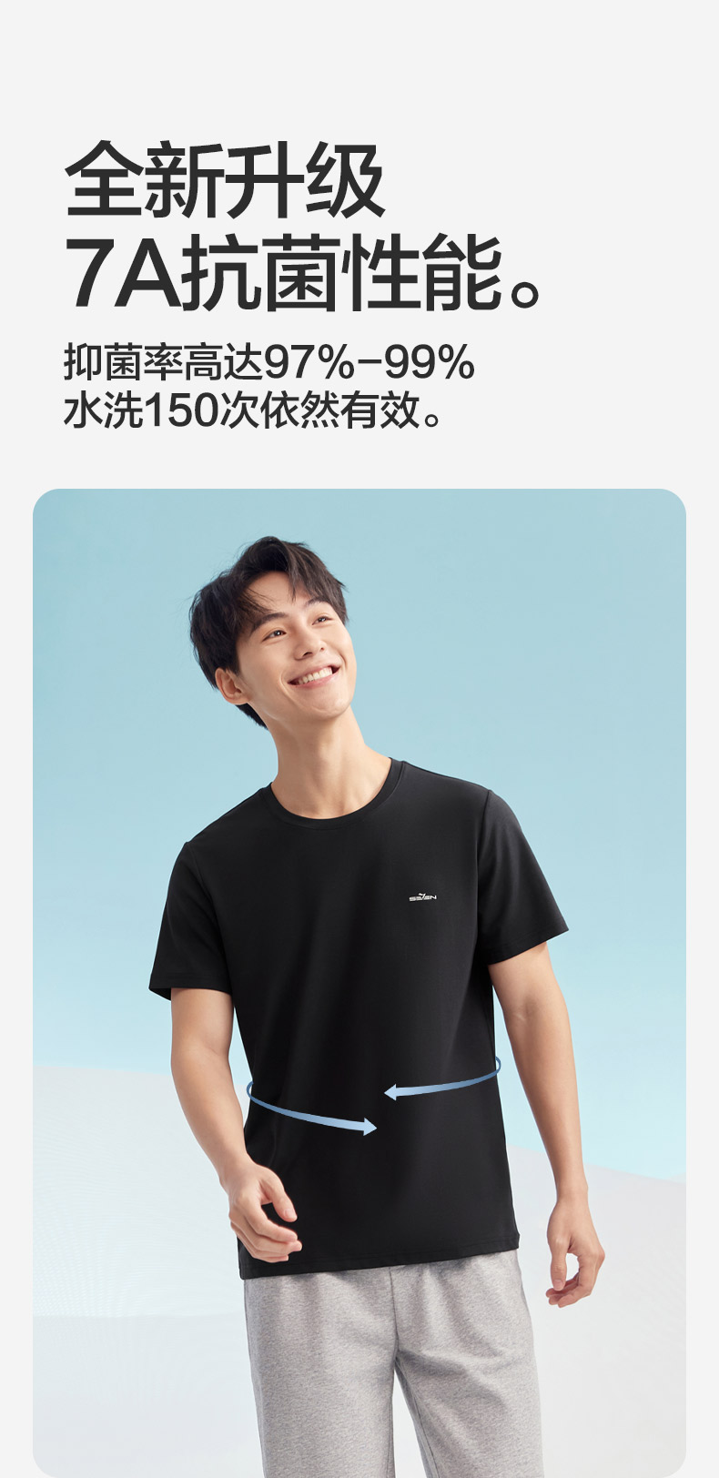 柒牌短袖T恤男式2025夏季凉感7A抗菌含莫代尔打底内衣圆领体恤衫128F70220