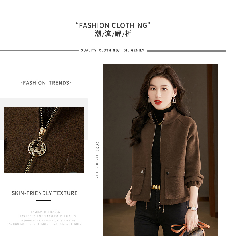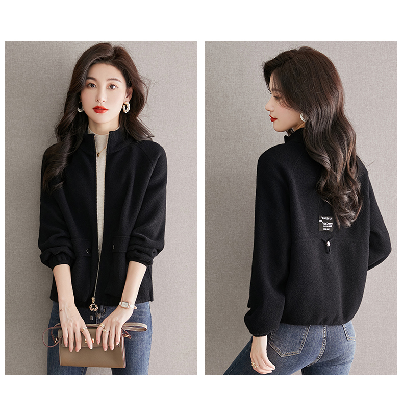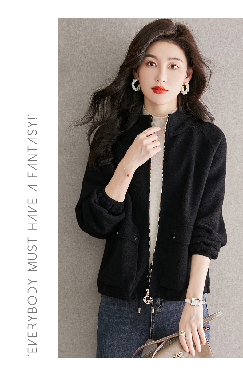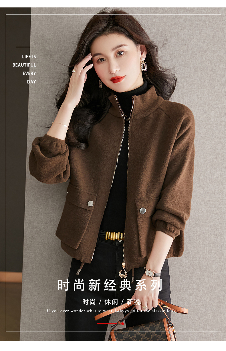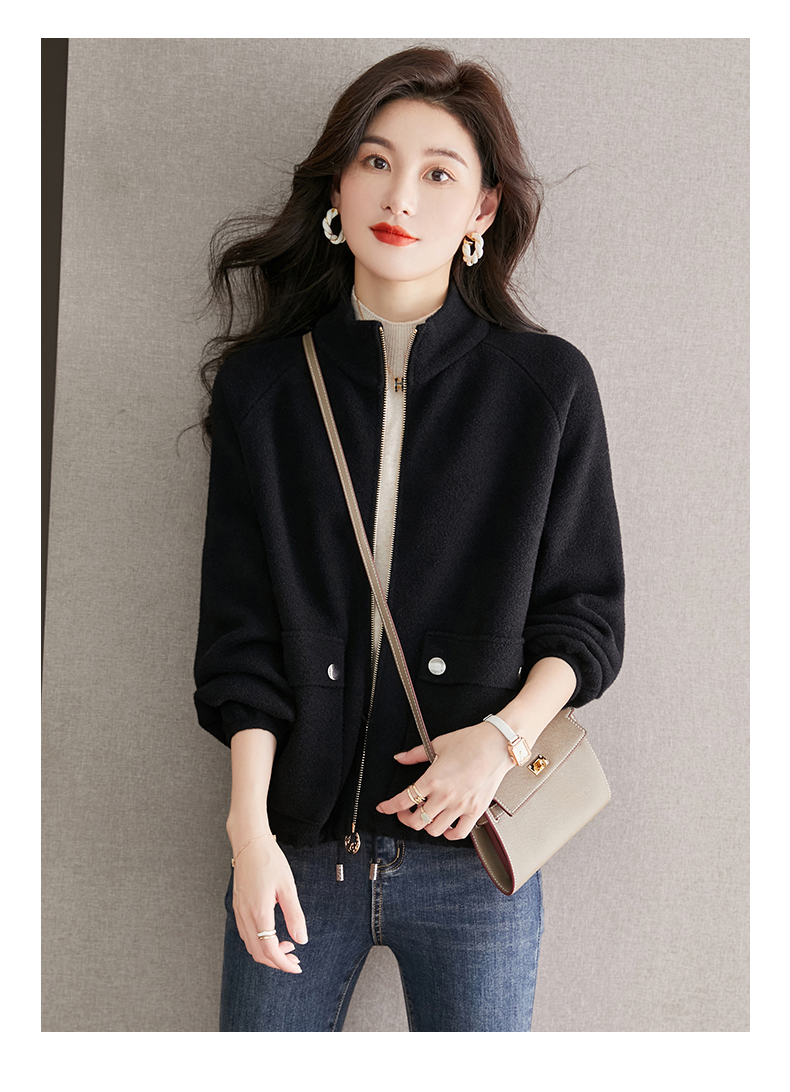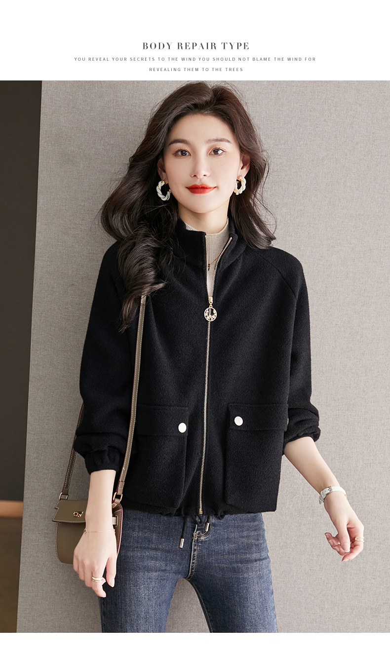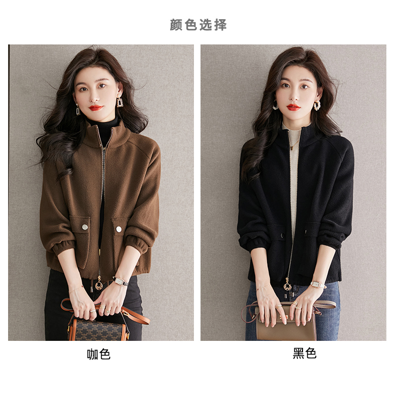 秋冬季立领小个子外套女,短款宽松洋气外搭开衫纯色抽绳拉链上衣厚CC-22-3607