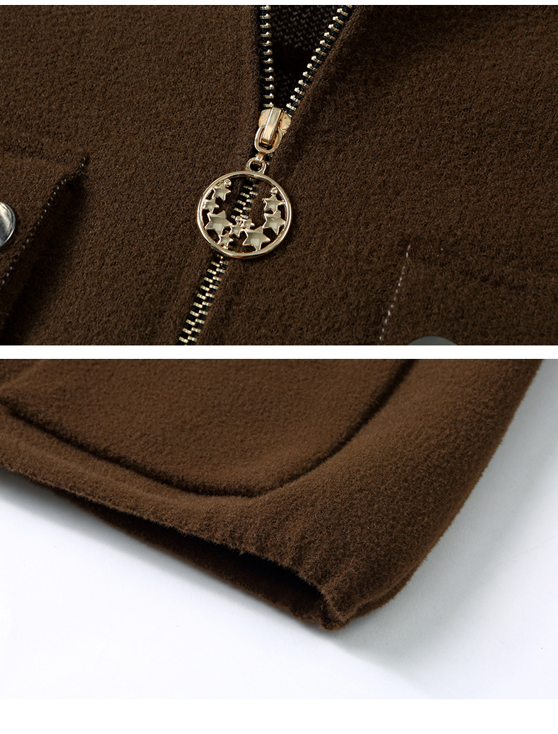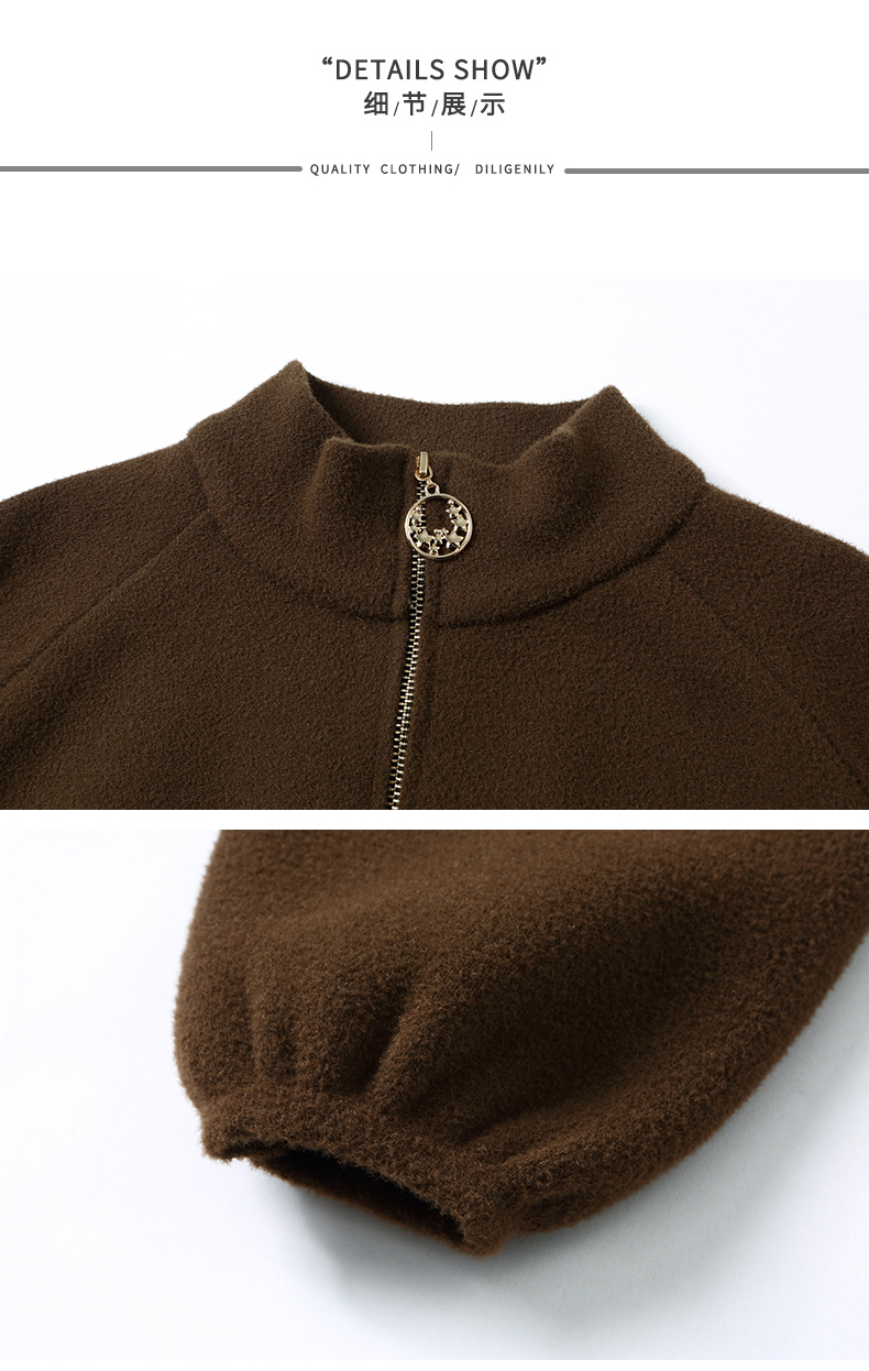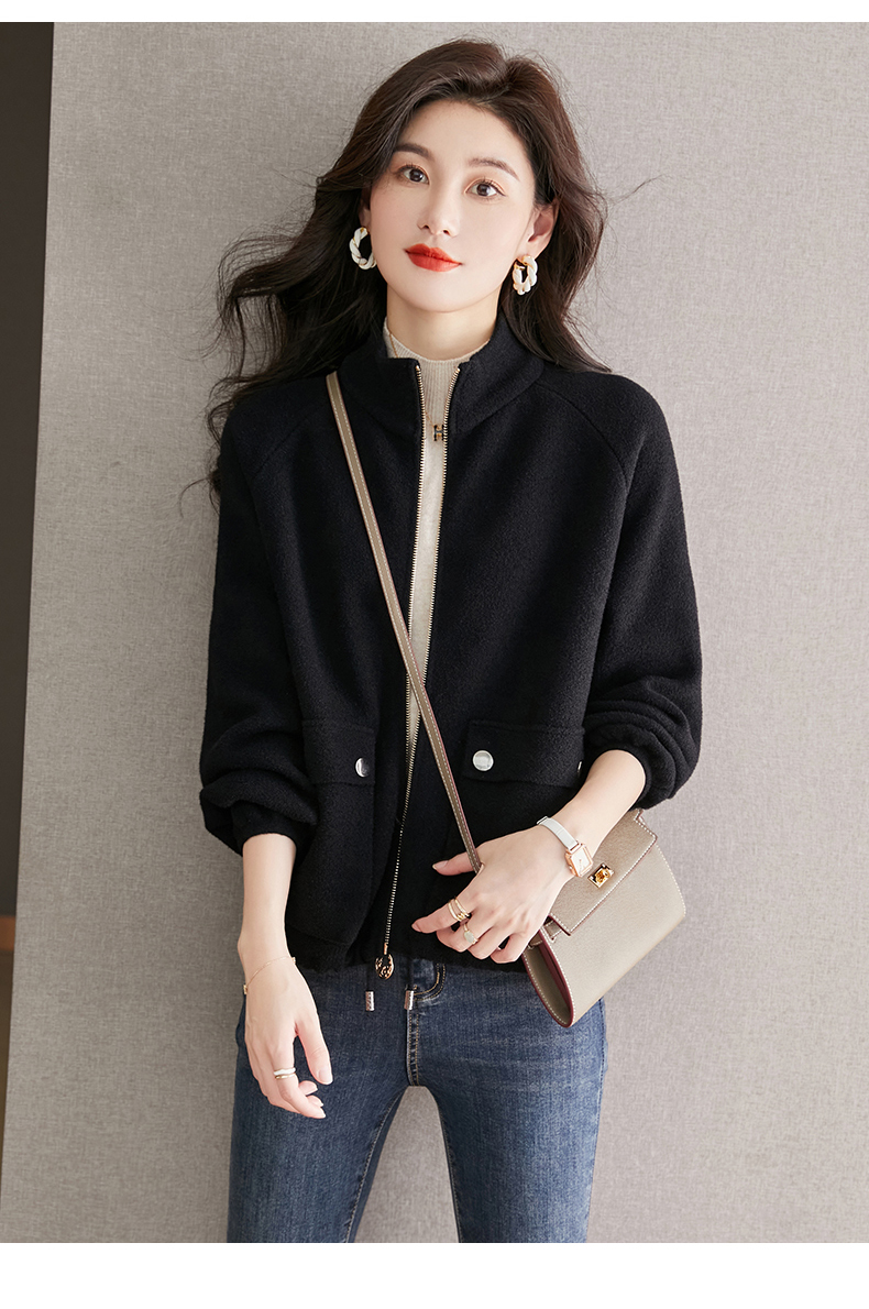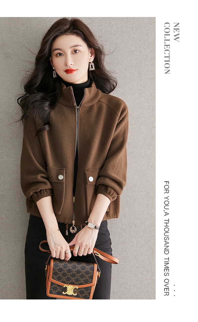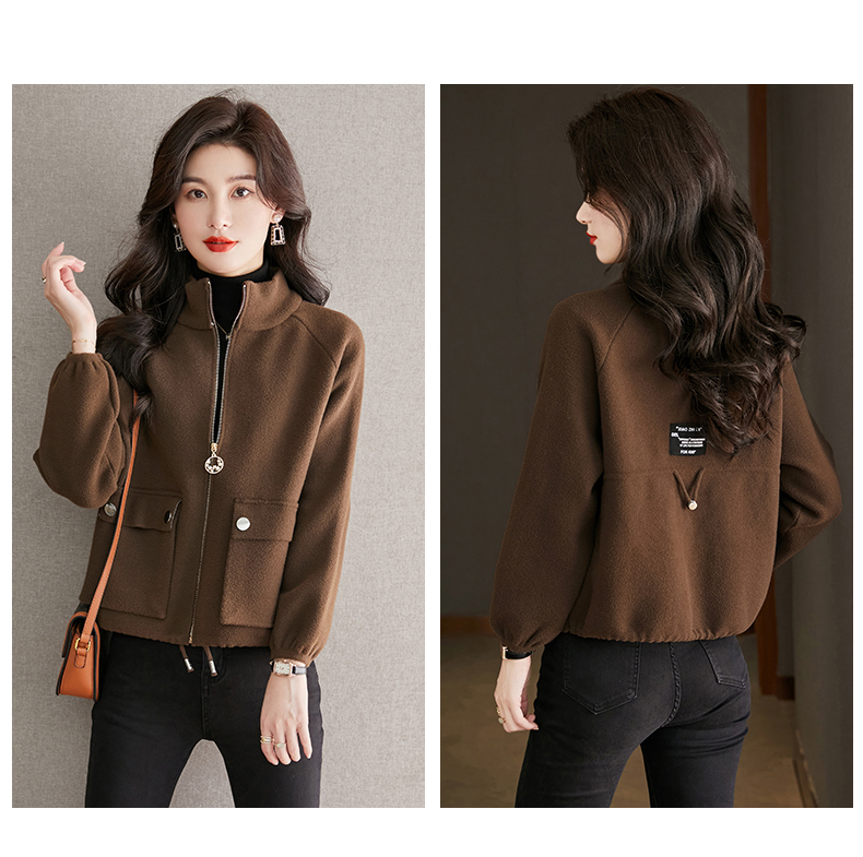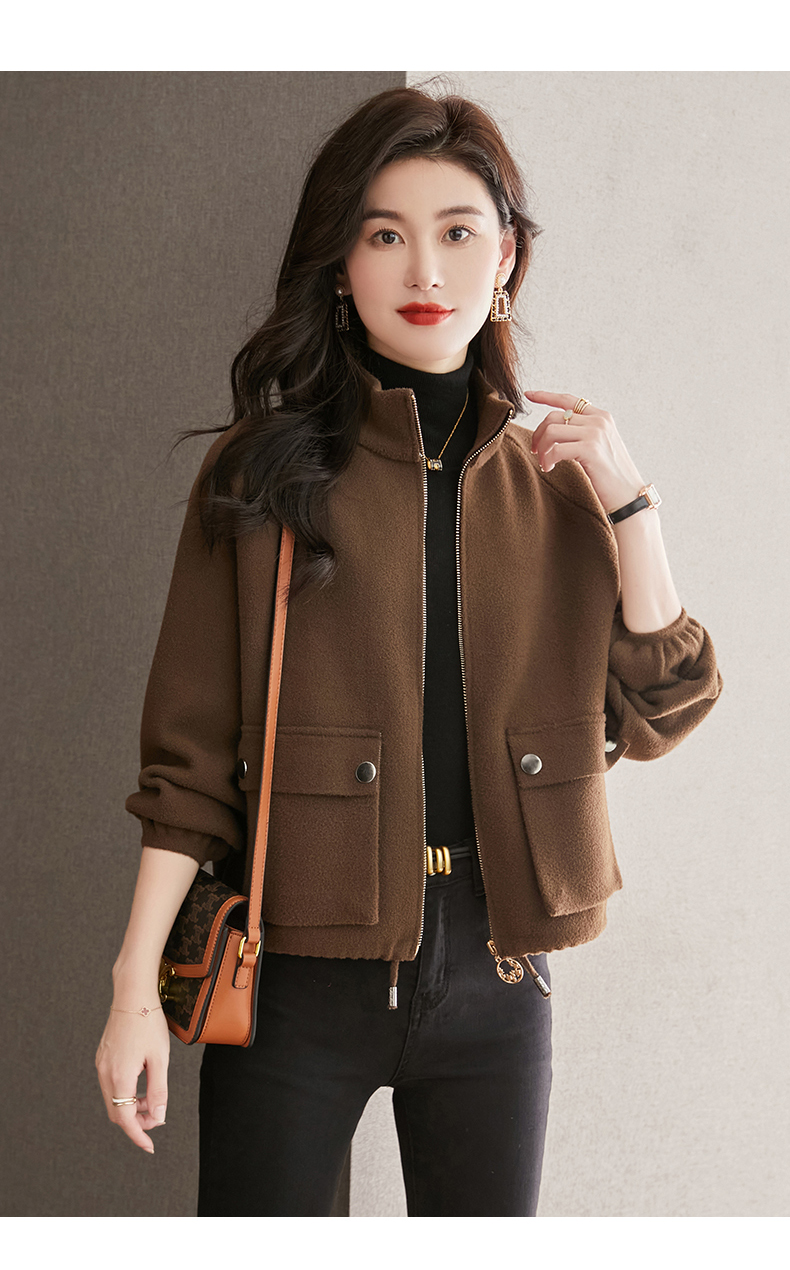 秋冬季立领小个子外套女,短款宽松洋气外搭开衫纯色抽绳拉链上衣厚CC-22-3607