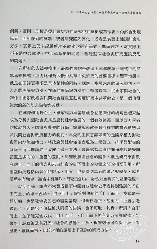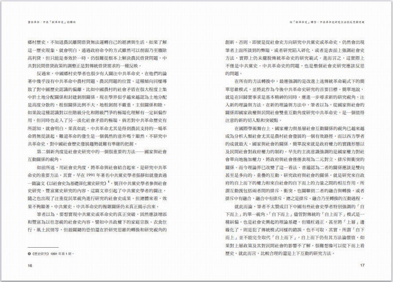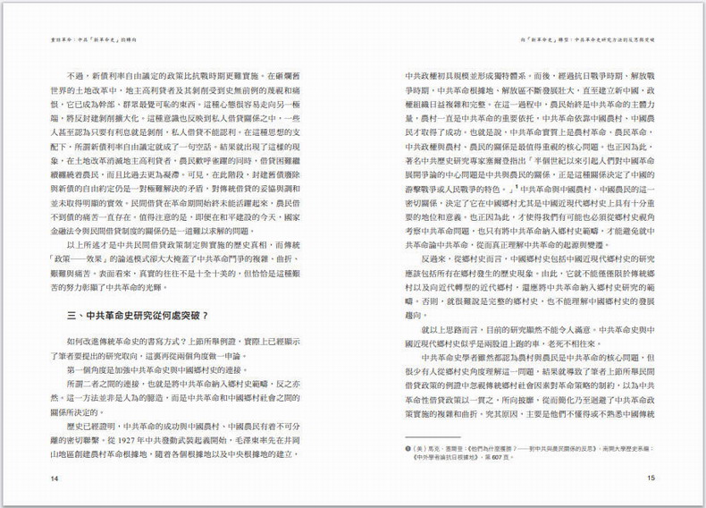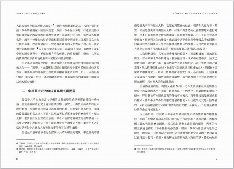 本書內容主要包括:一,“新革命史”研究的理念和方法。率先提出新革命史學術概念,宣導使用常識、常情、常理以及相關學科理論對中共革命史進行重新審視和研究,以呈現中共革命的運作形態尤其是艱難、曲折與複雜性;二,中共革命與鄉村社會的互動關係。對土地改革中的農民心態、農民參加革命的動機、革命策略與傳統制約等經典問題,提出了新的解釋;三,中共革命的其他面相。對中共革命的理論依據、革命動力、革命傳播以及中共革命形象等問題,進行了描述和分析。