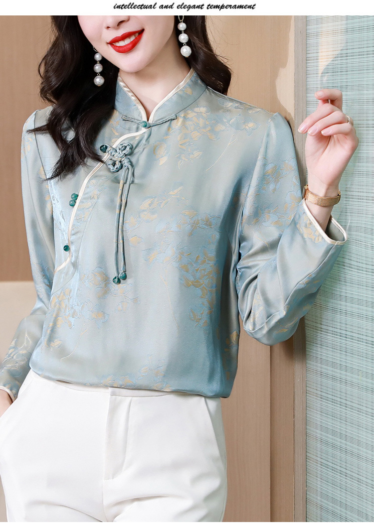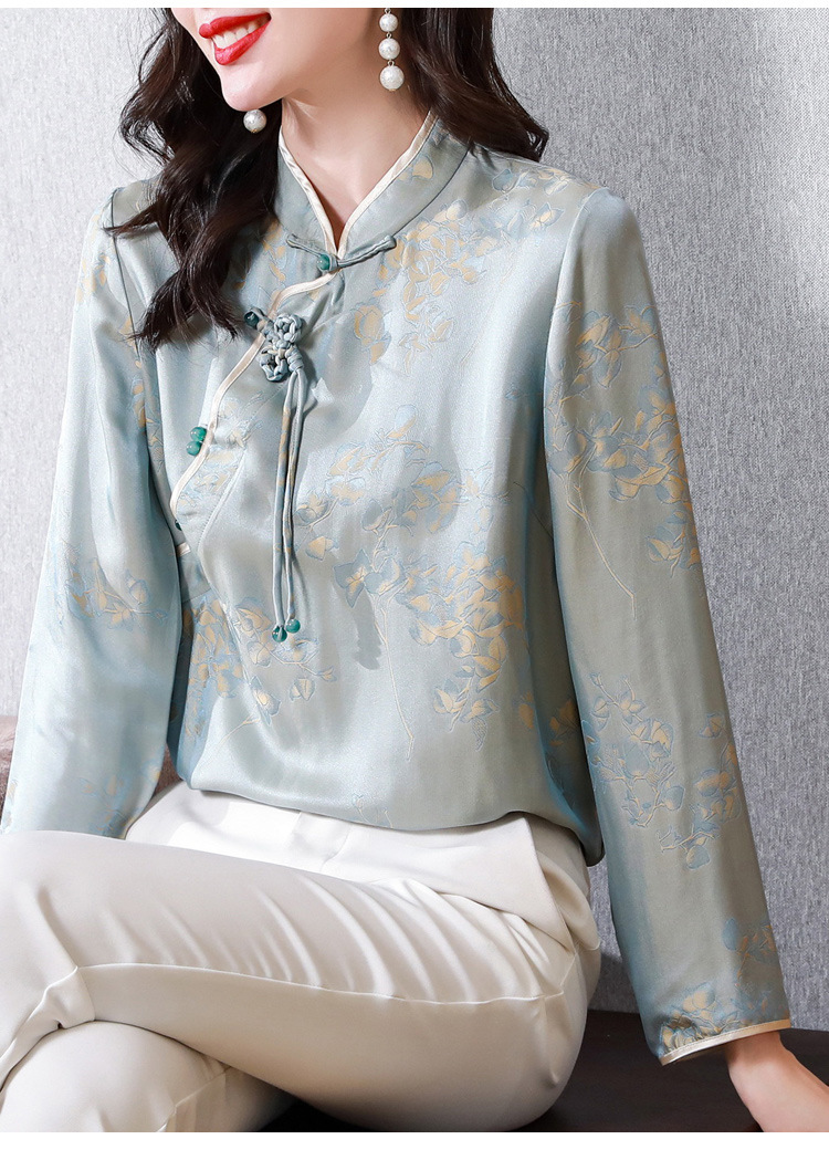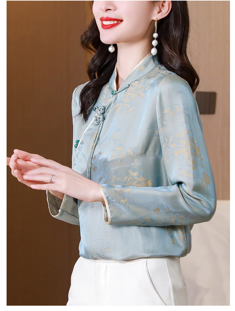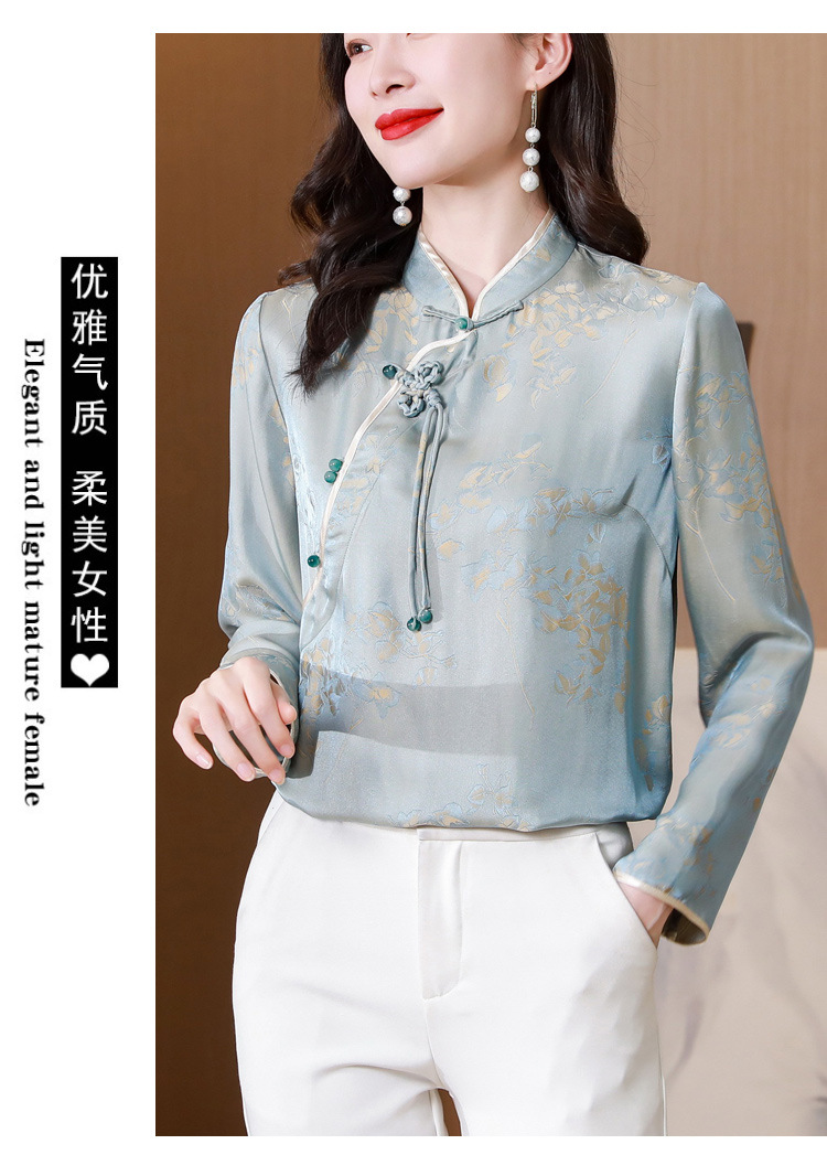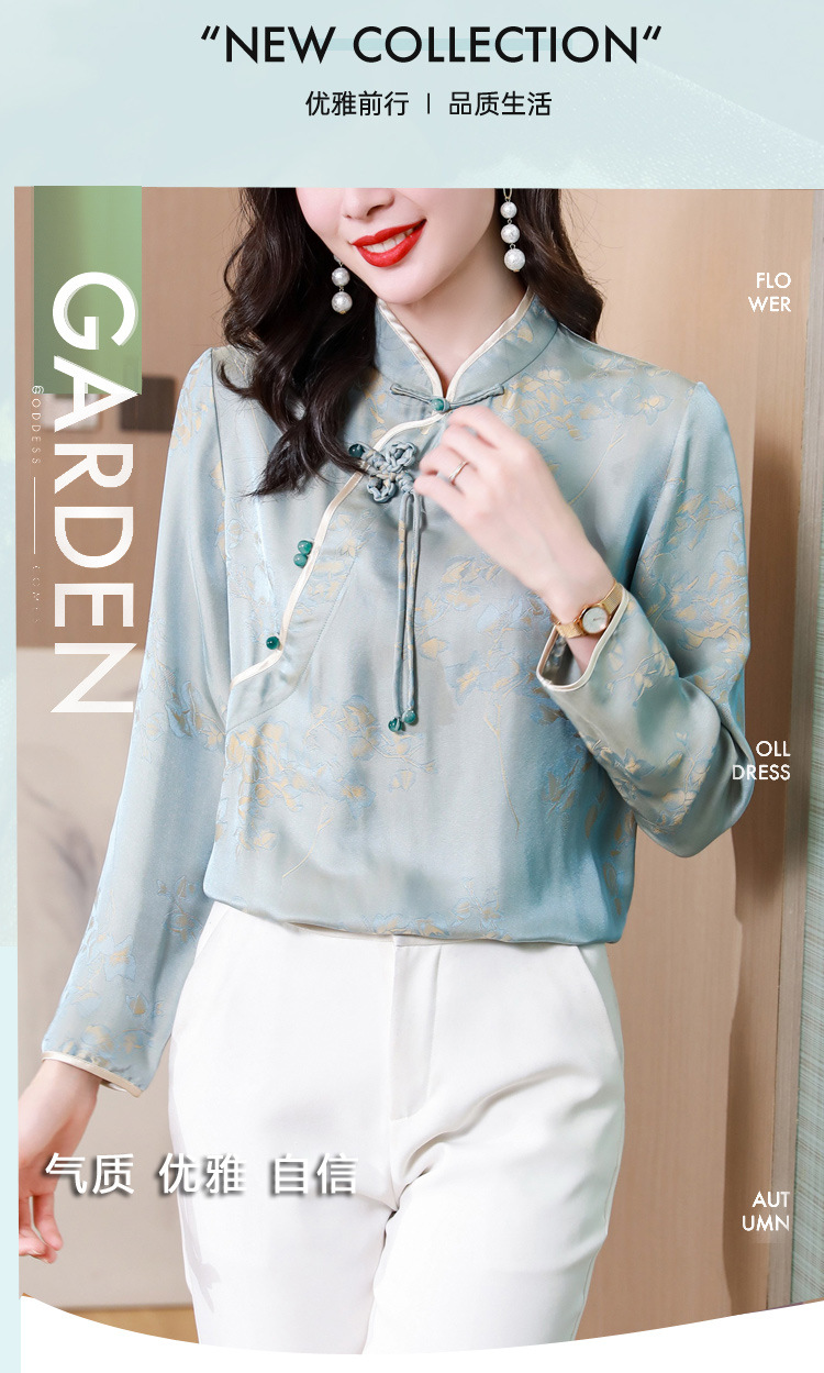 国风复古盘扣提花衬衣别致漂亮衬衣KQL-8287