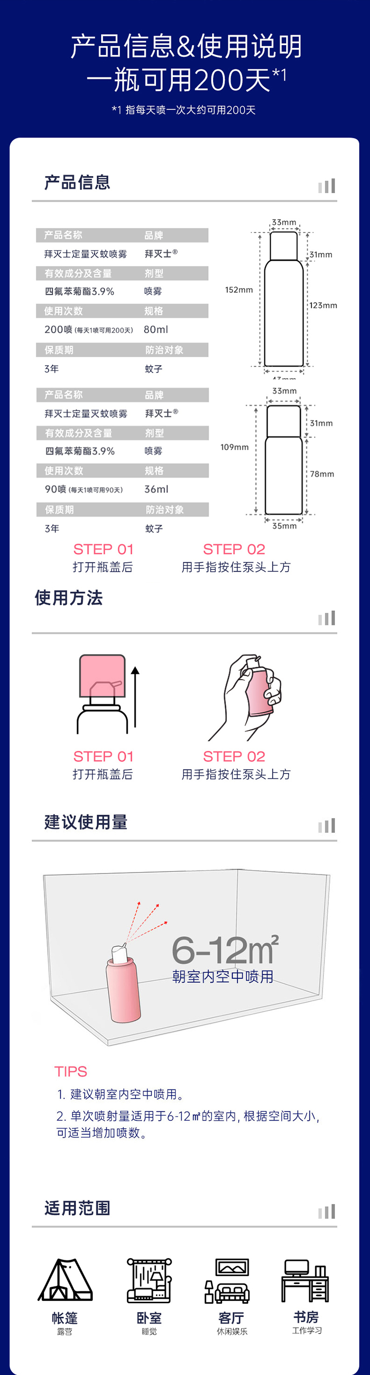 拜耳拜灭士驱蚊喷雾,创新型持续灭蚊气雾剂;无色无味无持续挥;小巧便捷,一喷即可发