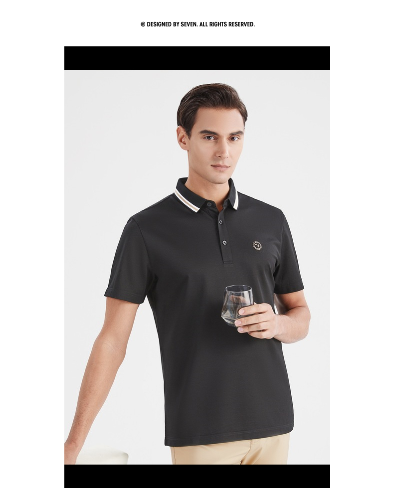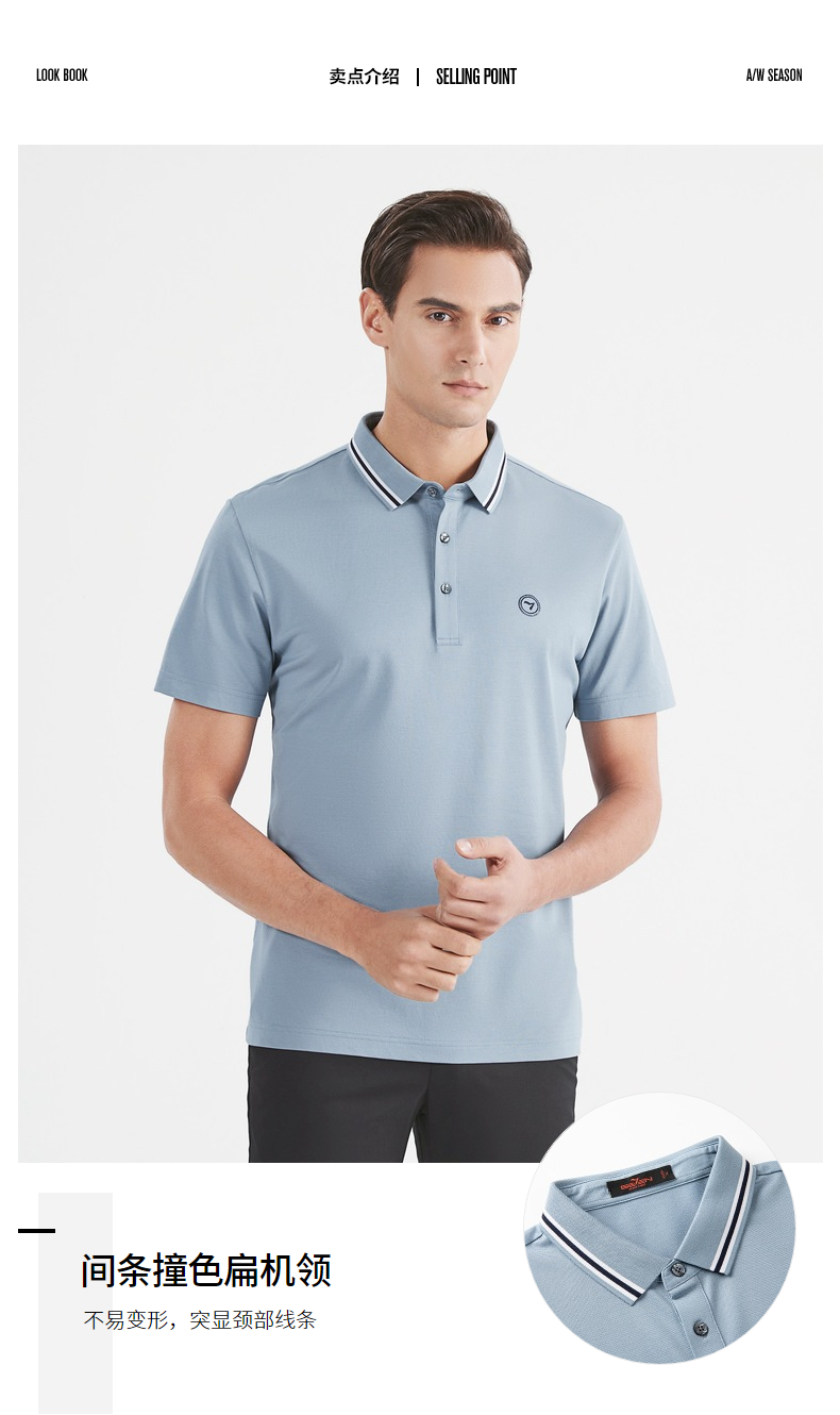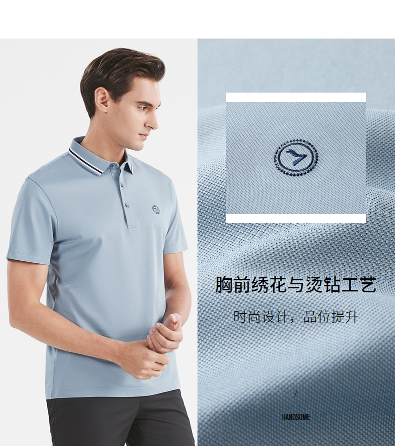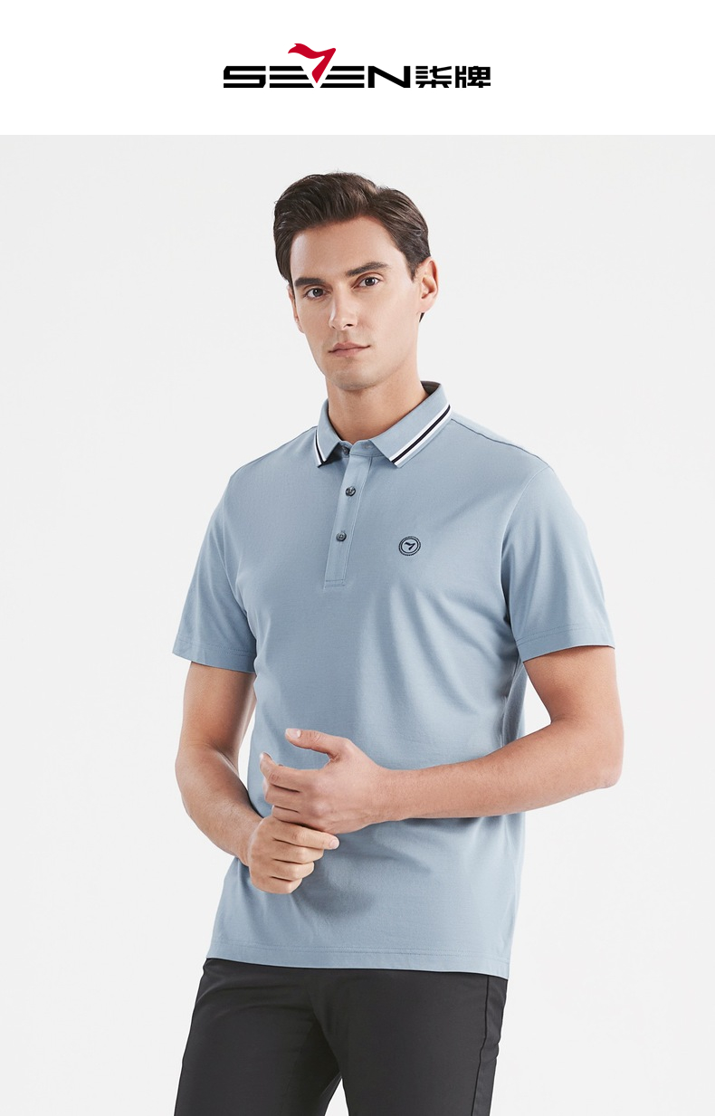 【莱赛尔】柒牌短袖polo衫男商务青年休闲含桑蚕丝薄款翻领体恤衫 122T70900