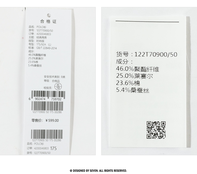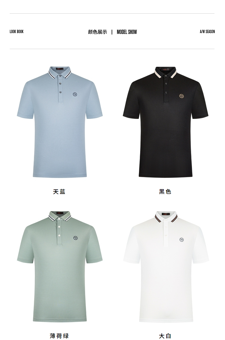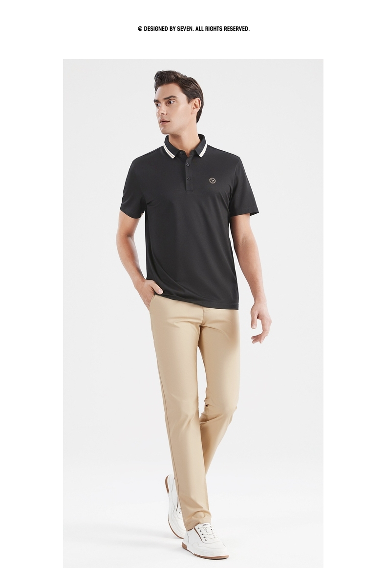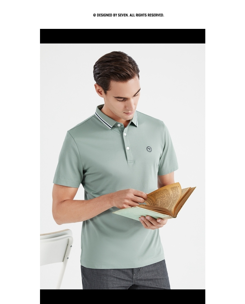 【莱赛尔】柒牌短袖polo衫男商务青年休闲含桑蚕丝薄款翻领体恤衫 122T70900