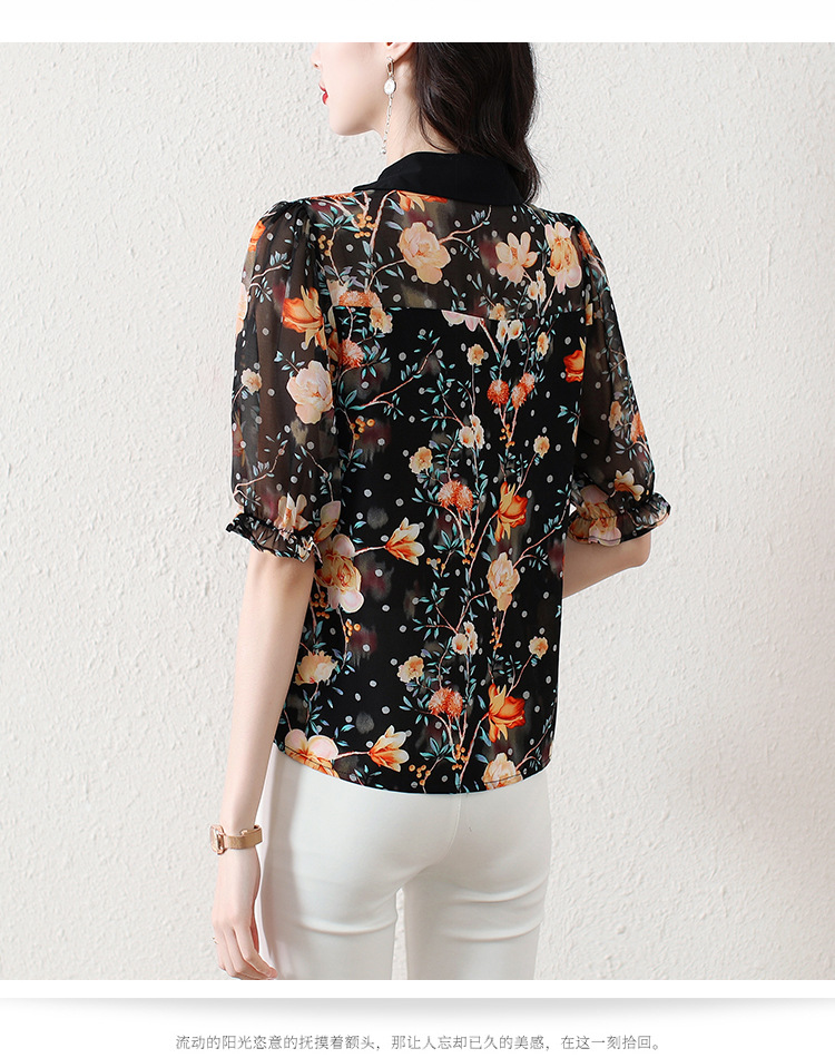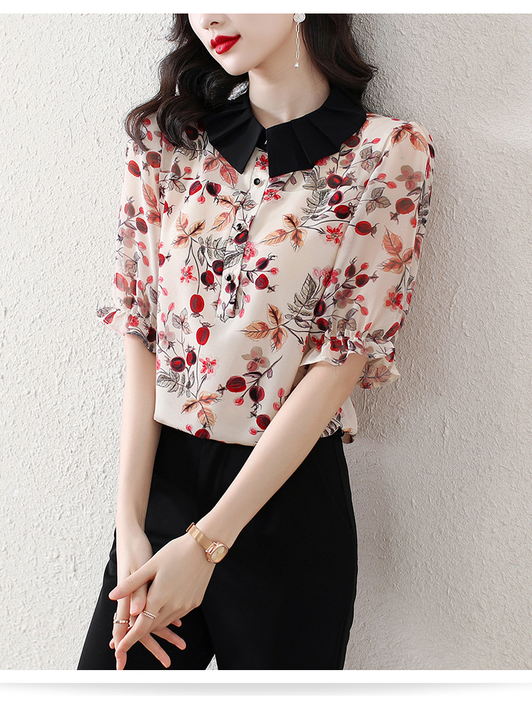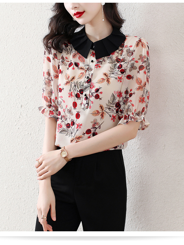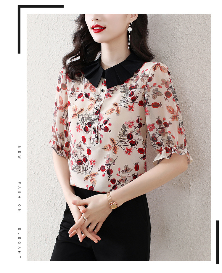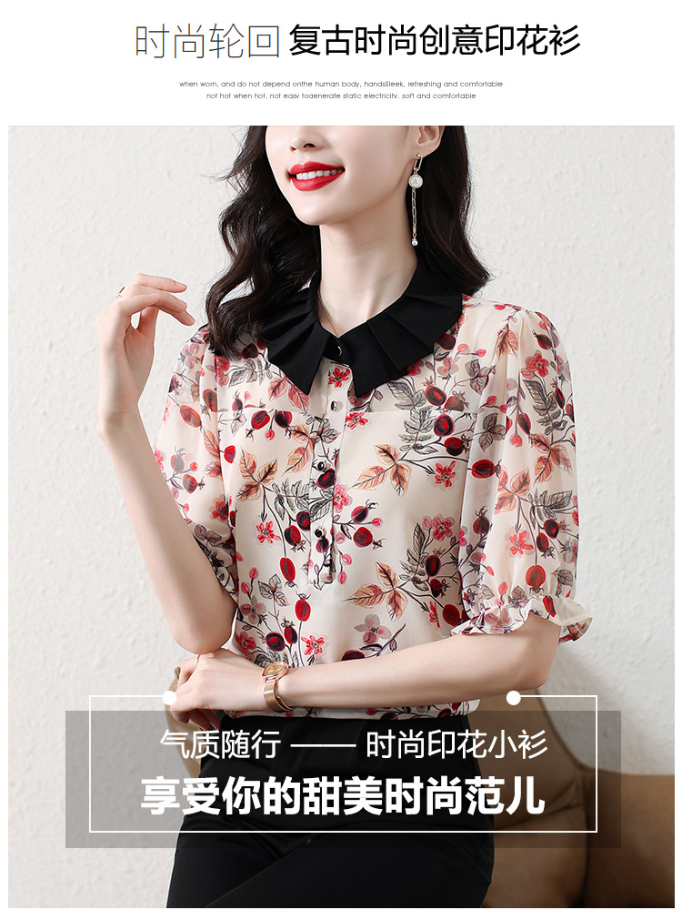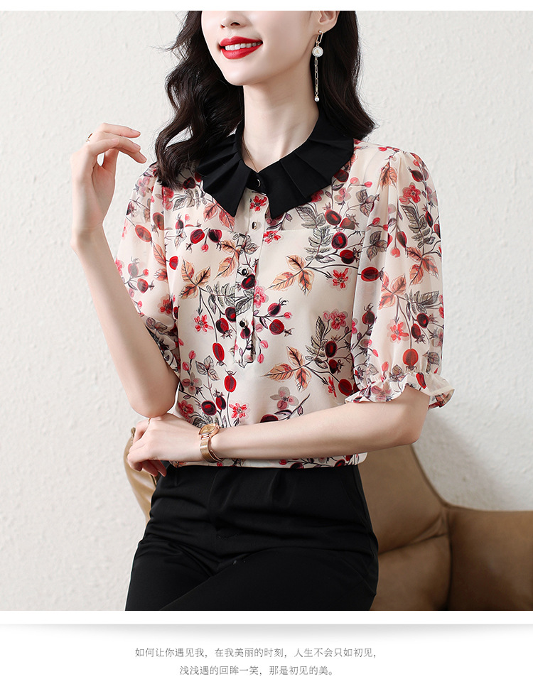 新款撞色,翻领衬衫小碎花气质减龄雪纺衫上衣KQL-9259