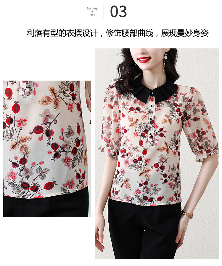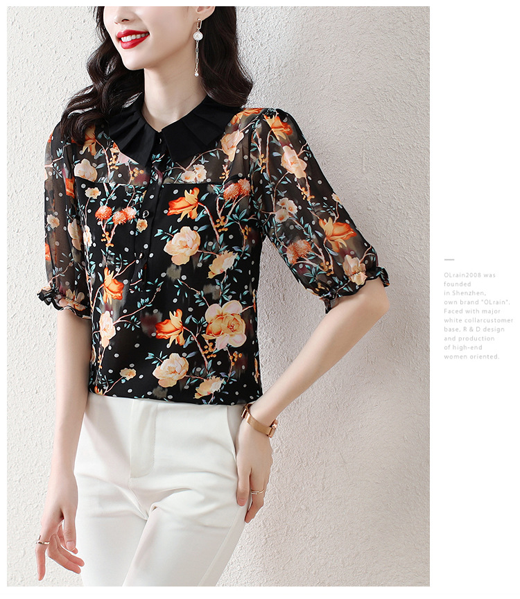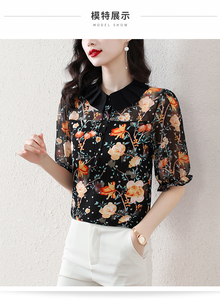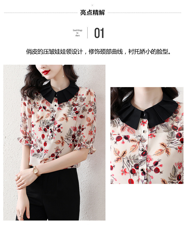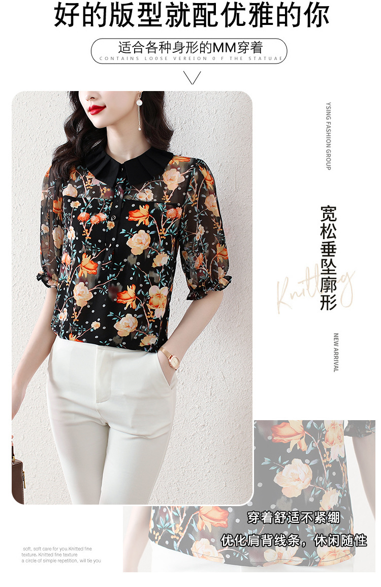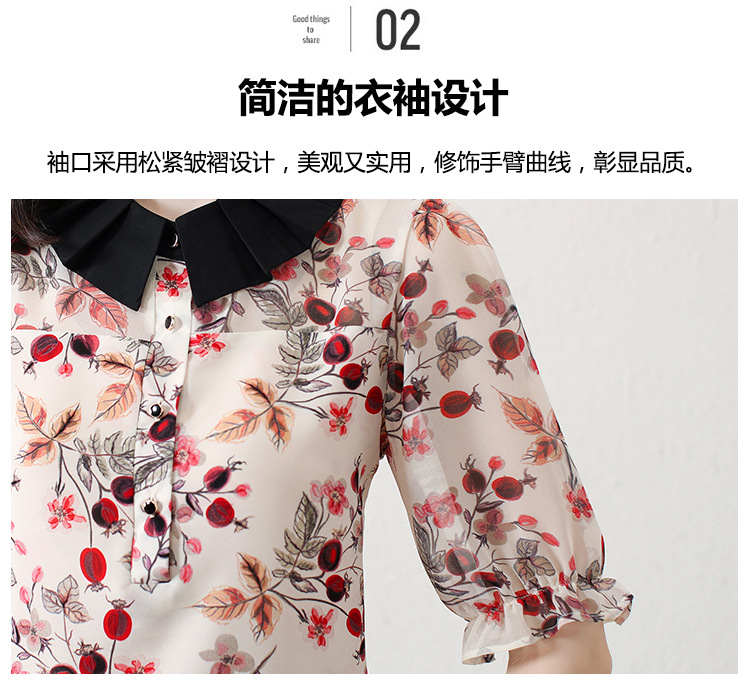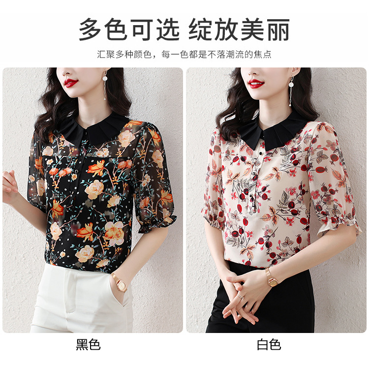 新款撞色,翻领衬衫小碎花气质减龄雪纺衫上衣KQL-9259