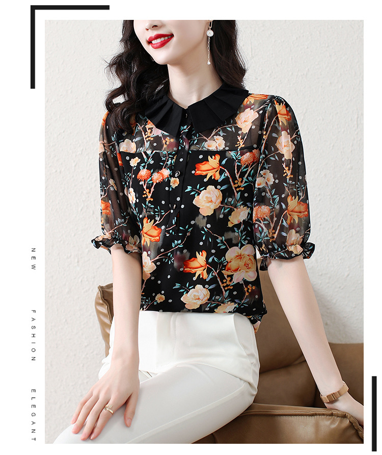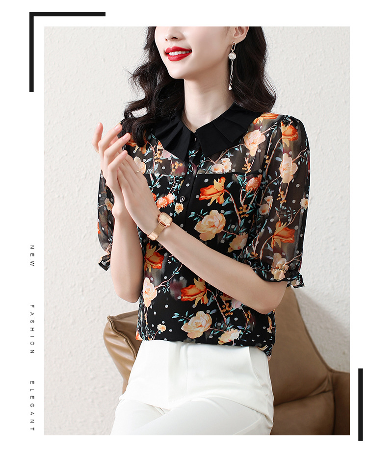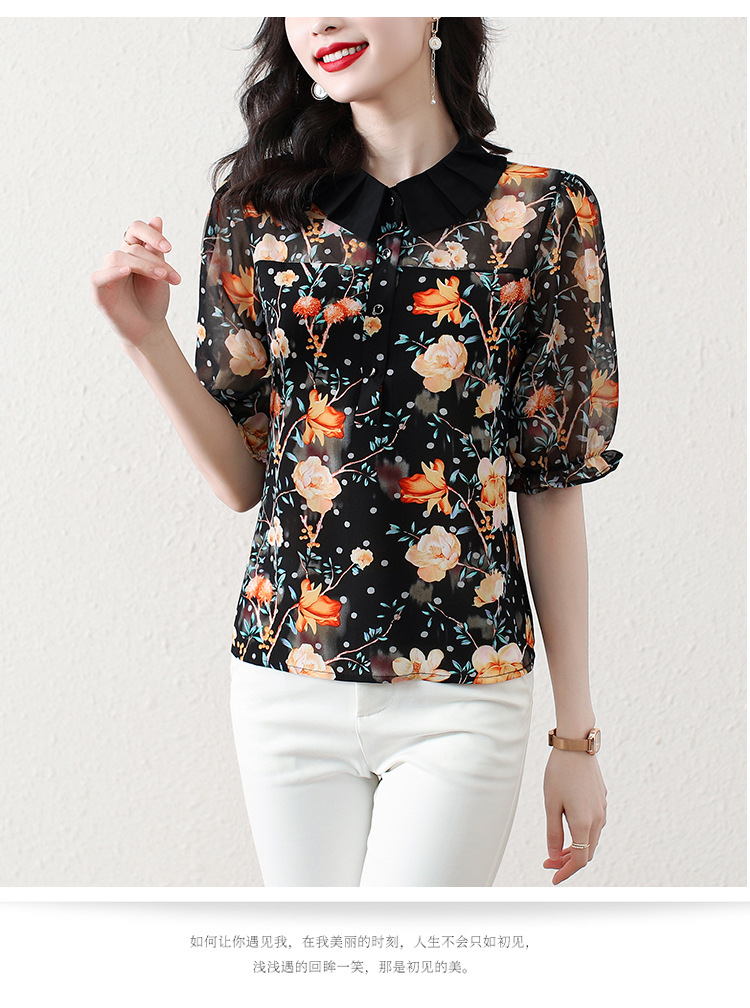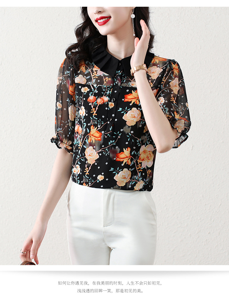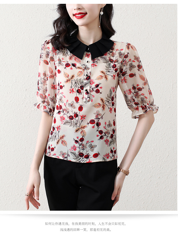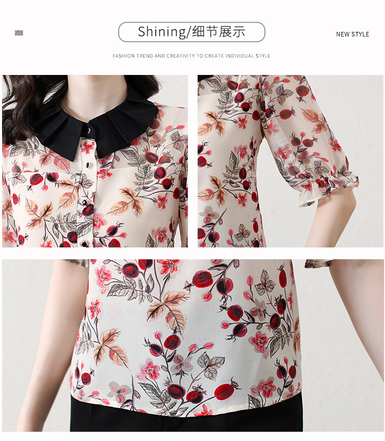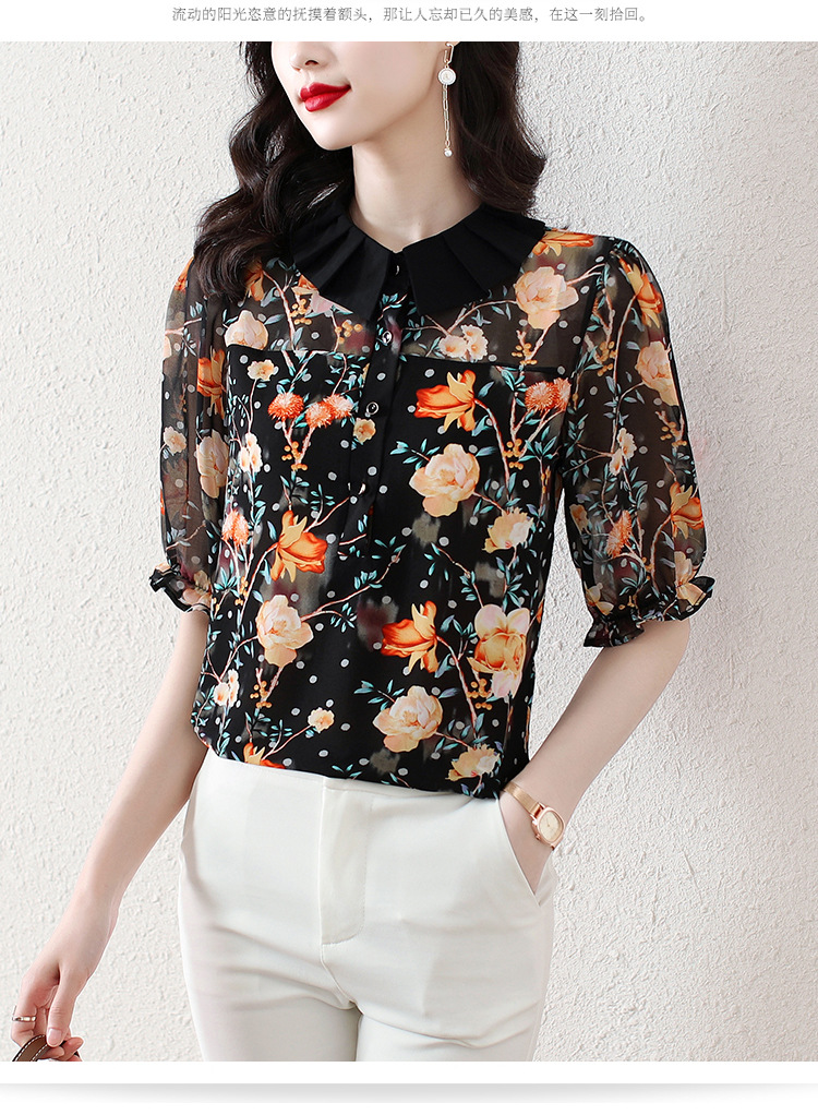 新款撞色,翻领衬衫小碎花气质减龄雪纺衫上衣KQL-9259