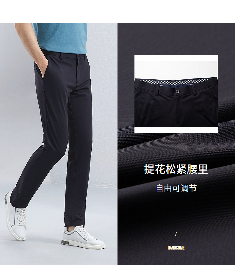 【高弹】柒牌休闲裤男款2024夏季新款商务百搭含桑蚕丝针织长裤子 126H72010