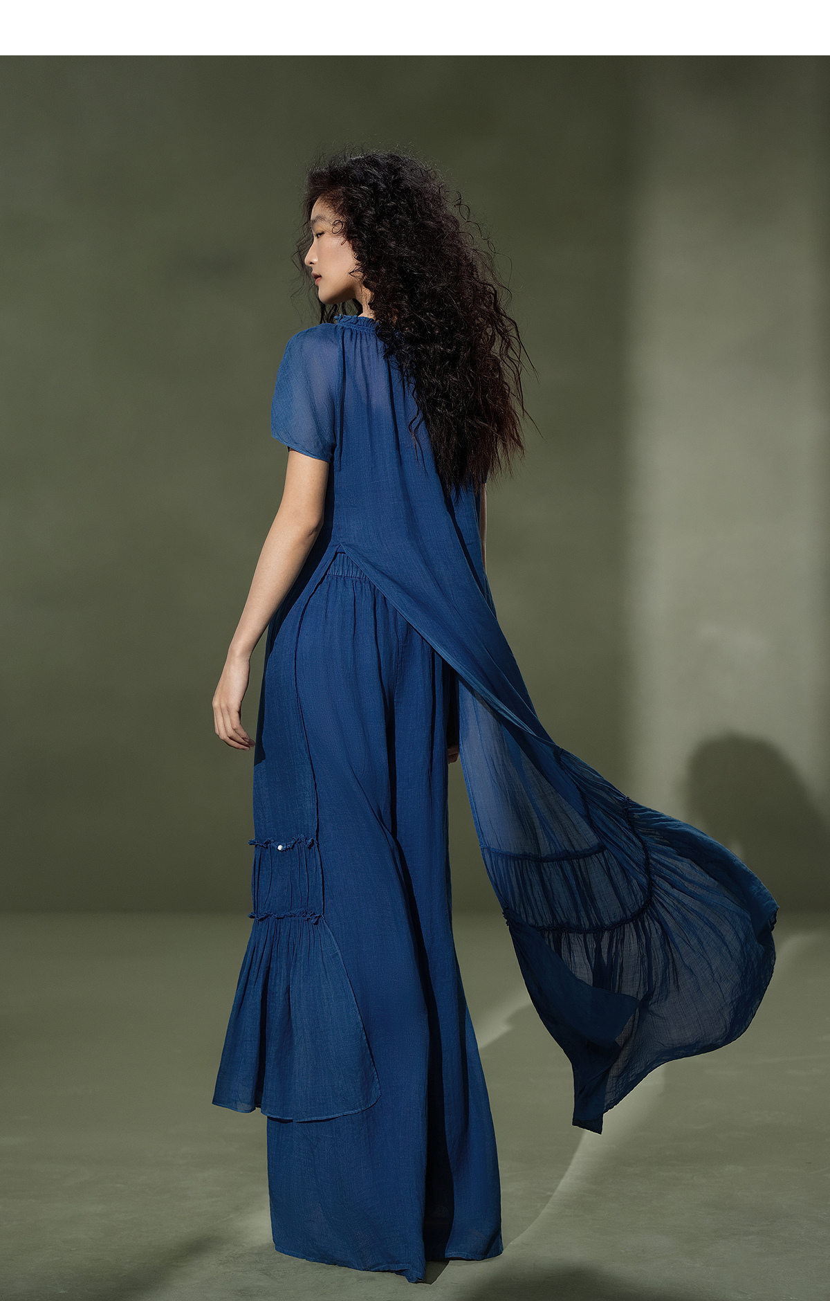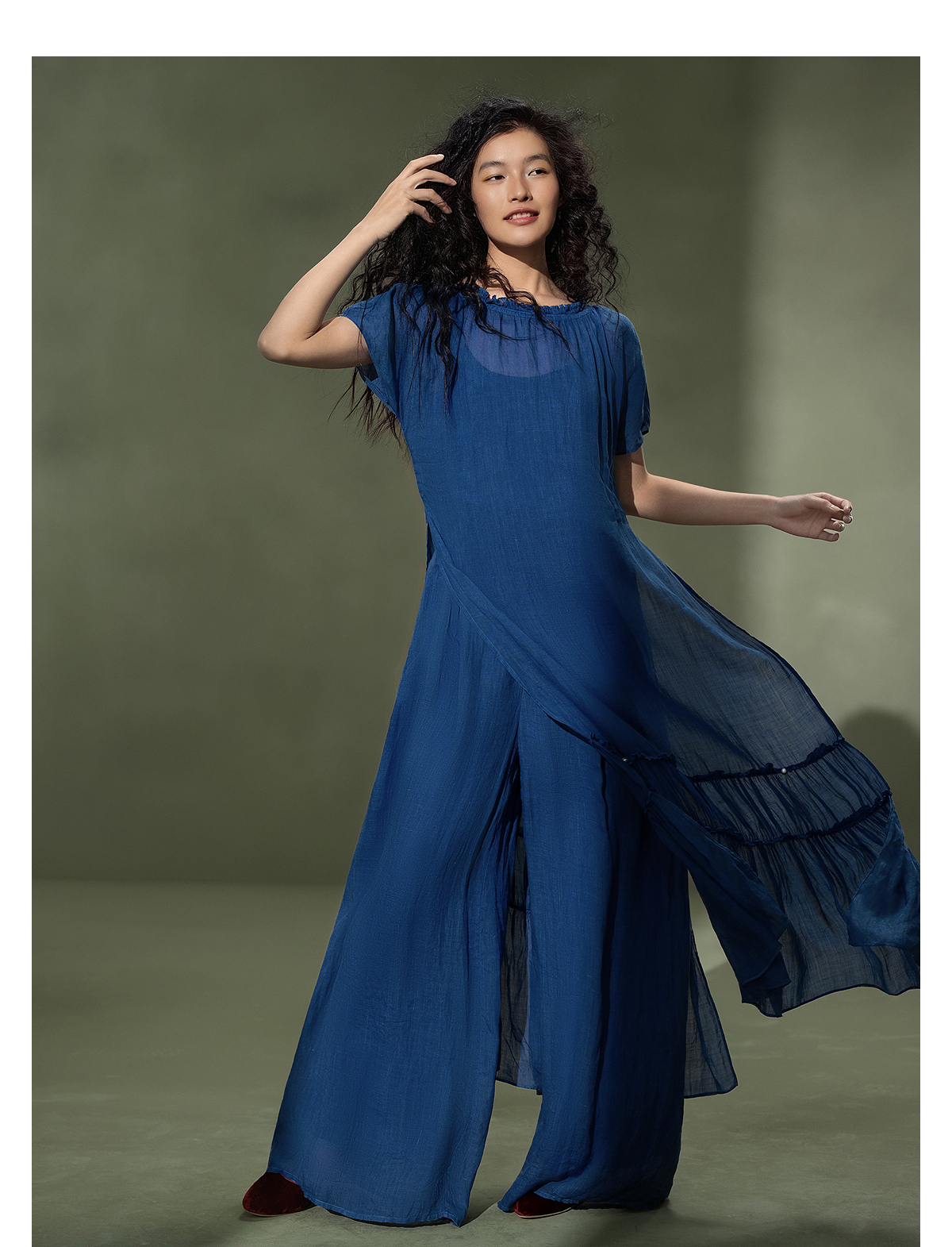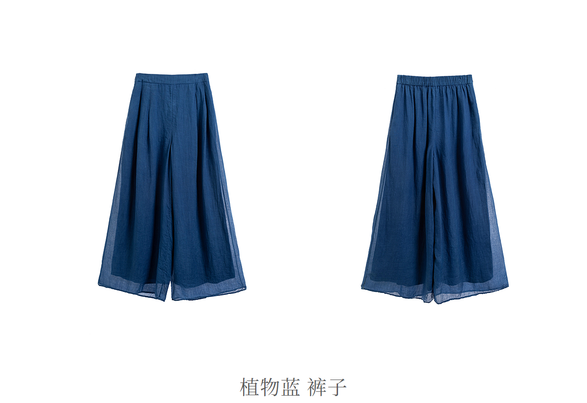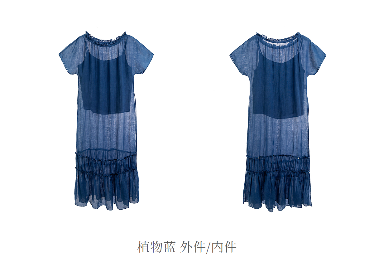 【林栖设计小店】植物染色|手工植物蓝苎麻三件套2026夏新款花边百搭套装1962053