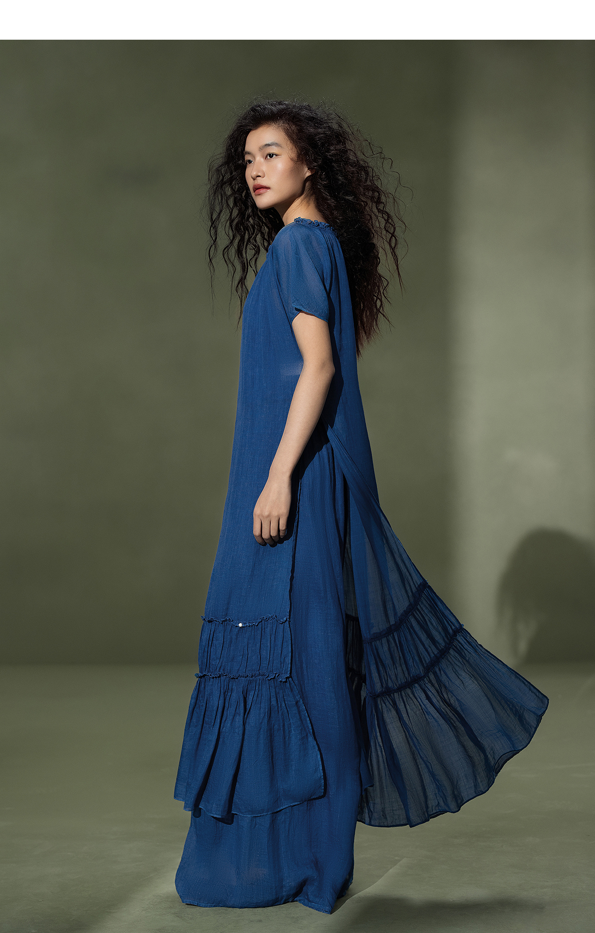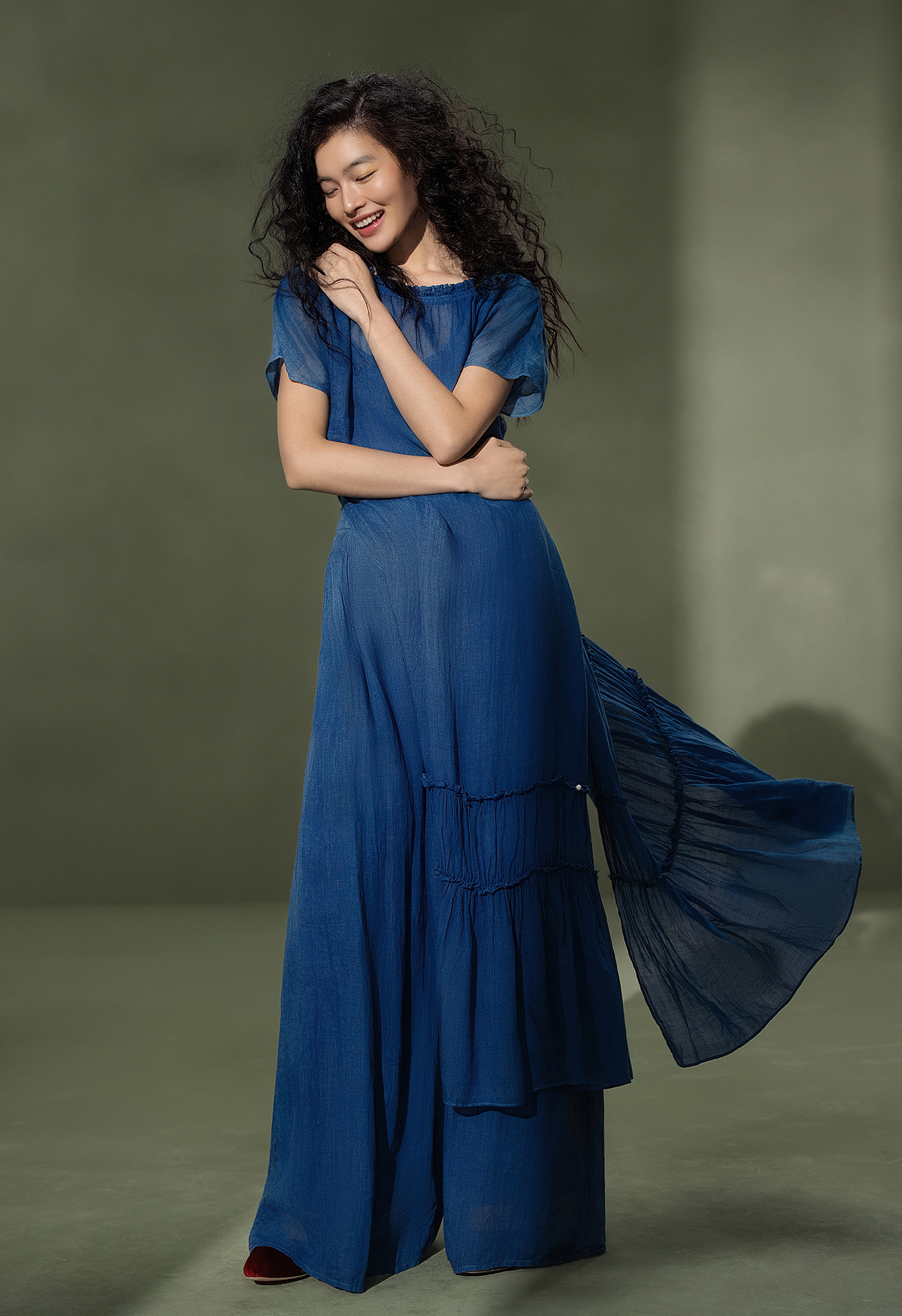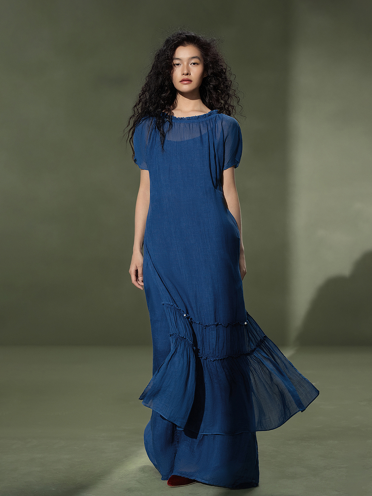 【林栖设计小店】植物染色|手工植物蓝苎麻三件套2026夏新款花边百搭套装1962053