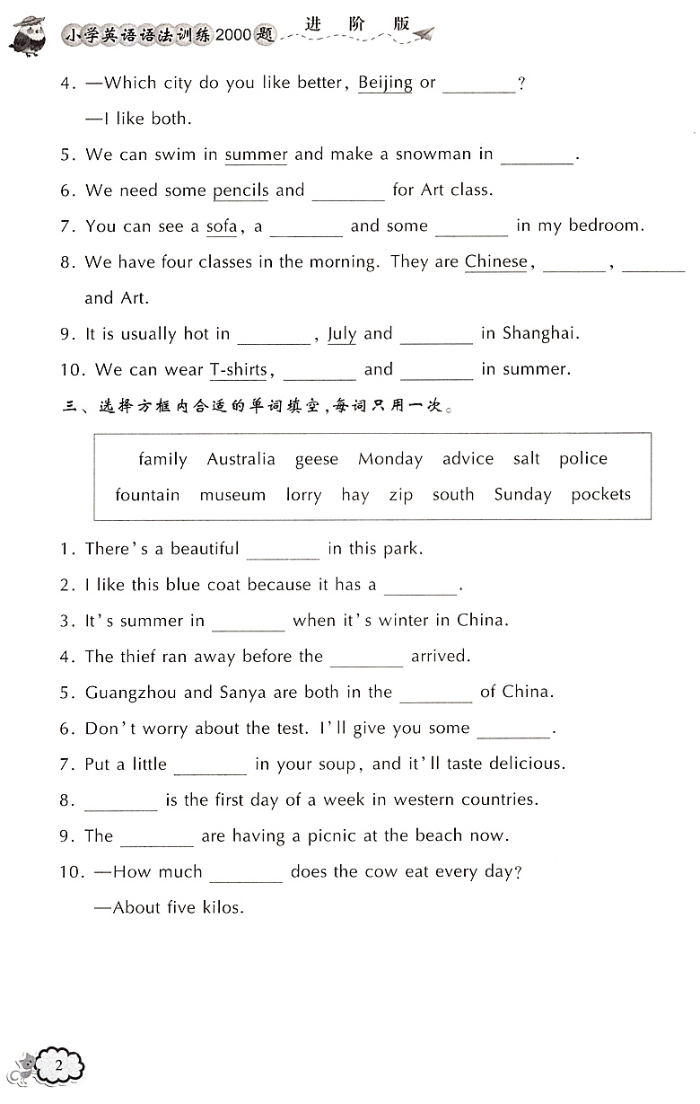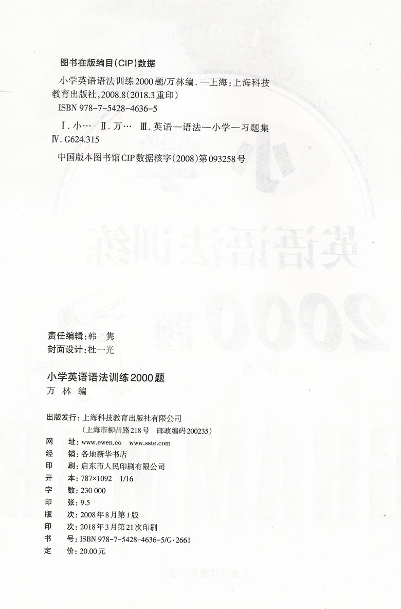 小学英语语法训练2000题 基础+提高版+进阶版全3册 三四五六年级小学英语知识大全小升初阅读理解小学英语训练 课外英语阅读书