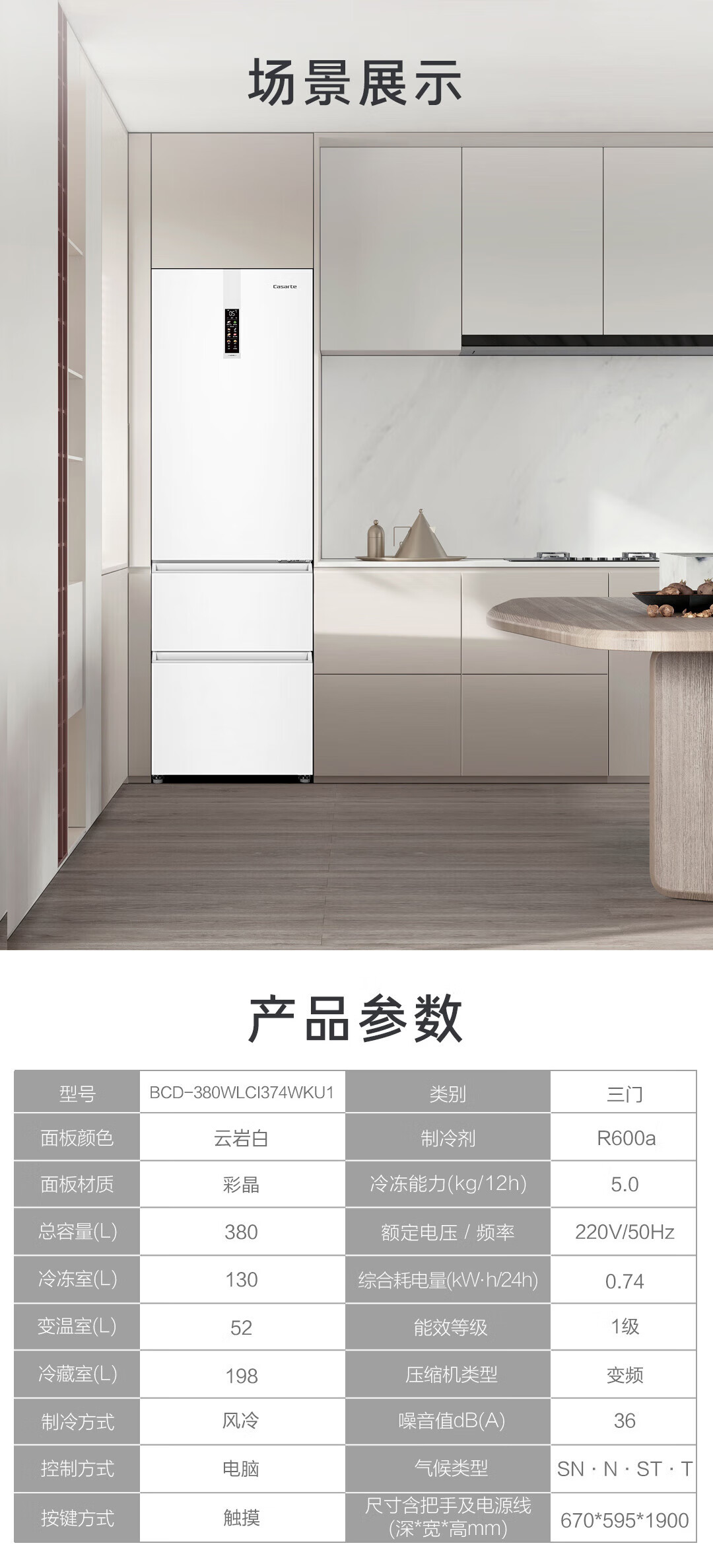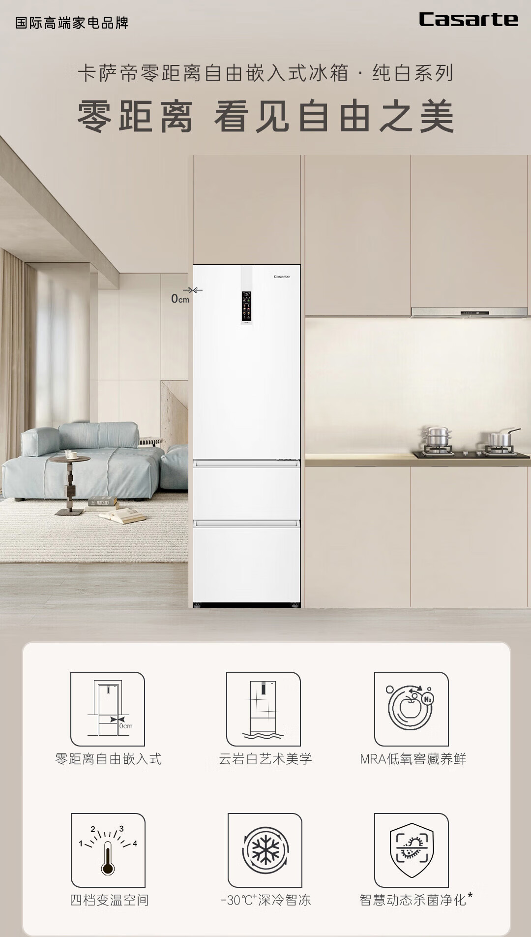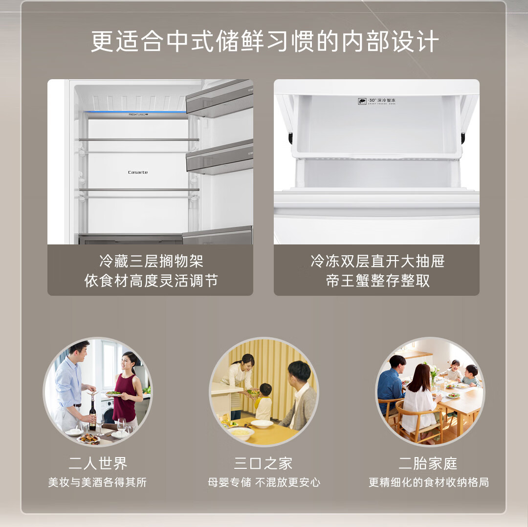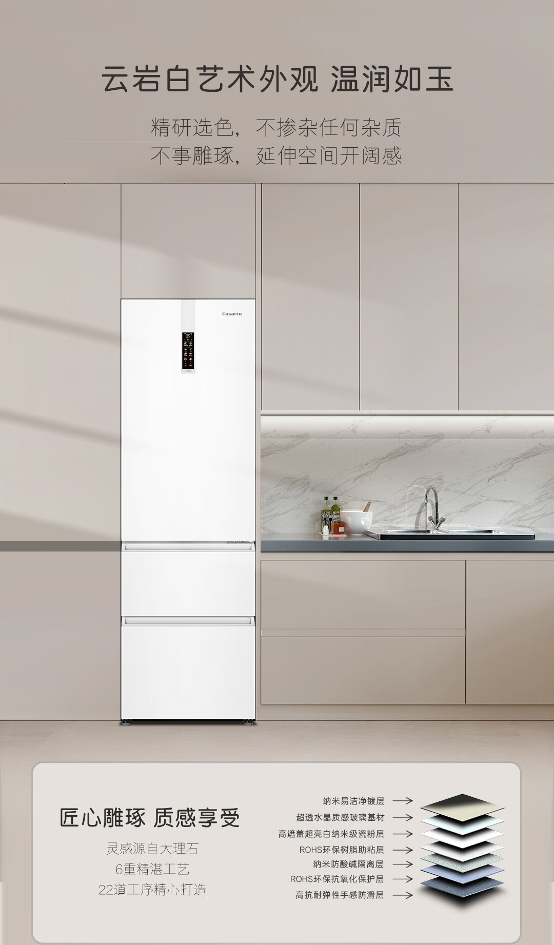 卡萨帝(Casarte)380升超薄零嵌入式多门三开门租房用小型3-4人白色一级能效家用无霜电冰箱BCD-380WLCI374WKU1