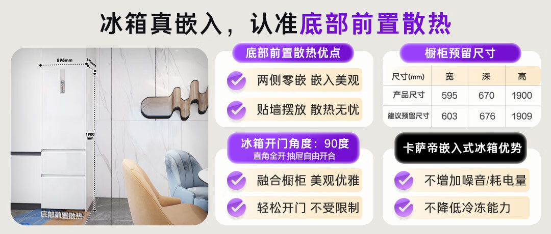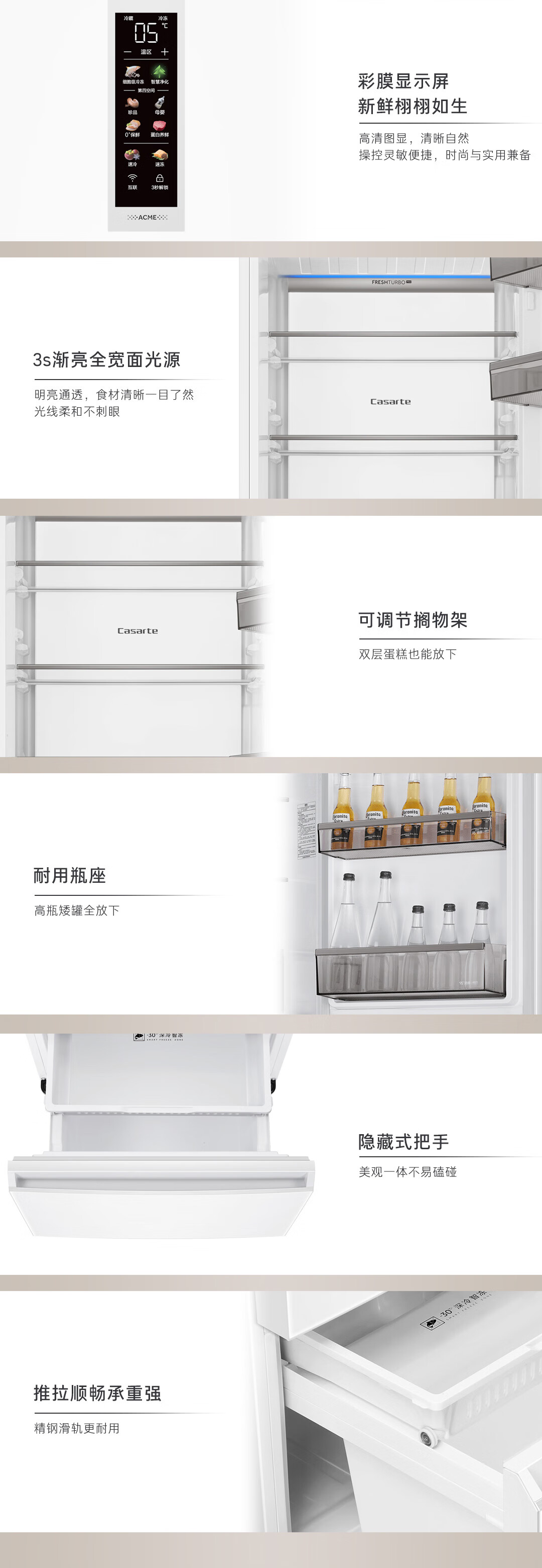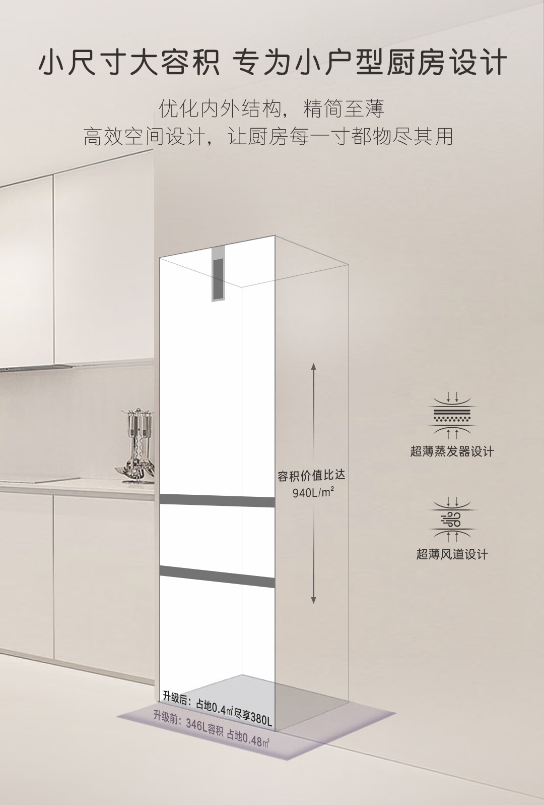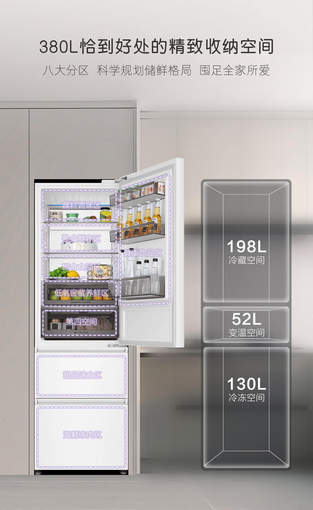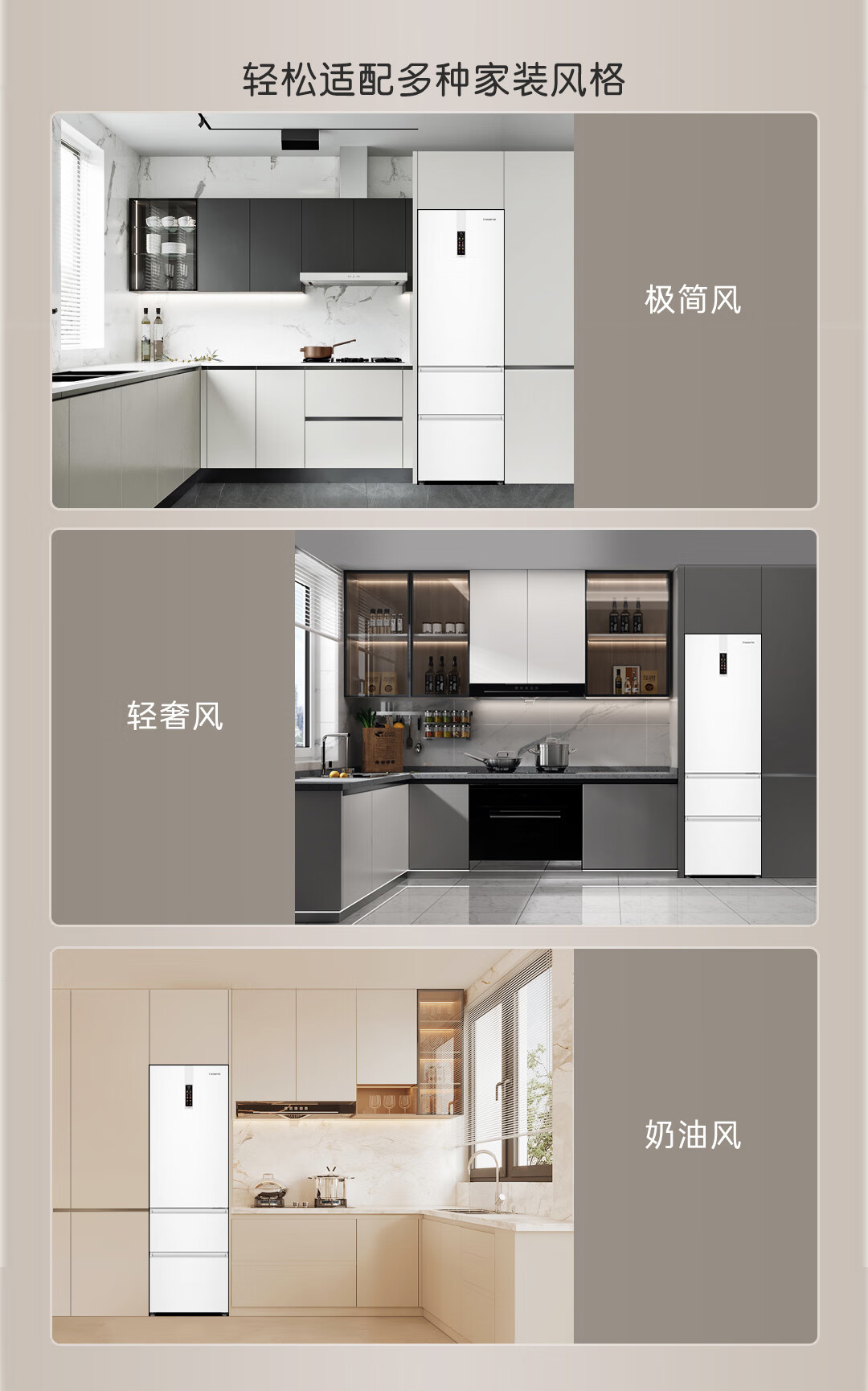 卡萨帝(Casarte)380升超薄零嵌入式多门三开门租房用小型3-4人白色一级能效家用无霜电冰箱BCD-380WLCI374WKU1