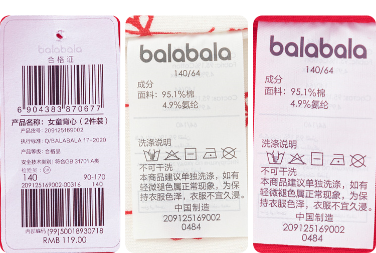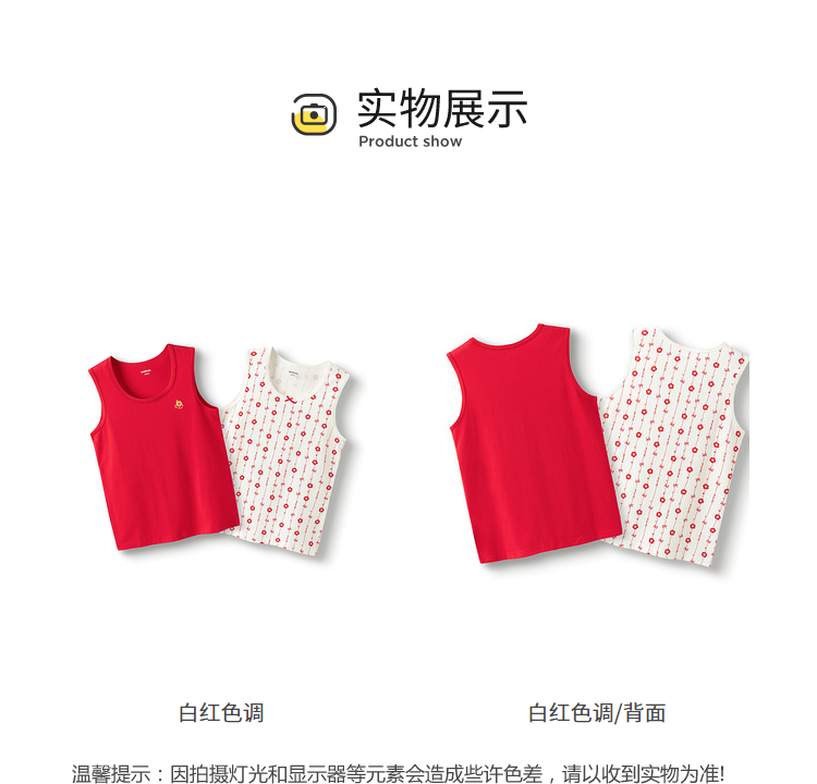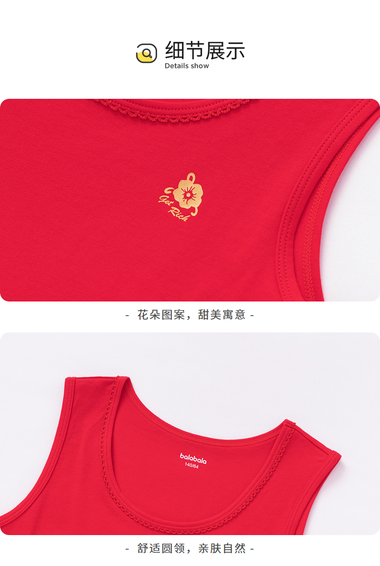 巴拉巴拉儿童背心蛇年新款女童吊带本命年红色新年季亲肤棉两件装