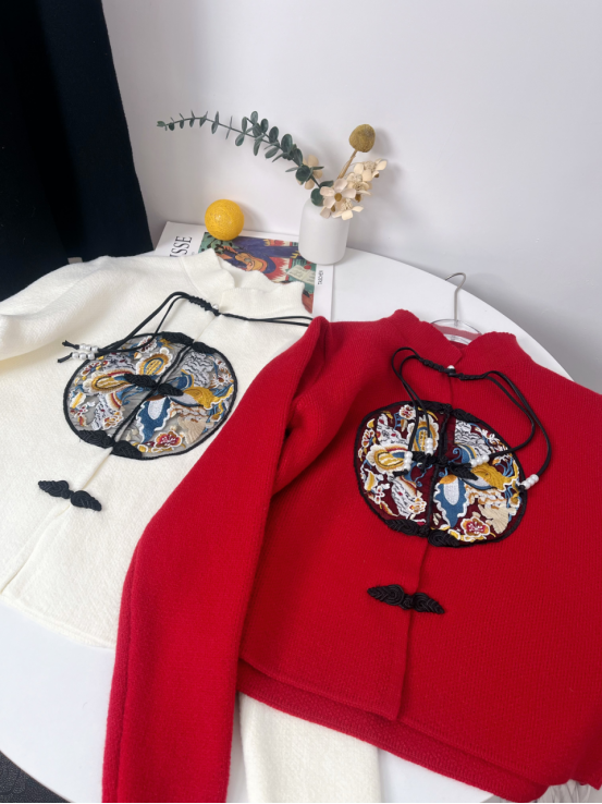 流苏盘扣,搭配珍珠设计,低调又奢华 手工琵琶扣,一眼复古 胸前圆形刺绣设计,栩栩如生 小宽松的版型,苹果型身材的福音,轻巧遮住身材上的缺点。 面料上采用抗起球北极绒,刚刚好的厚度,刚刚好的保暖效果,刚刚好的弹力。