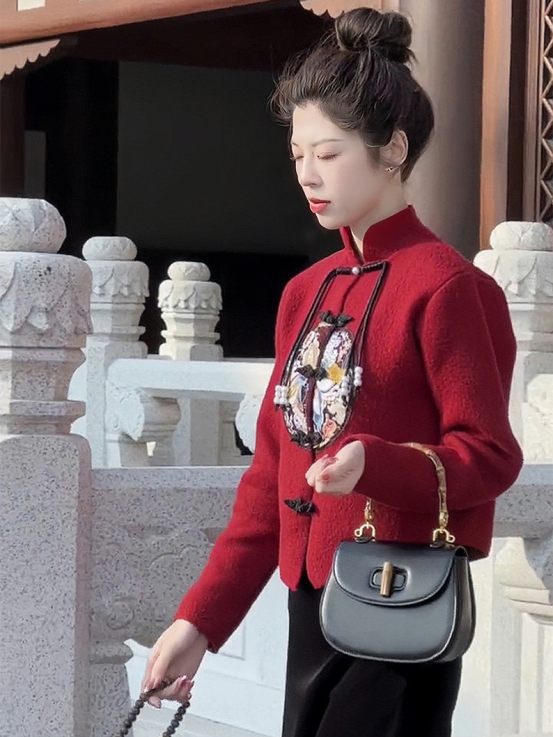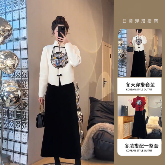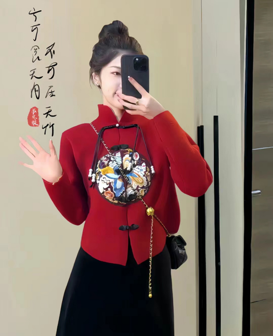 穿搭高级感 | 新中式有亿点好看,满屏温柔~ 国潮正流行,给了时尚行业注入了一丝新意。我们也从传统中式旗袍中汲取灵感,做出了这样一件富有国潮元素的针织衫套装, 小立领设计,简约大气,配上盘扣充满东方韵味,让整件一眼古典。精致的国风刺绣图案,栩栩如生十分重工,搭配纯黑色针织裙,妥妥国风大小姐!!