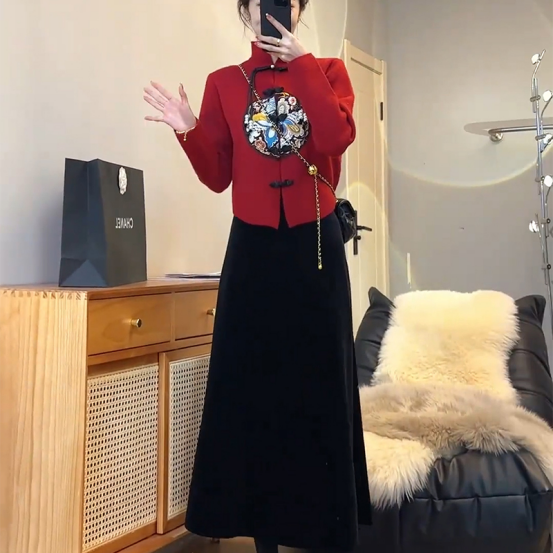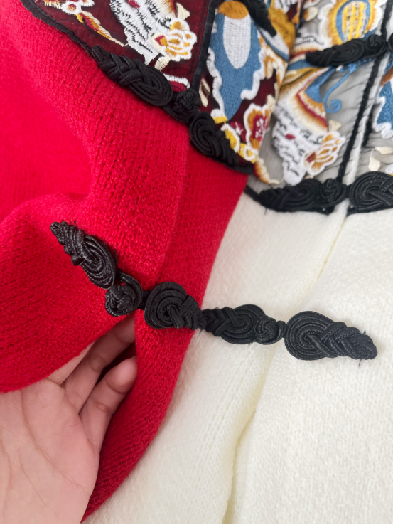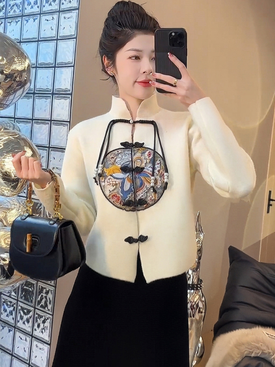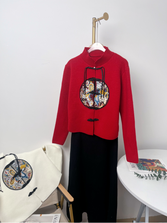 🔥【香黛格蕾国风盘扣刺绣毛衣套装】 ✅小立领设计,简约大气,⭕配上盘扣充满东方韵味,让整件一眼古典♻️ ✅精致的国风刺绣图案,✌️