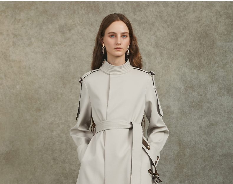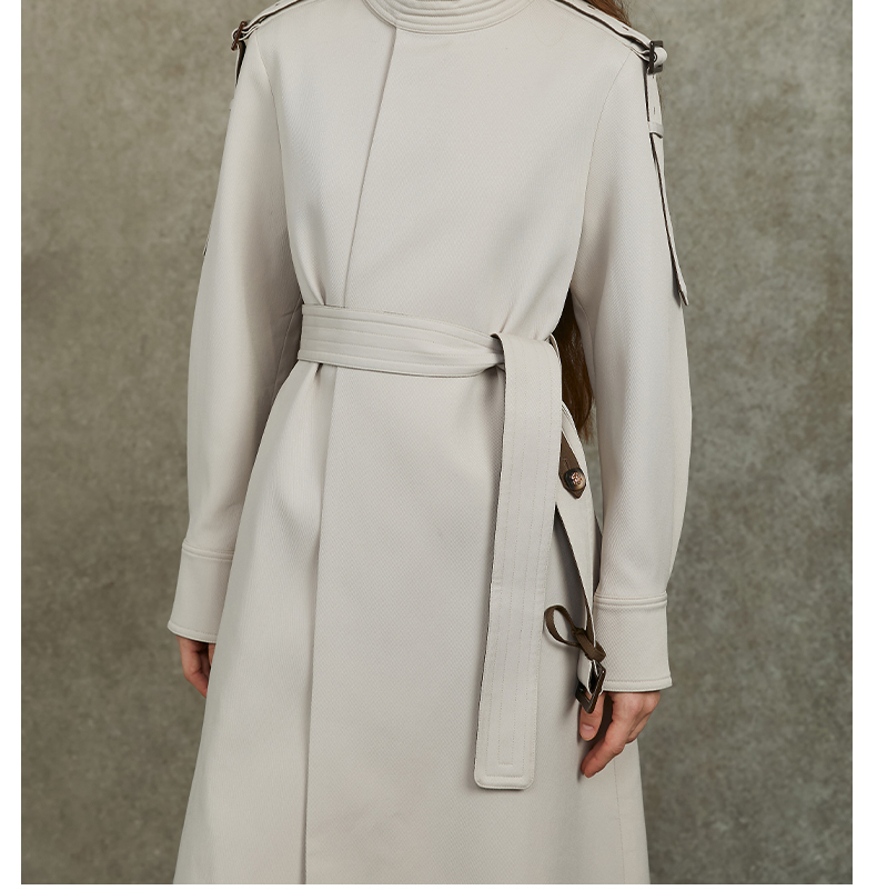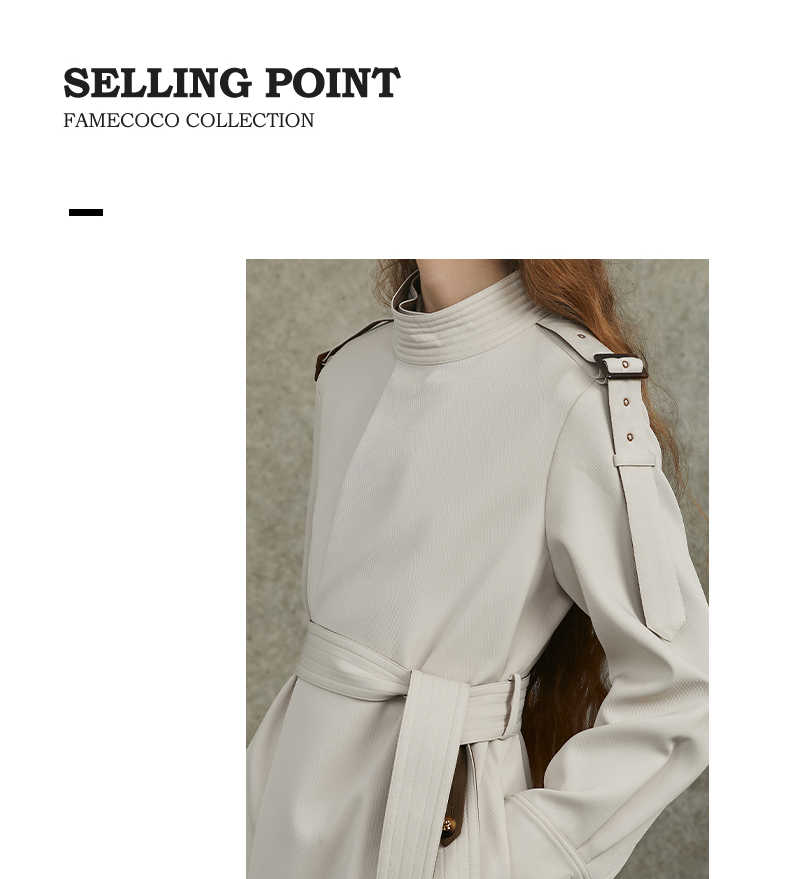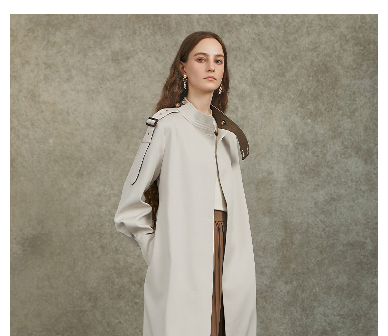 Famecoco设计师款职场通勤立领长款风衣长期主义高级感FAC6AT001