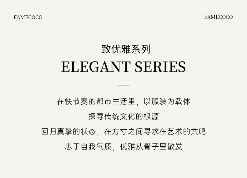 - Famecoco作为中国本土设计师品牌之一的她,创建于美丽的时尚花都广州,自2013年创立以来,一直致力于打造优雅、知性、文艺的穿着理念。