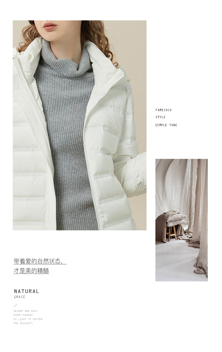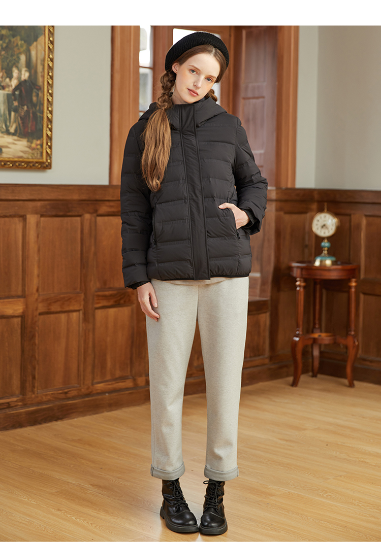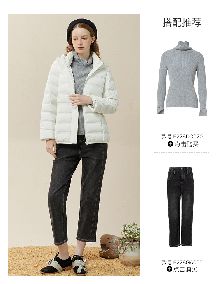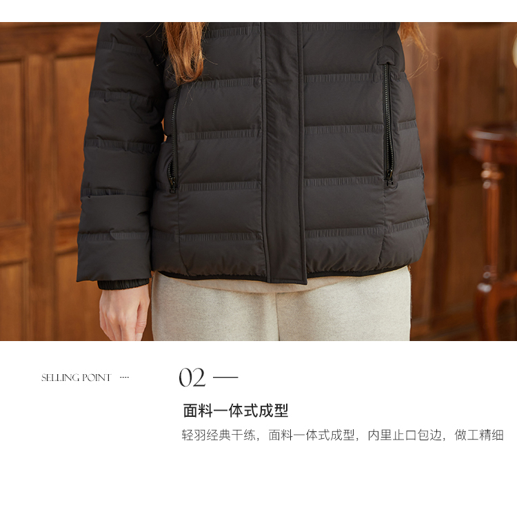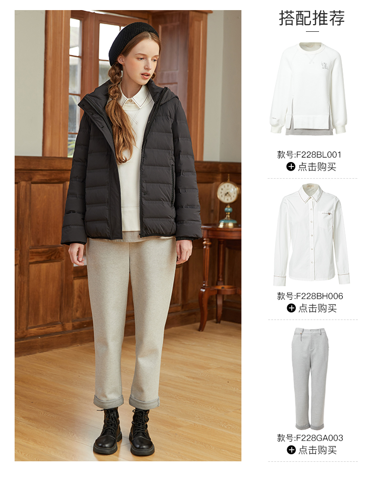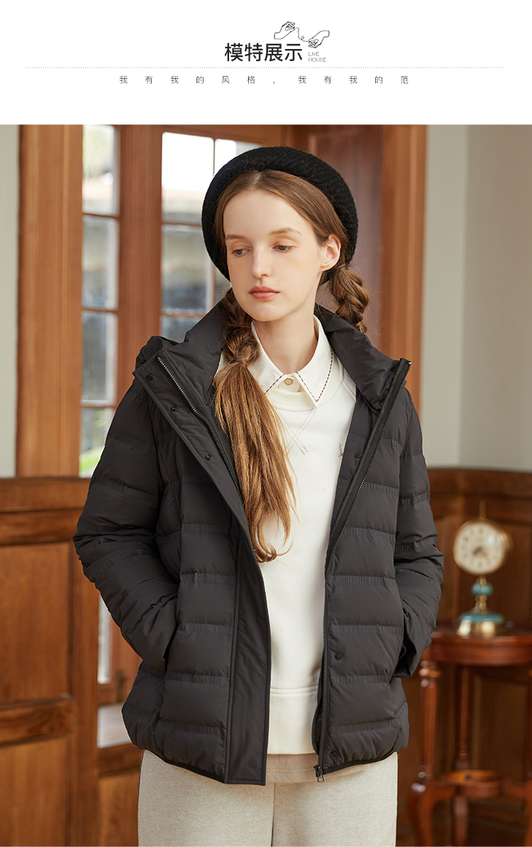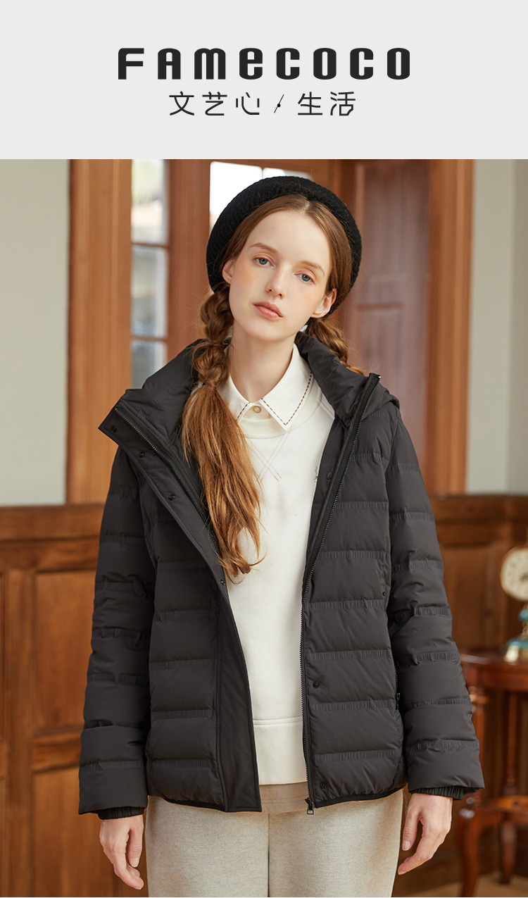 Famecoco范可儿短款轻薄羽绒服帽衫减龄时尚黑色显瘦外套F228AJ006
