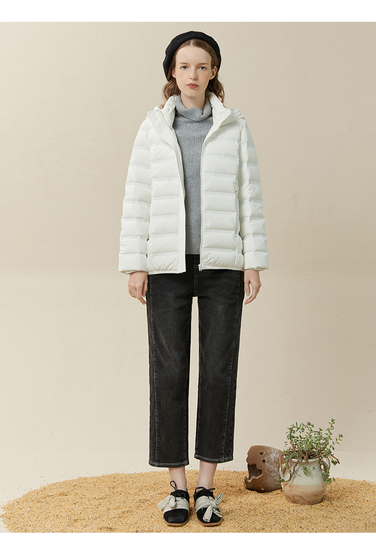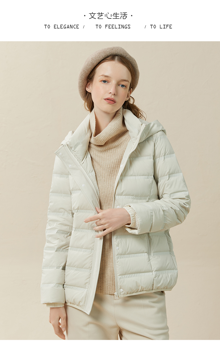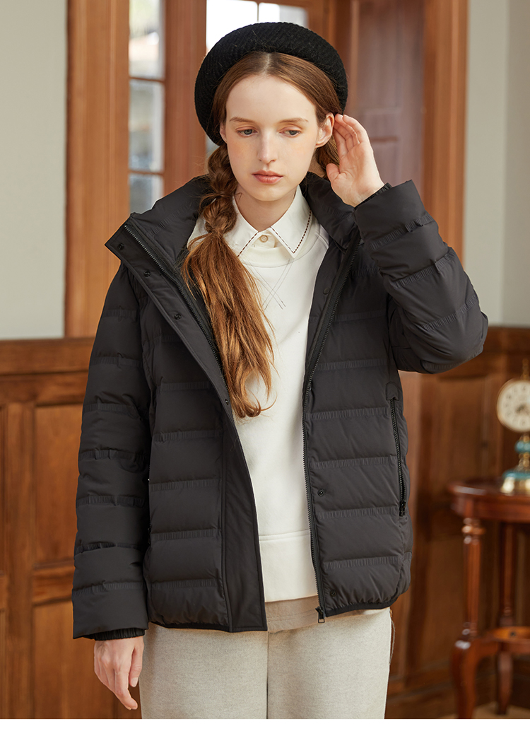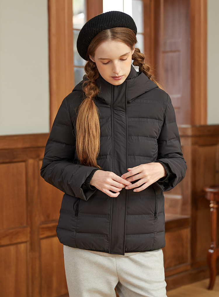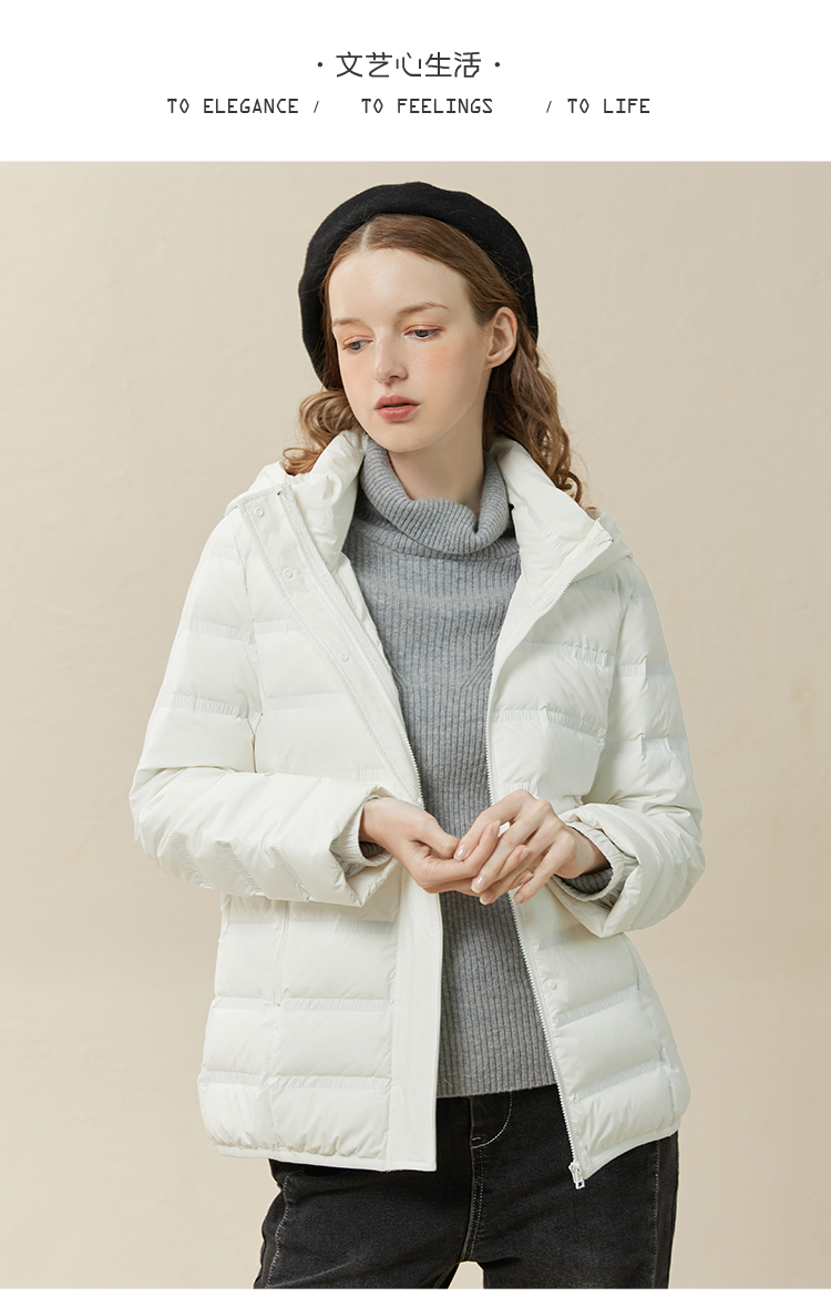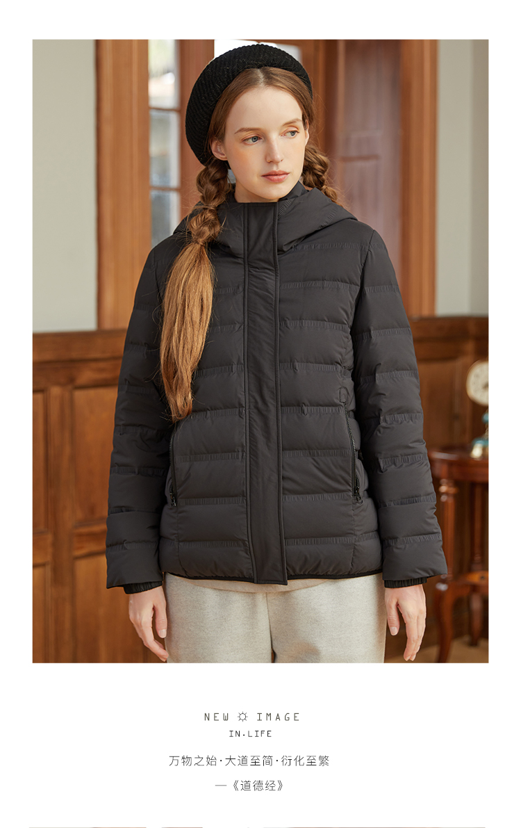 Famecoco范可儿短款轻薄羽绒服帽衫减龄时尚黑色显瘦外套F228AJ006