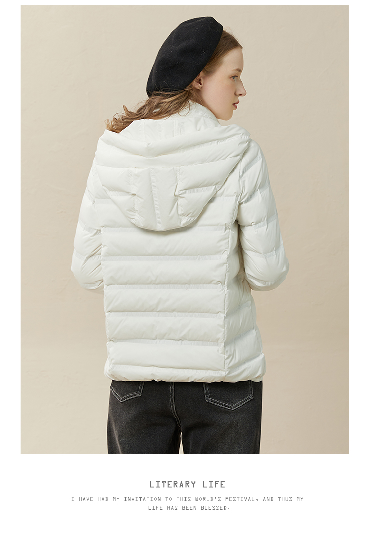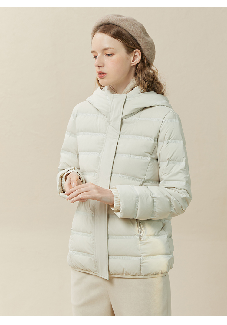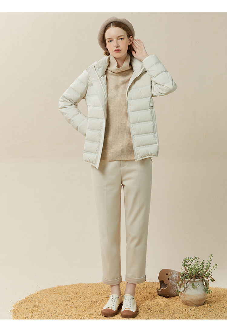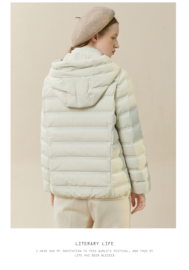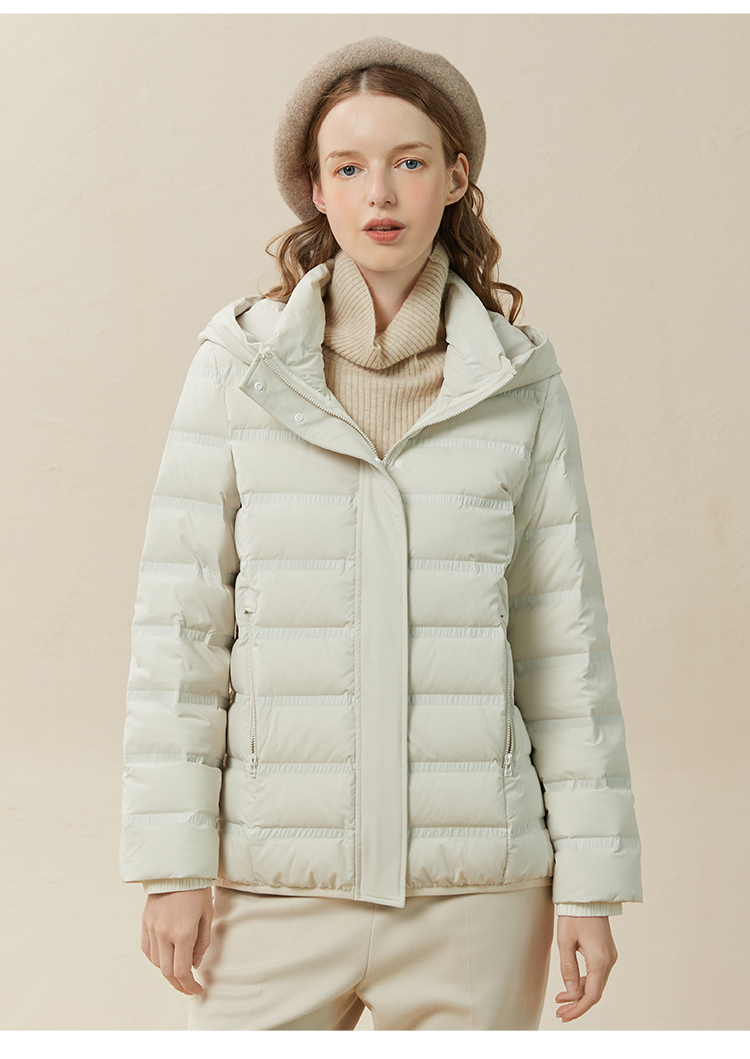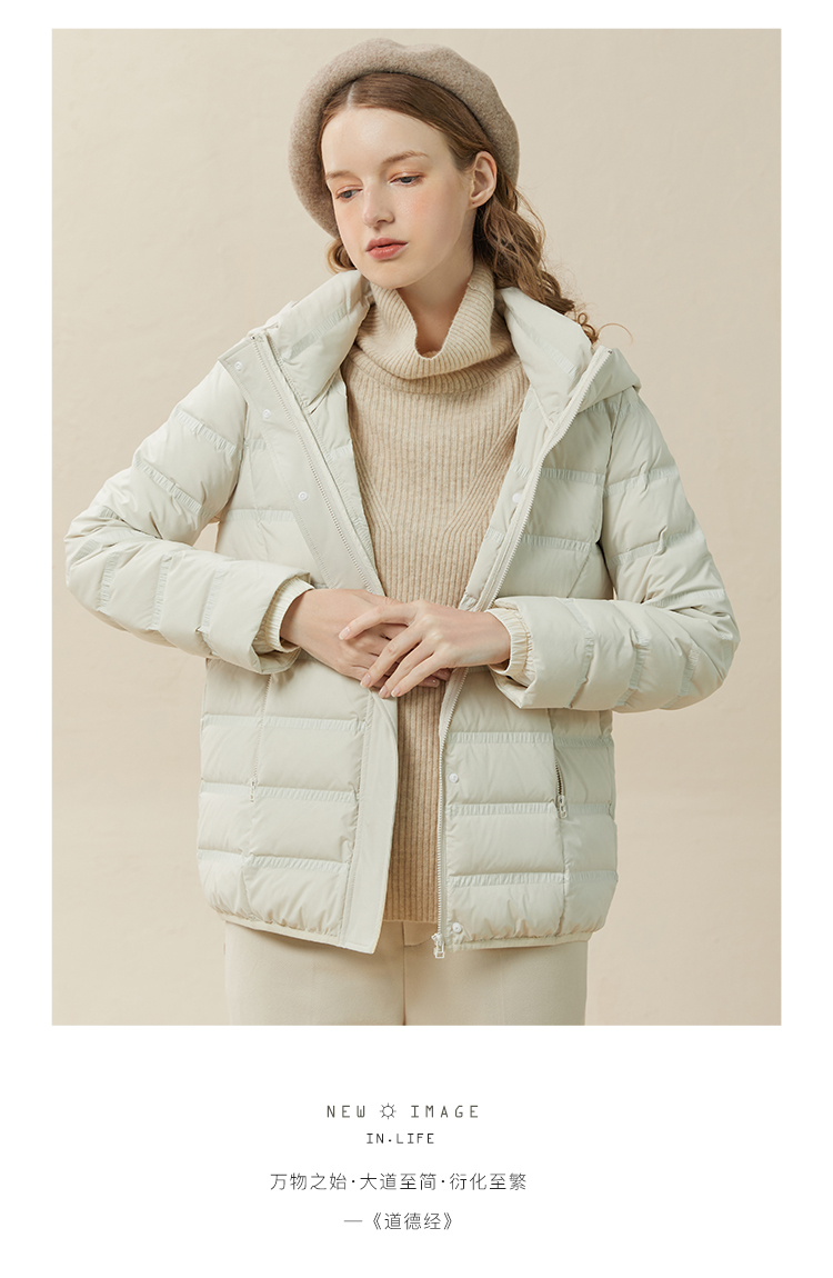 Famecoco范可儿短款轻薄羽绒服帽衫减龄时尚黑色显瘦外套F228AJ006