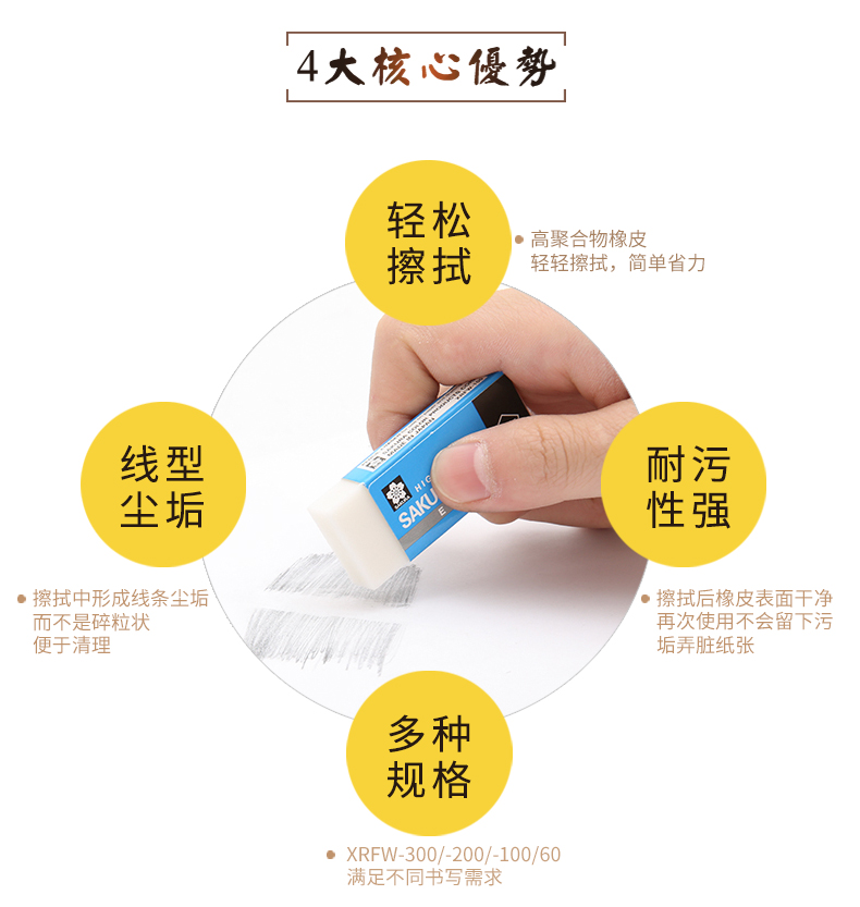 日本樱花橡皮擦学生擦得干净无碎屑高光美术橡皮不留痕橡皮擦XRFW-100