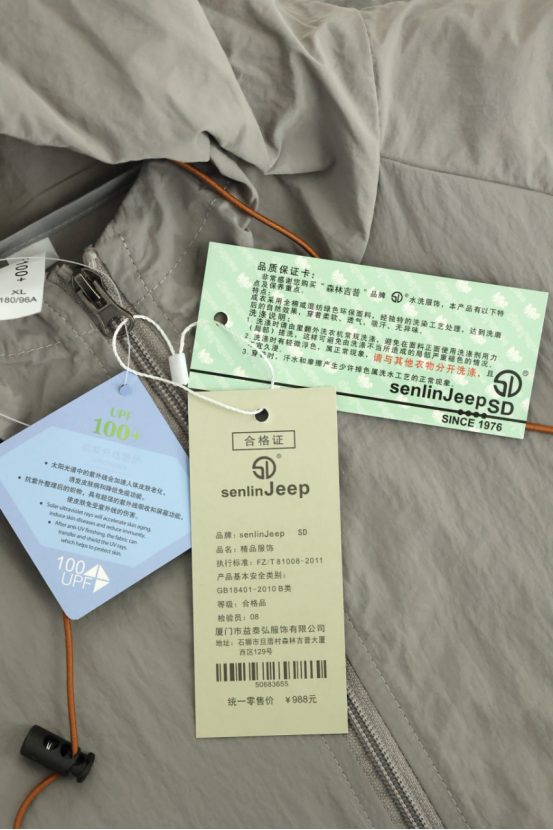 关键UPF100+仅仅只是工厂标的指数而已。 这件衣服的机构测试结果UPF高达2000 各种测试项目也统统合格,超级优秀!