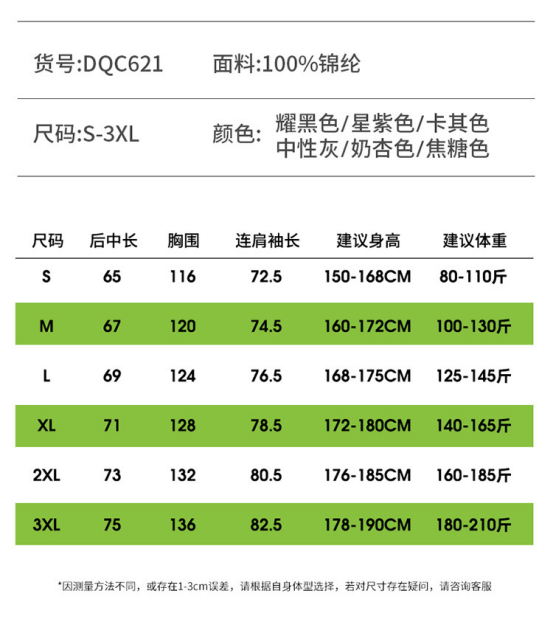 🔺🔺 六色可选择!男女生情侣款!放心入手! ✅上衣颜色:杏色、灰色、卡其、焦糖、紫色、黑色 尺码:S-3XL 面料成分:100%锦纶