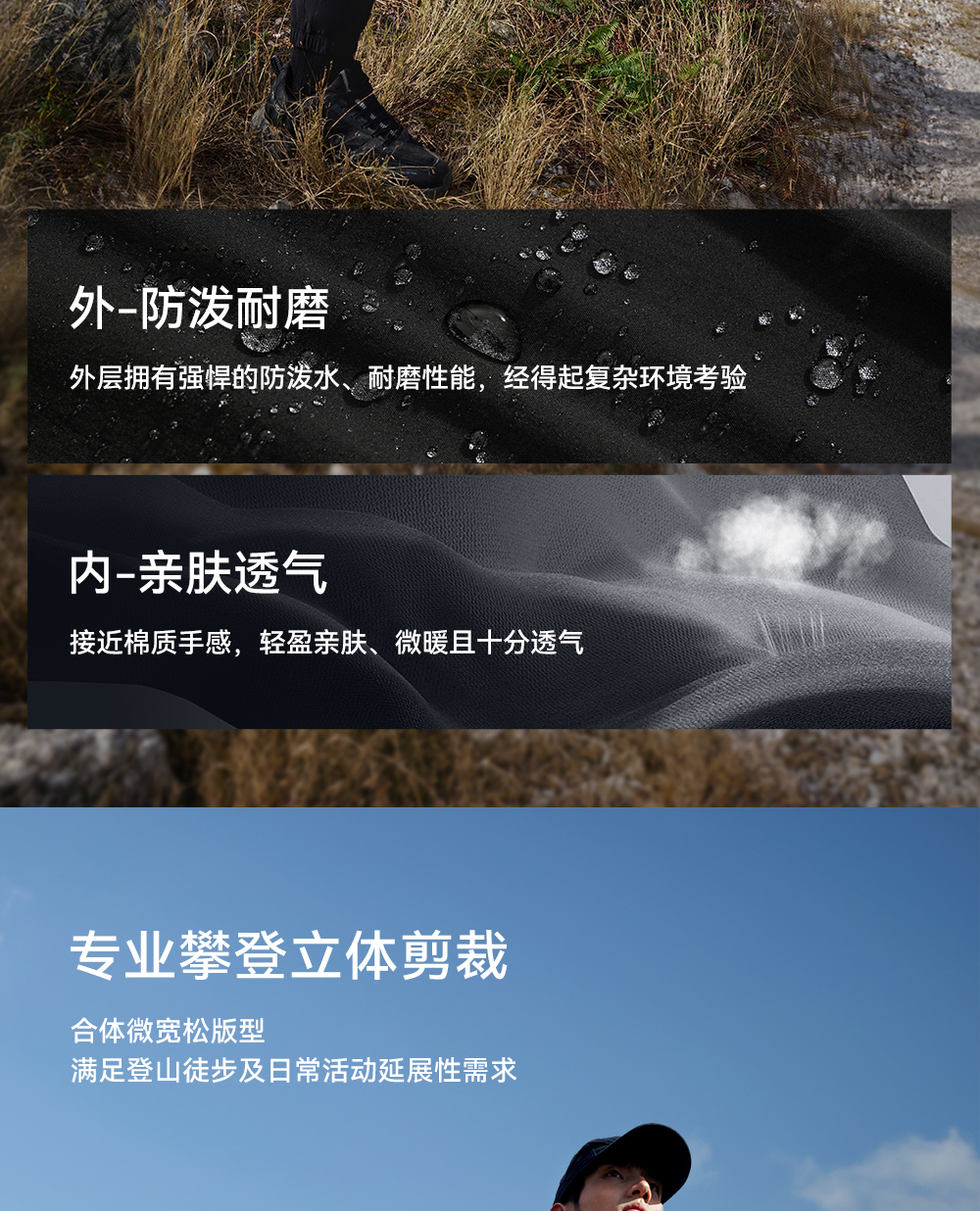 【P系列】伯希和户外软壳裤男CORDURA防泼水耐磨登山运动长裤女