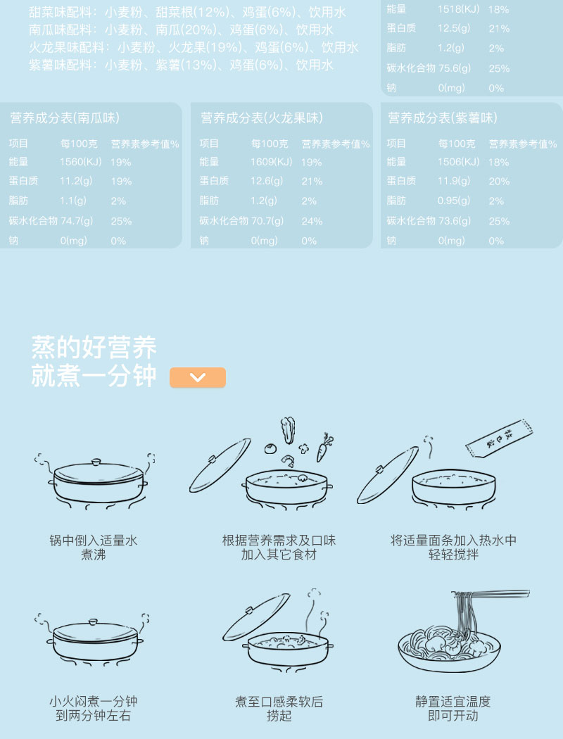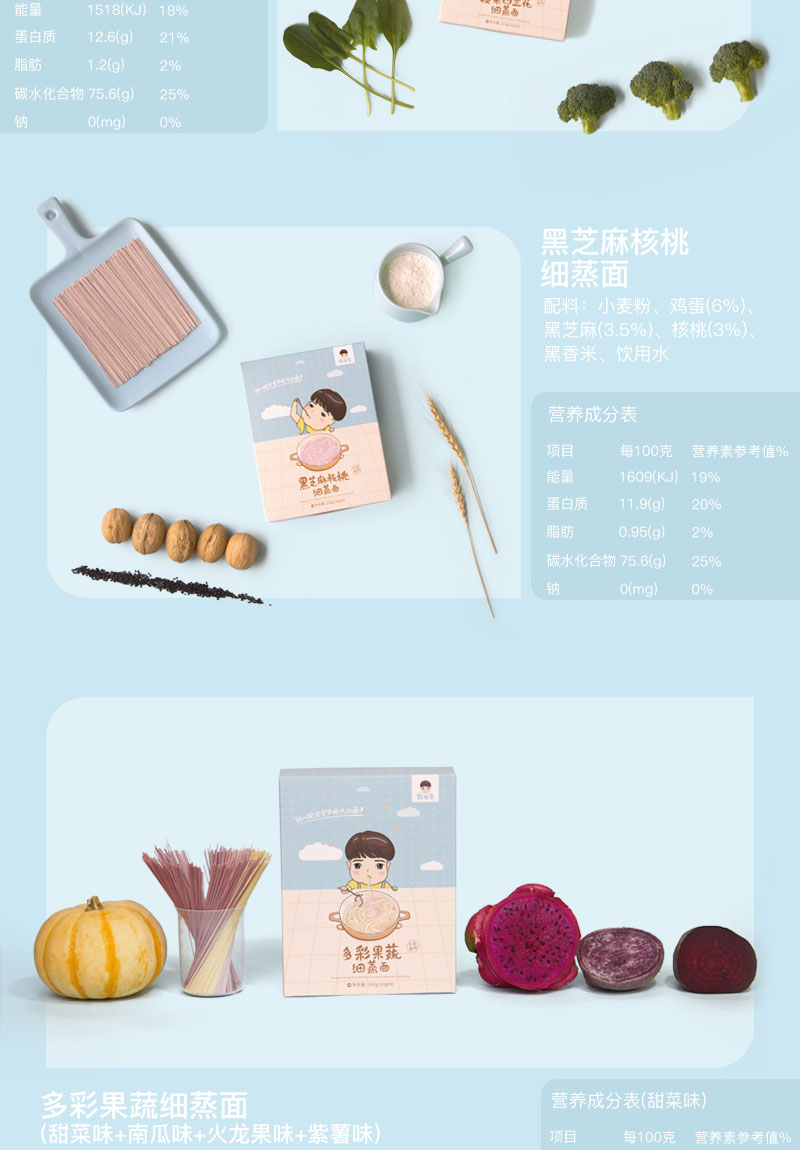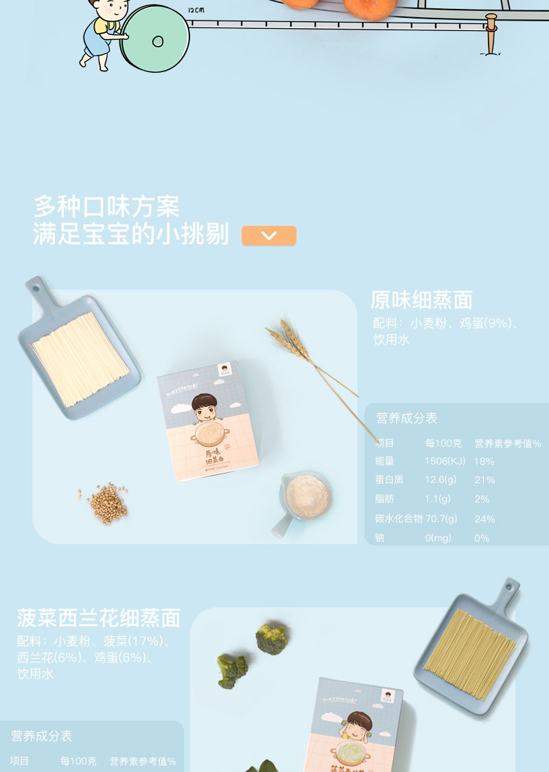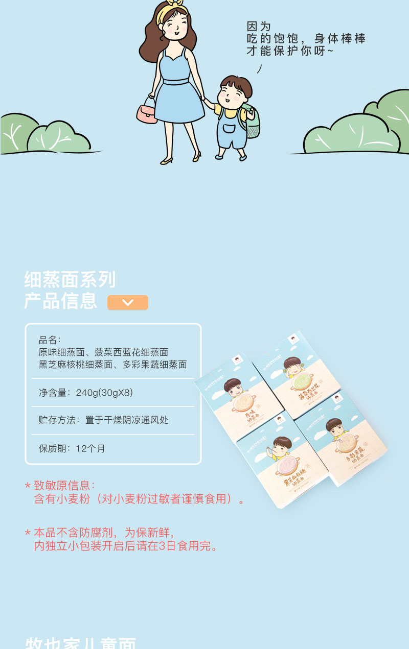 辅食、牧也家 细蒸面30g*8份共240g 宝宝儿童面原味不添加食盐麦芯粉辅食