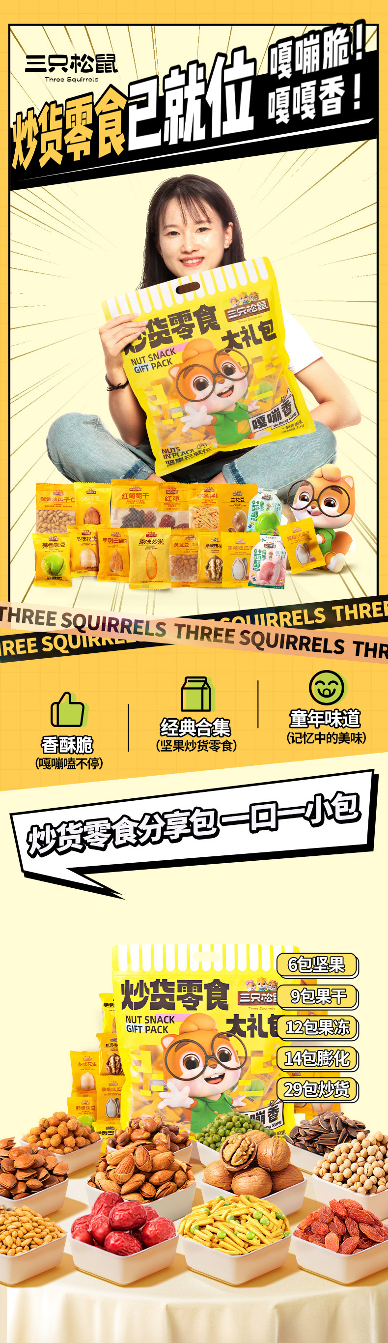 三只松鼠 炒货零食大礼包 650g/袋 70小袋装