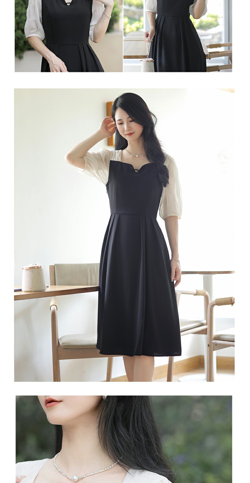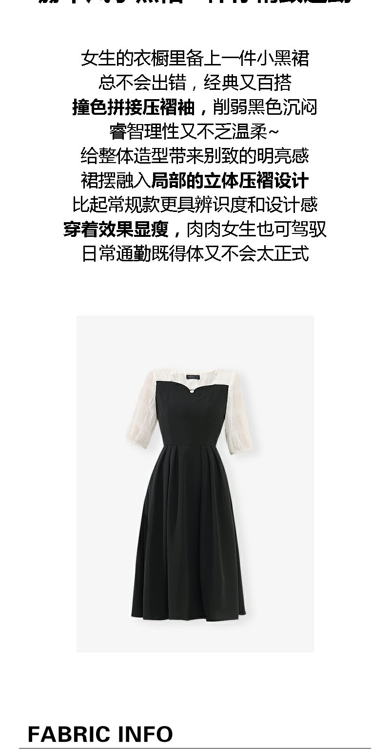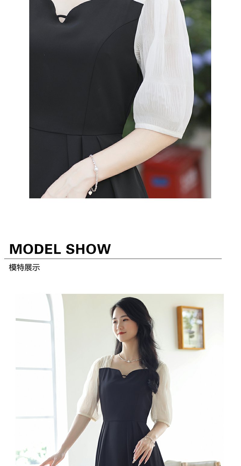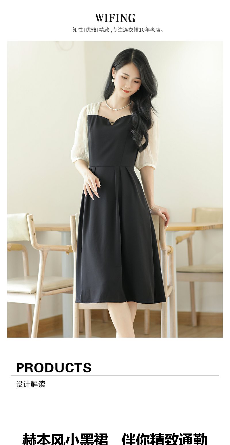 未风黑色假两件连衣裙女夏2025年夏季新款时尚泡泡袖收腰显瘦裙子
