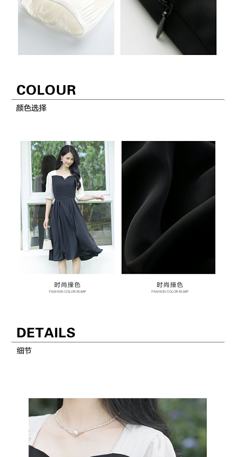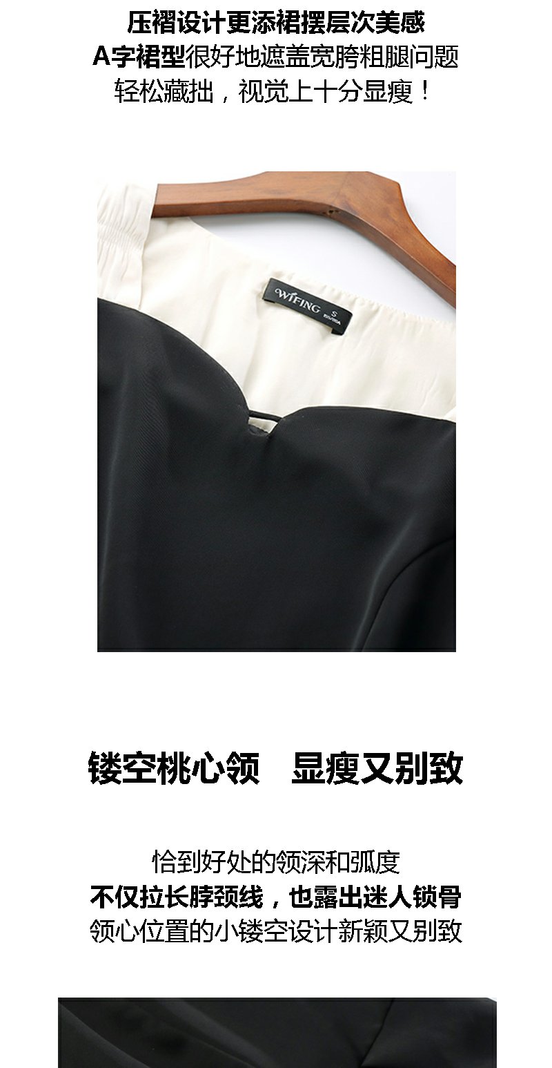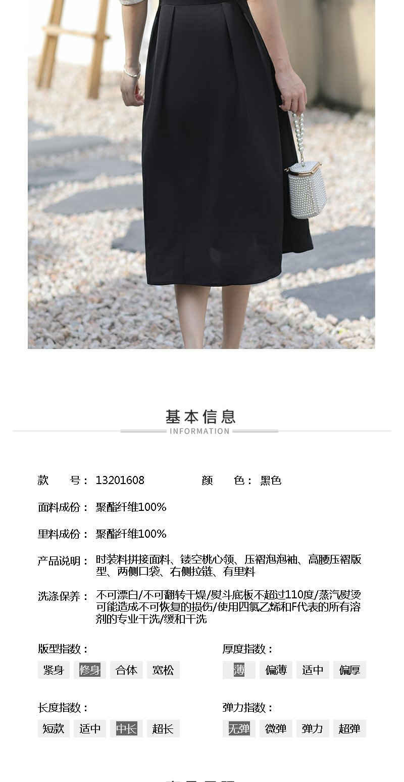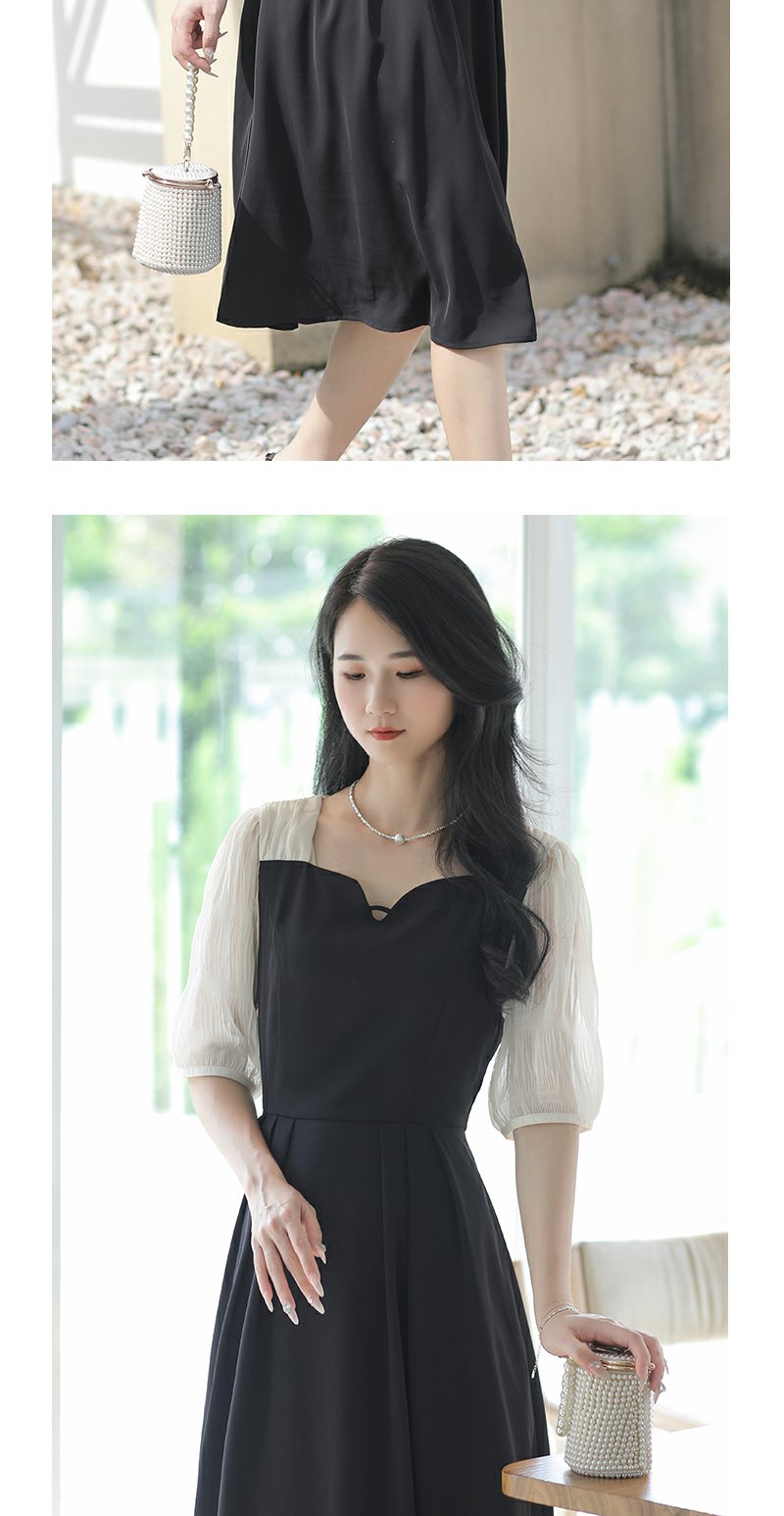 未风黑色假两件连衣裙女夏2025年夏季新款时尚泡泡袖收腰显瘦裙子