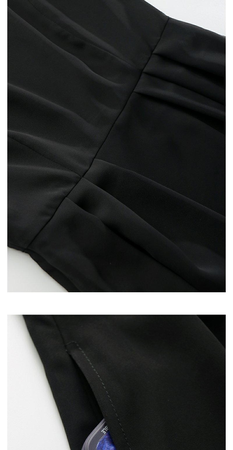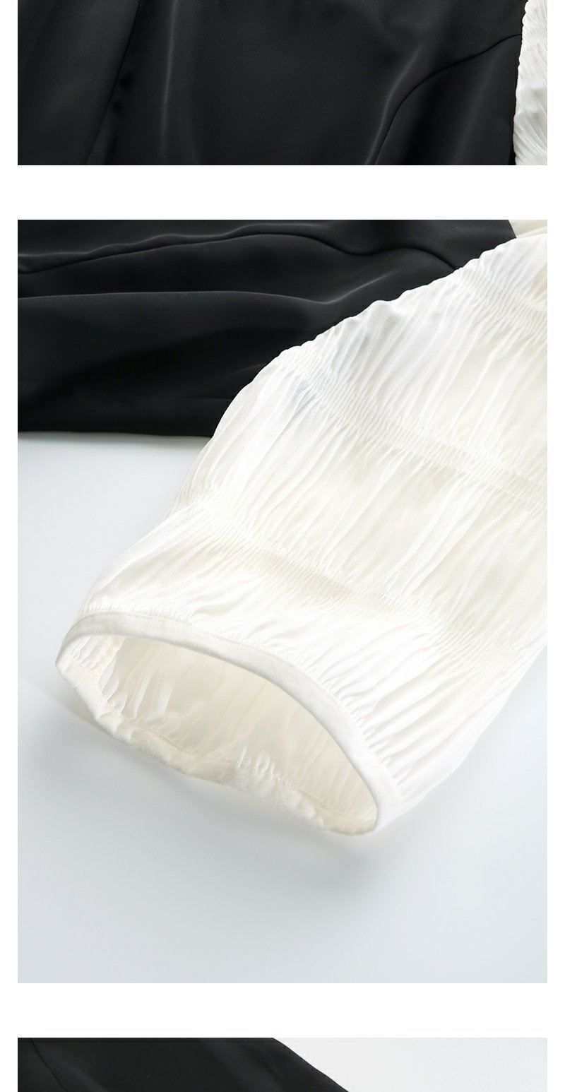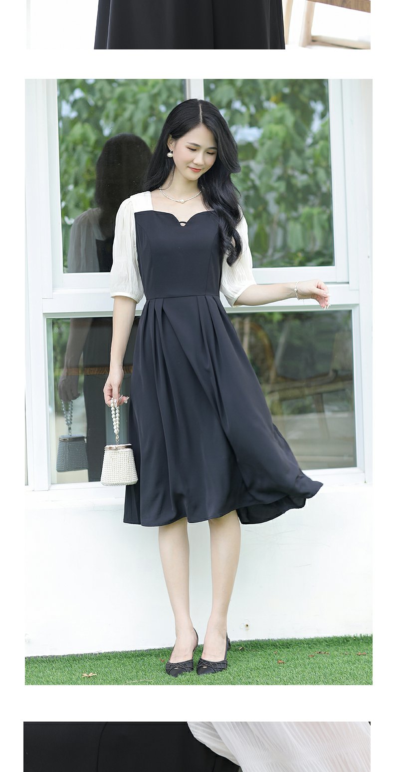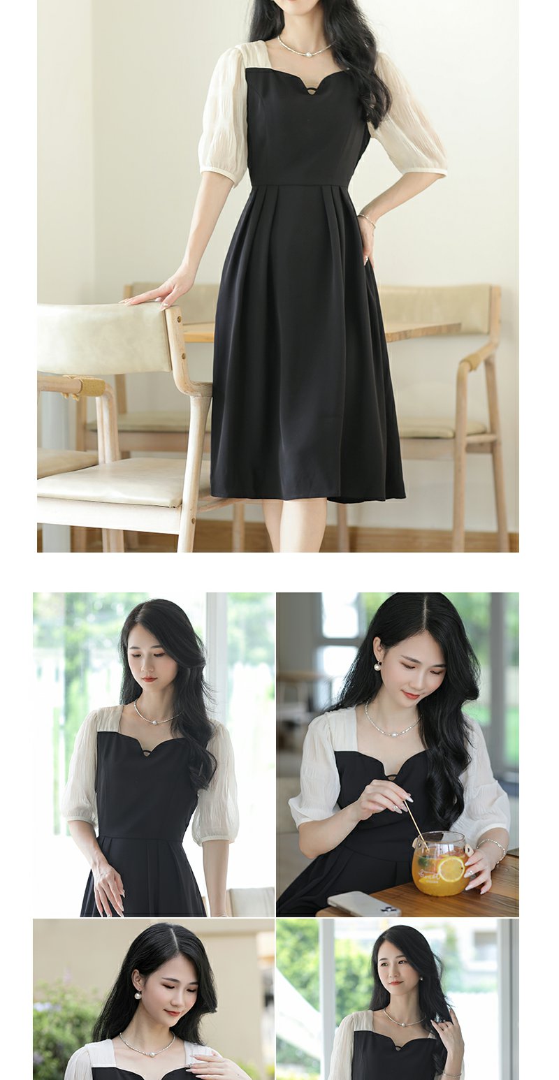 未风黑色假两件连衣裙女夏2025年夏季新款时尚泡泡袖收腰显瘦裙子