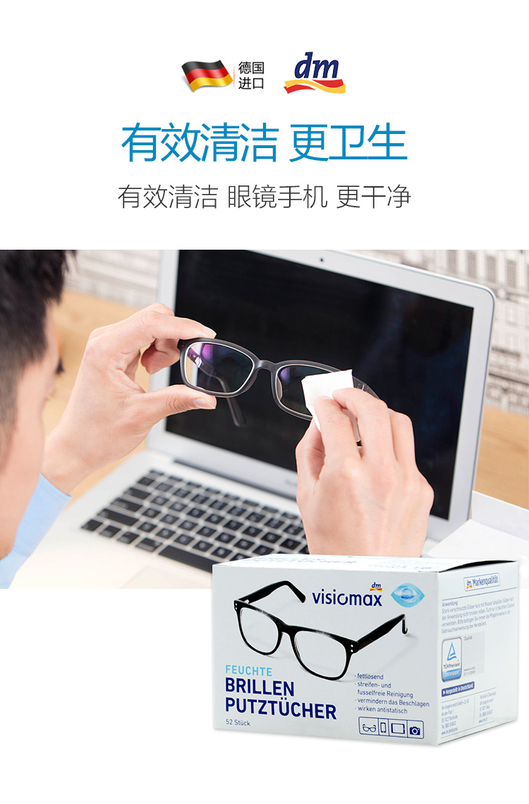 【中欧班列精选3盒】德国镜片清洁湿巾 原装进口DM镜片清洁防模糊速干清洁湿巾52片/盒