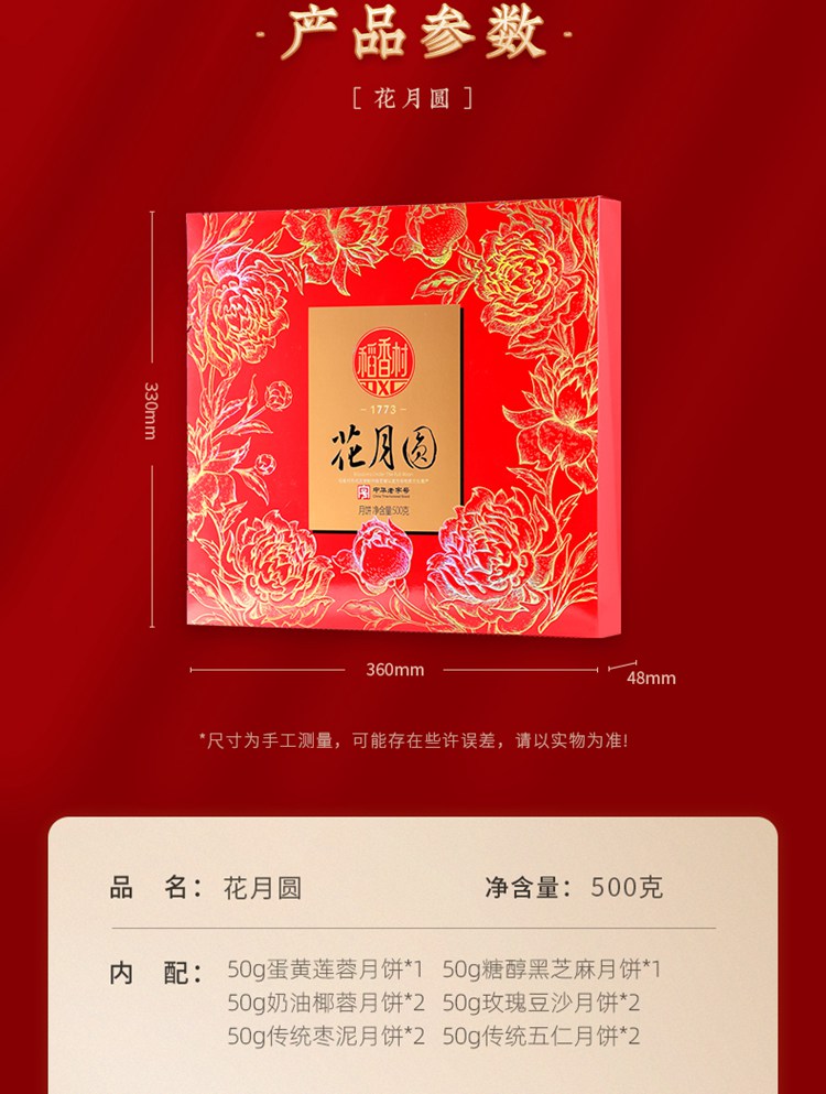稻香村花月圆月饼礼盒500g【LY】(ZB)