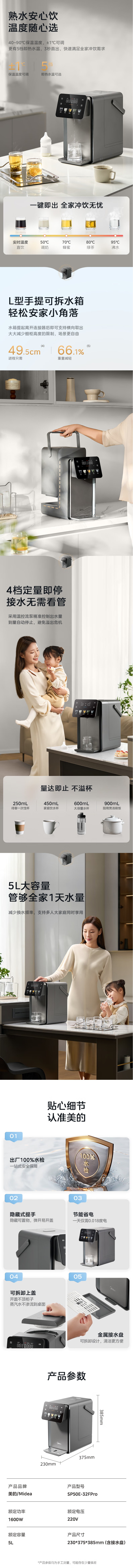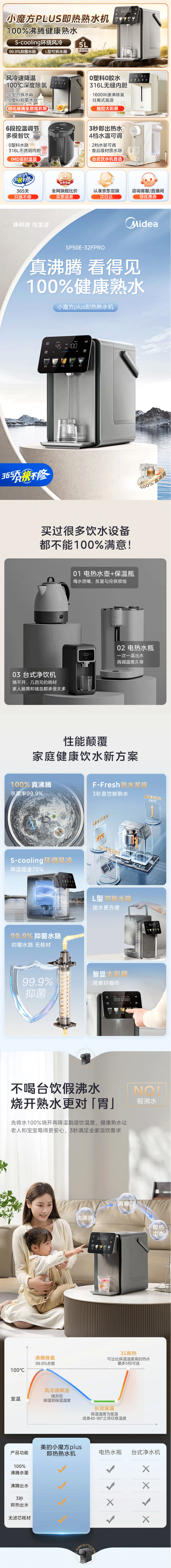 美的(Midea)小魔方(510706)plus即热式饮水机 电热水瓶 电水瓶 保温恒温一体电热水壶 真沸腾除氯烧水壶pro 5L MK-SP50E-32FPro