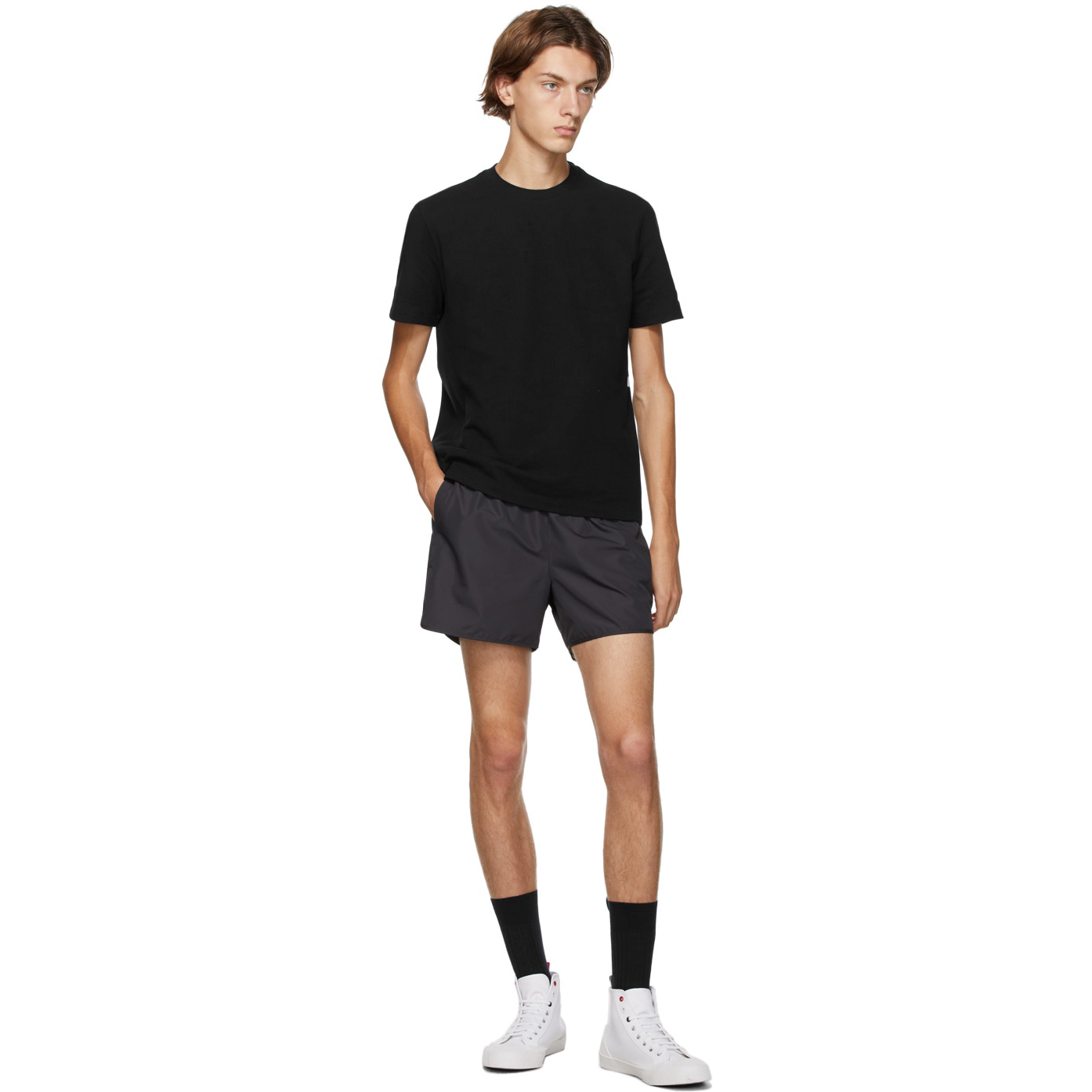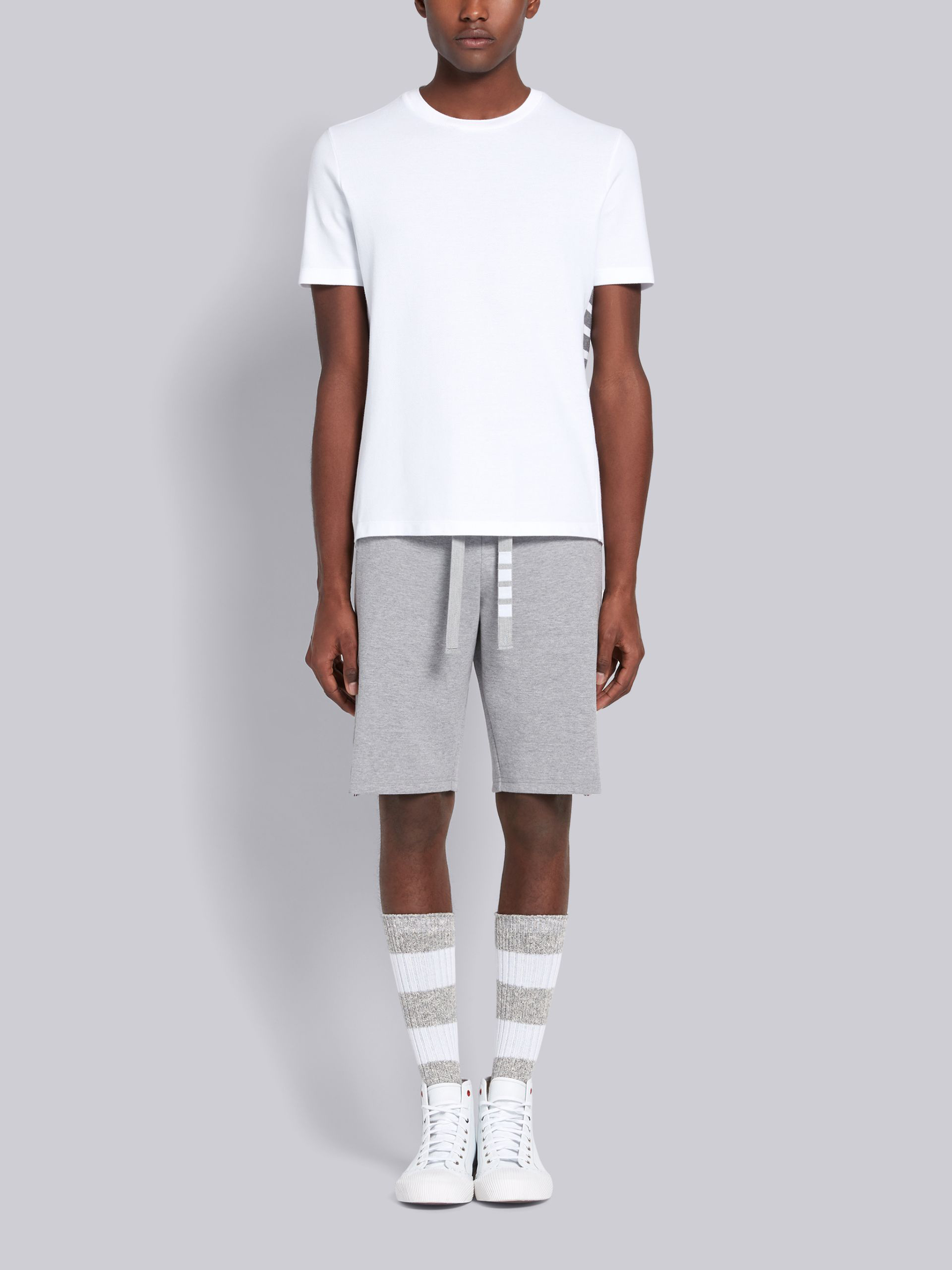高克重珠地纯棉面料,手感厚实舒适透气。两侧罗纹拼接,左侧标志性四条纹。质感有型!适合夏天休闲百搭!