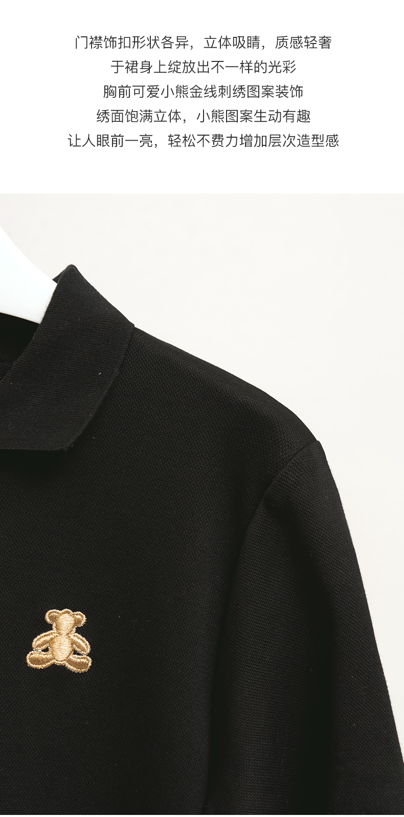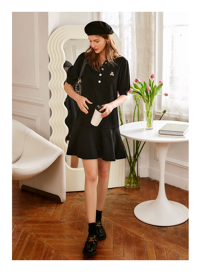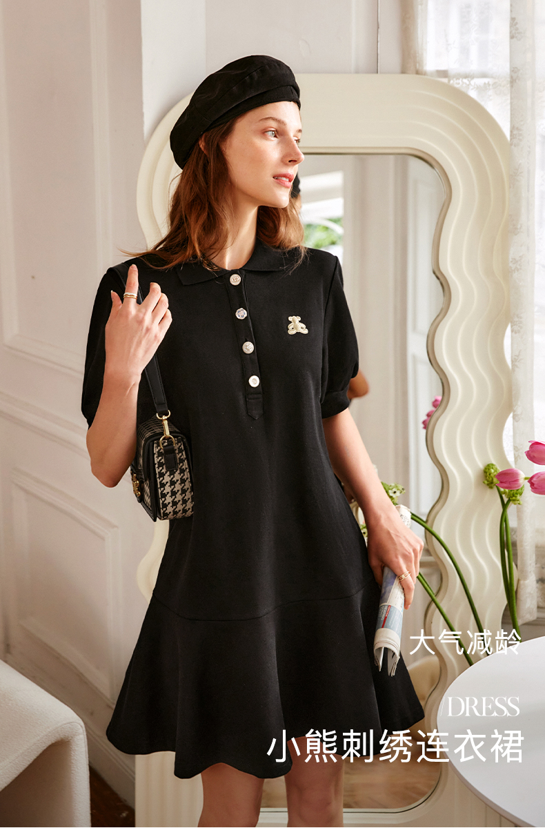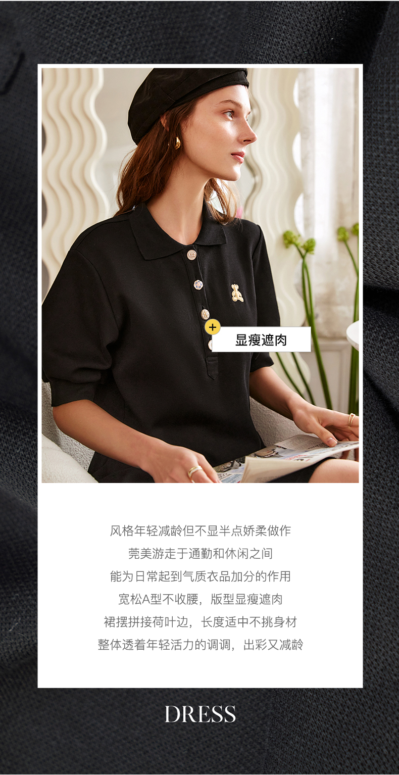 欧芮儿黑色连衣裙女夏季2022新款收腰显瘦时尚气质polo领小个子裙