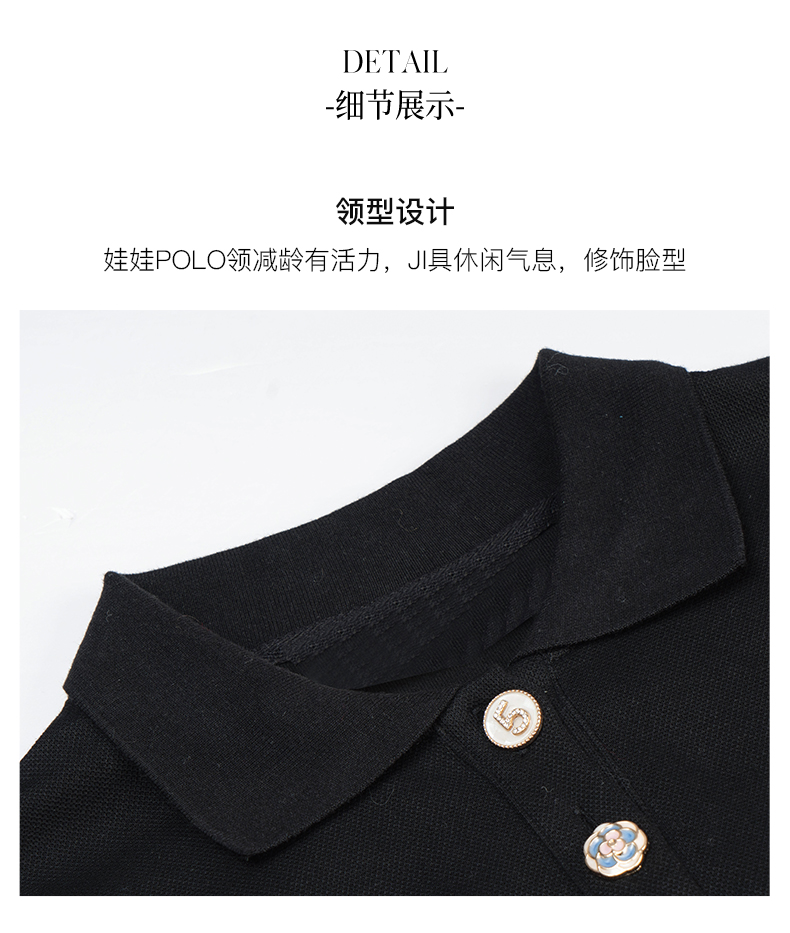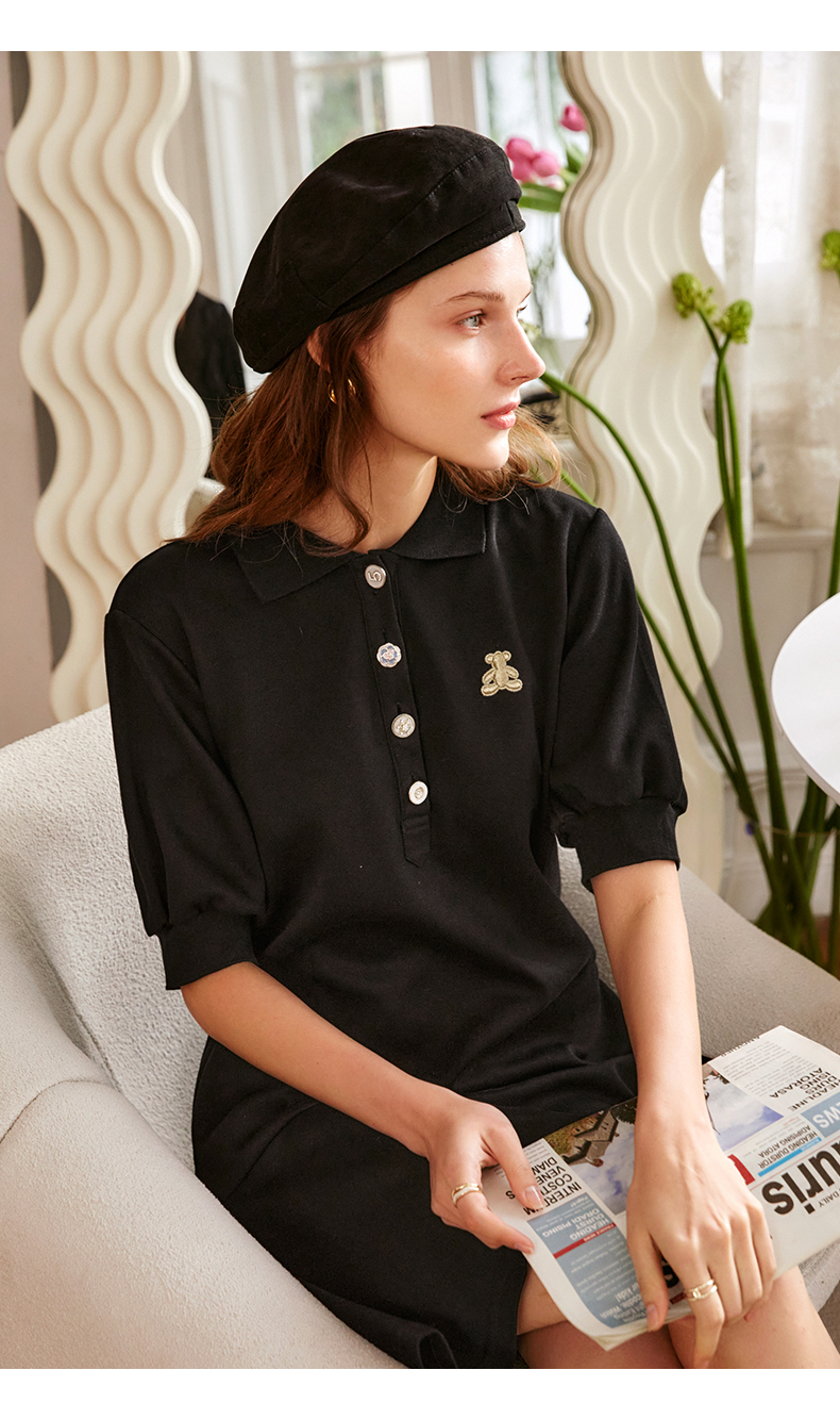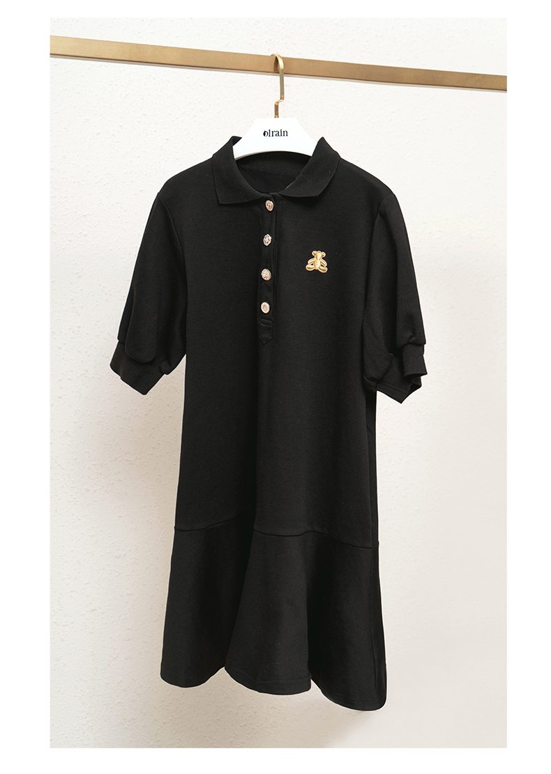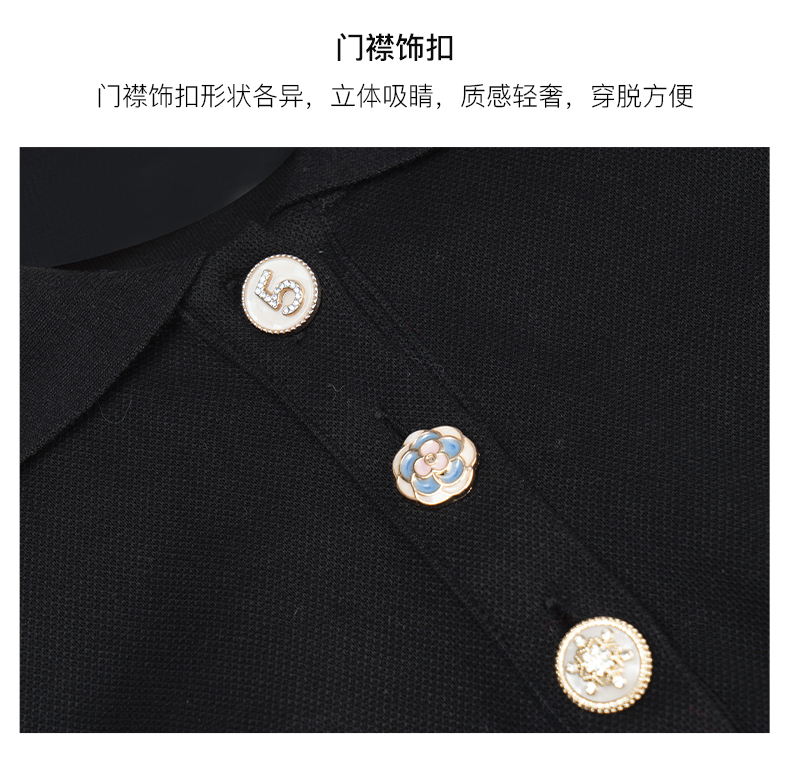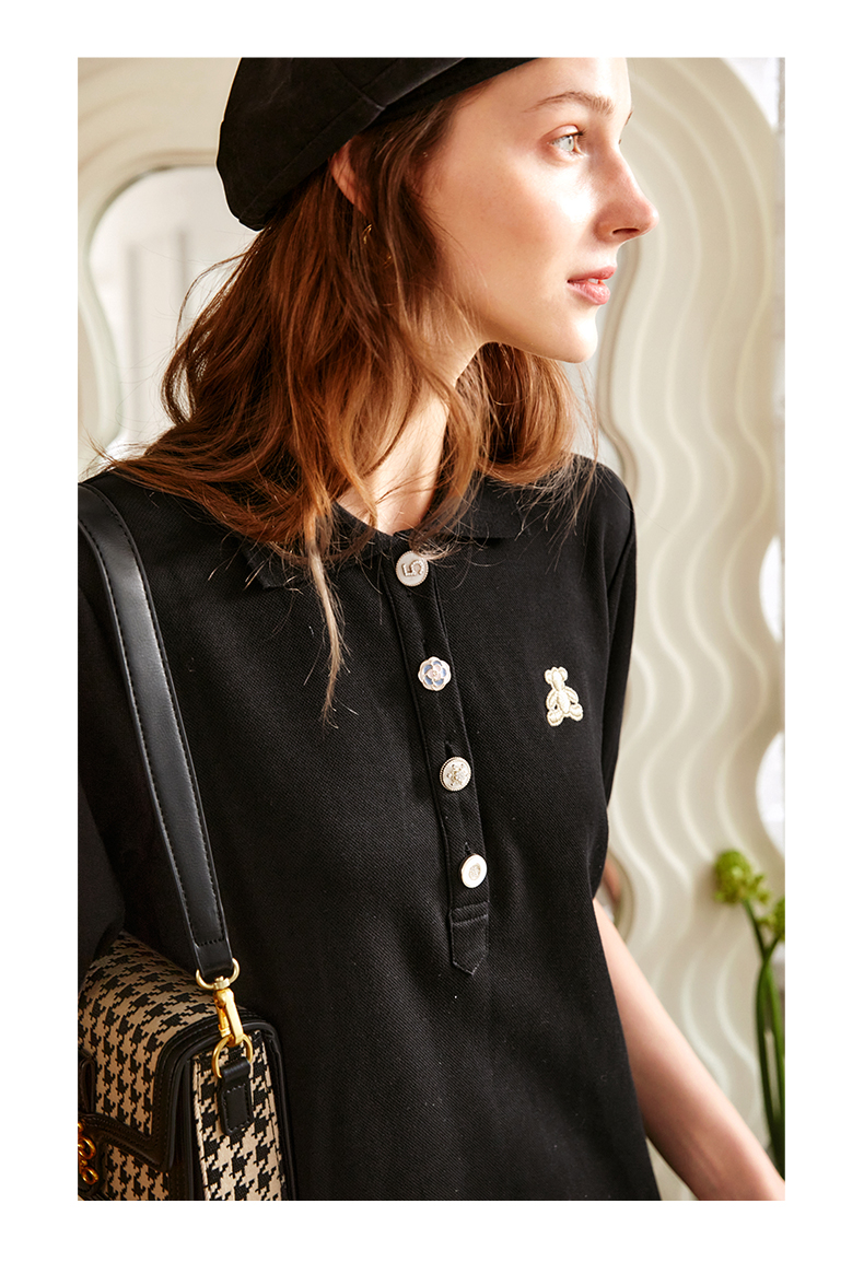 欧芮儿黑色连衣裙女夏季2022新款收腰显瘦时尚气质polo领小个子裙