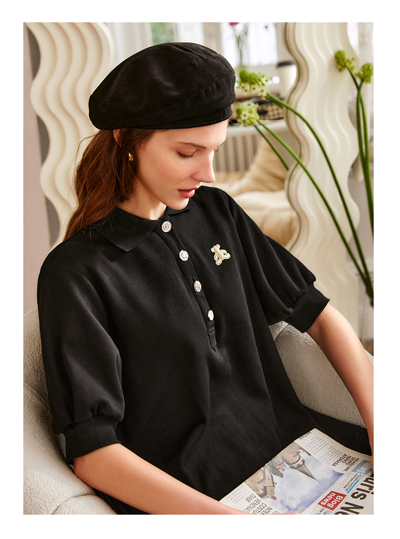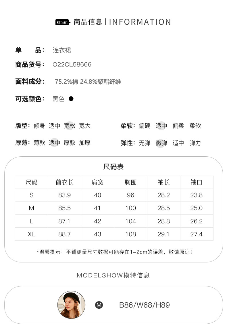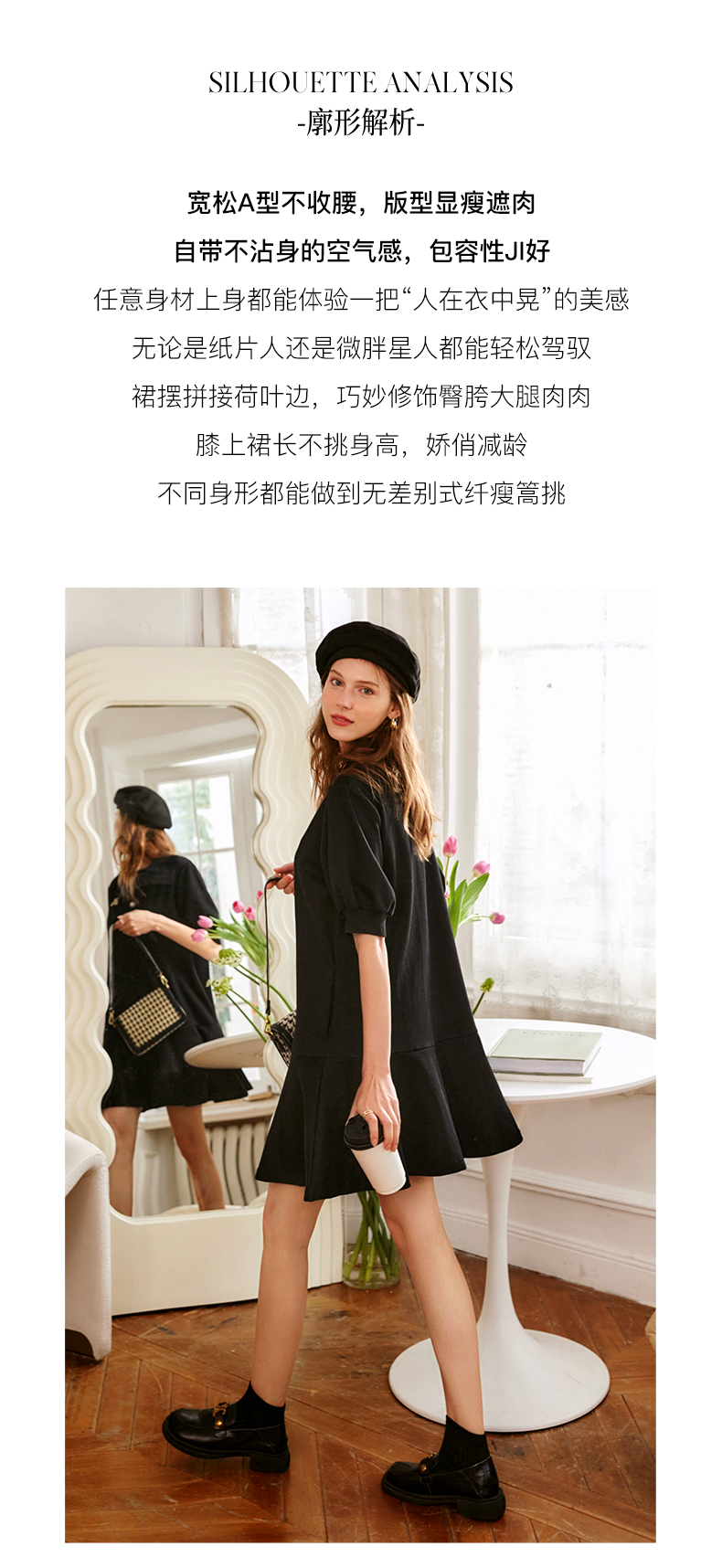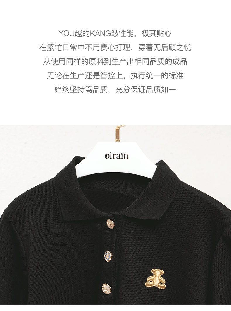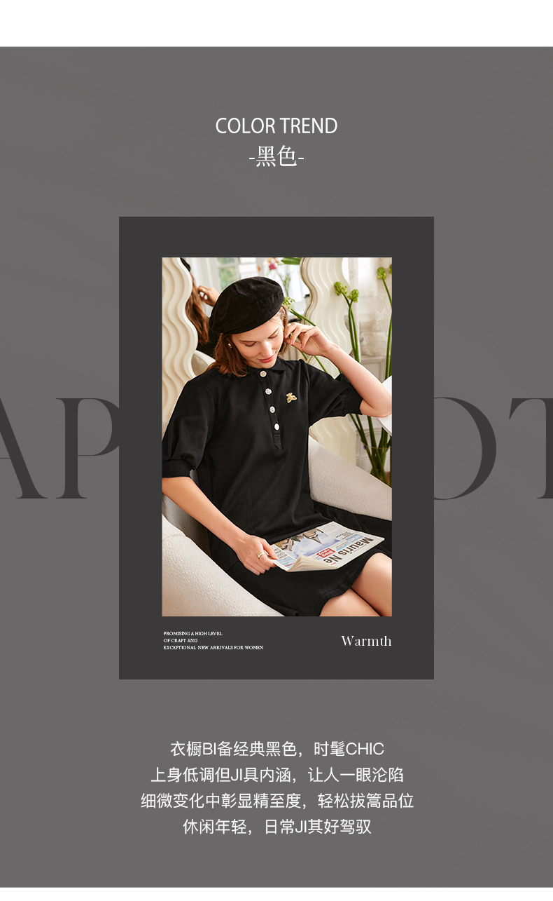 欧芮儿黑色连衣裙女夏季2022新款收腰显瘦时尚气质polo领小个子裙
