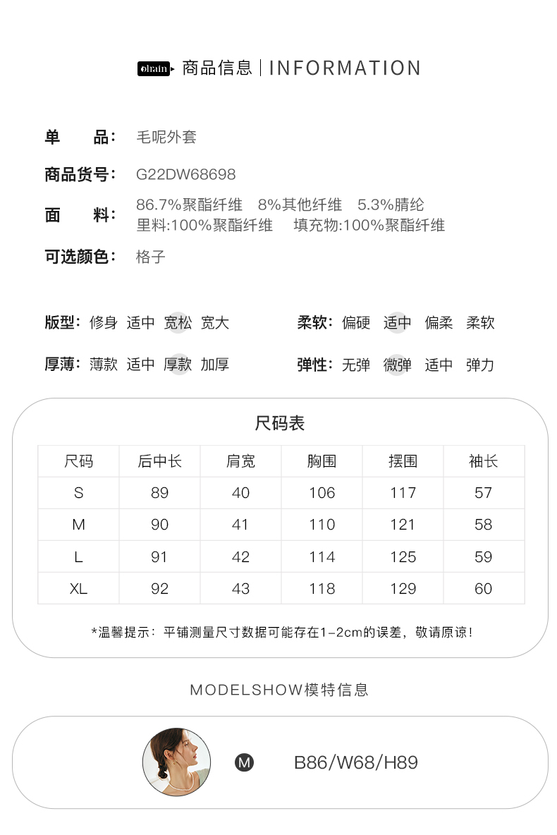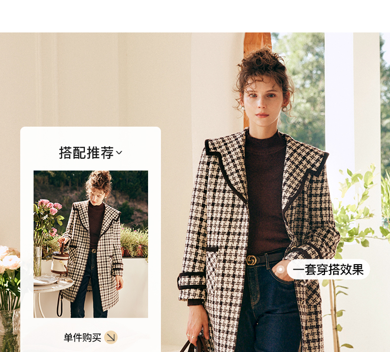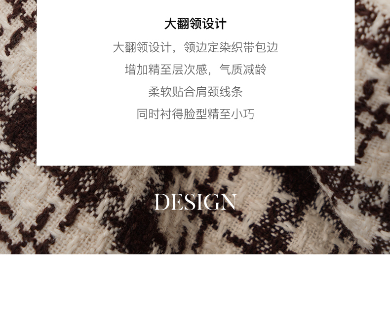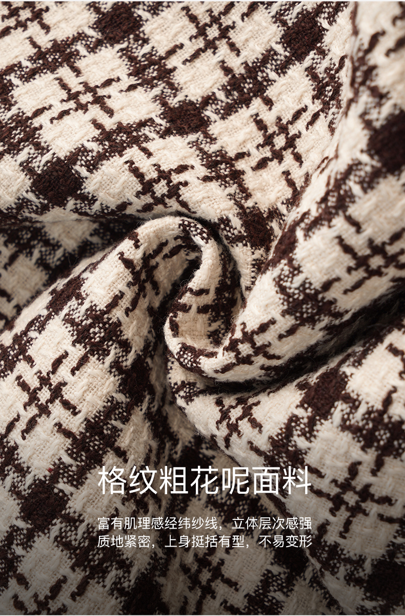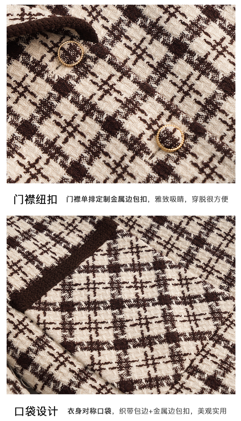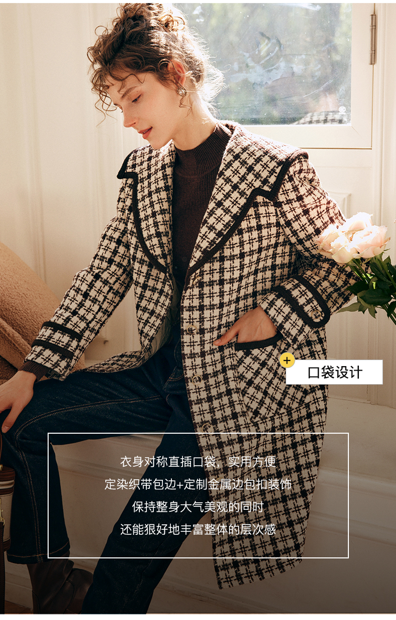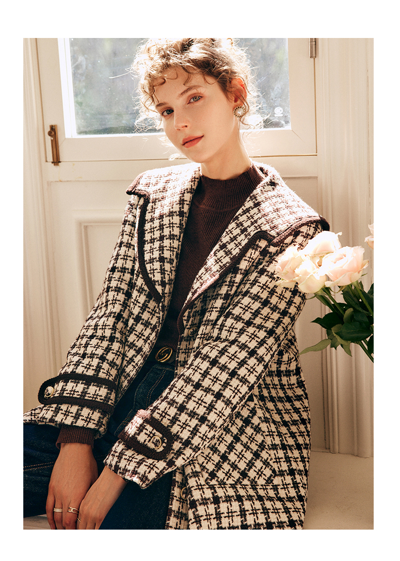 OLrain欧芮儿法式格纹外套女秋冬2022新款复古撞色粗花呢中长大衣