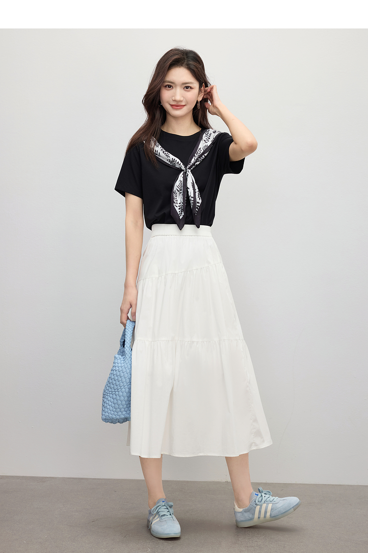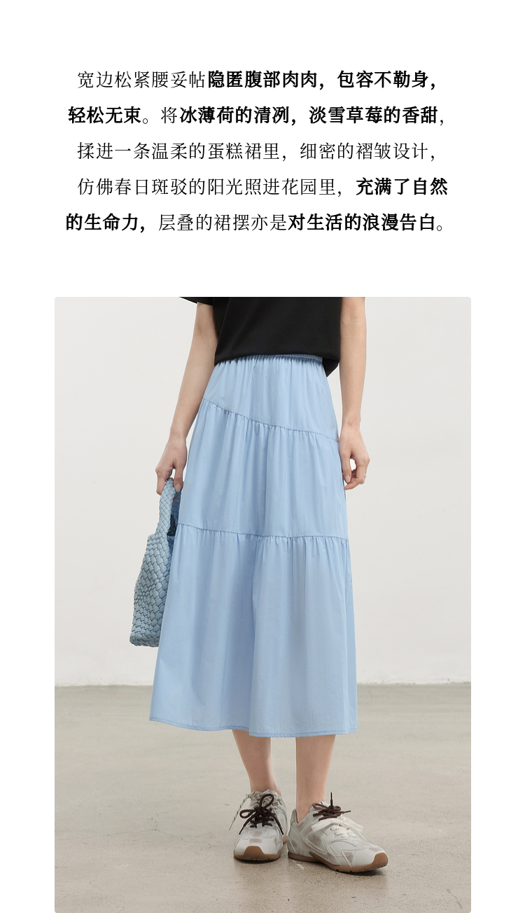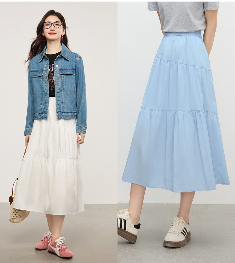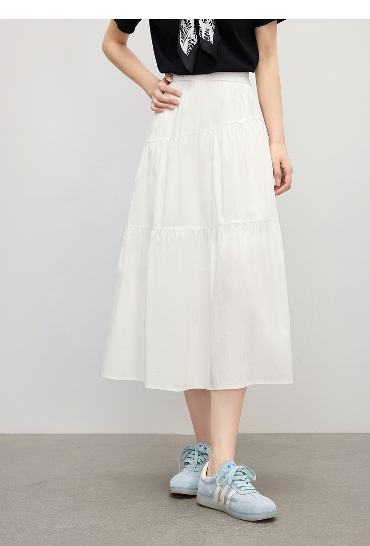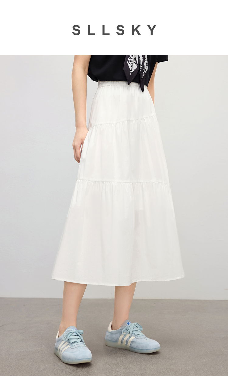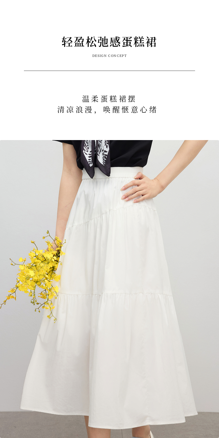 【周四狂欢价】熙世界白色a字半身裙女设计感2025春秋新款高腰宽松层叠蛋糕裙子