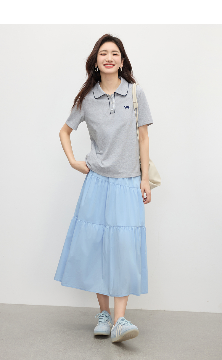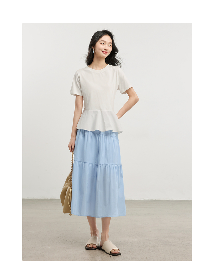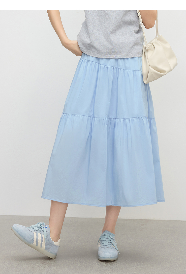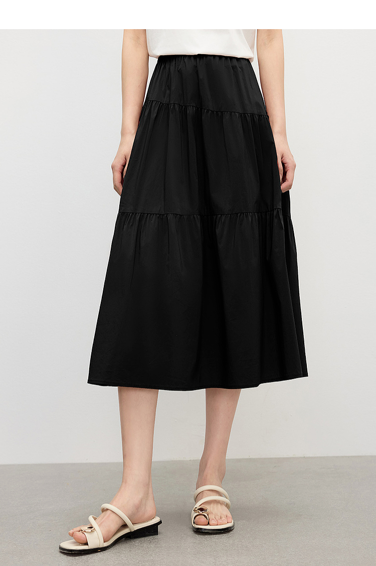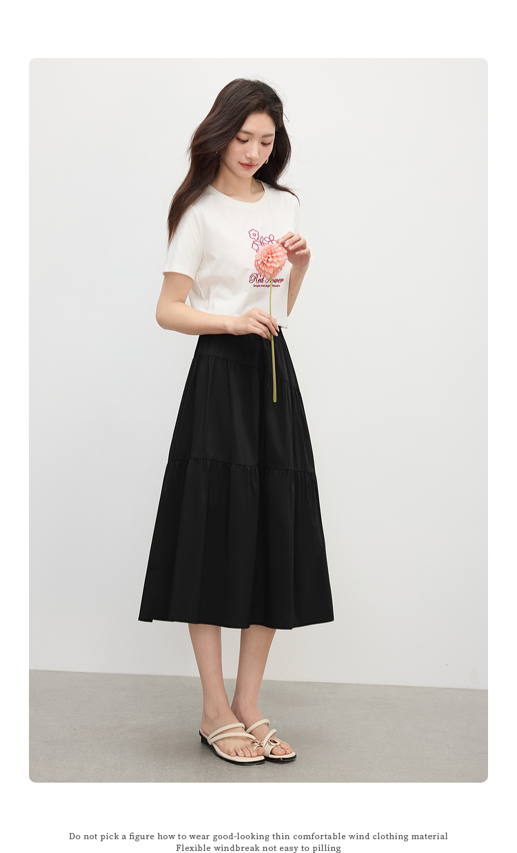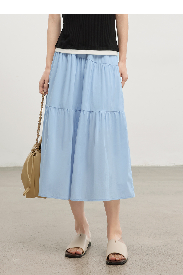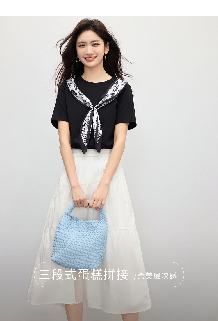 【周四狂欢价】熙世界白色a字半身裙女设计感2025春秋新款高腰宽松层叠蛋糕裙子