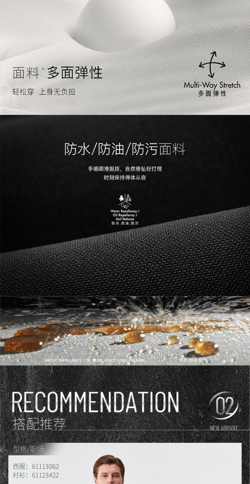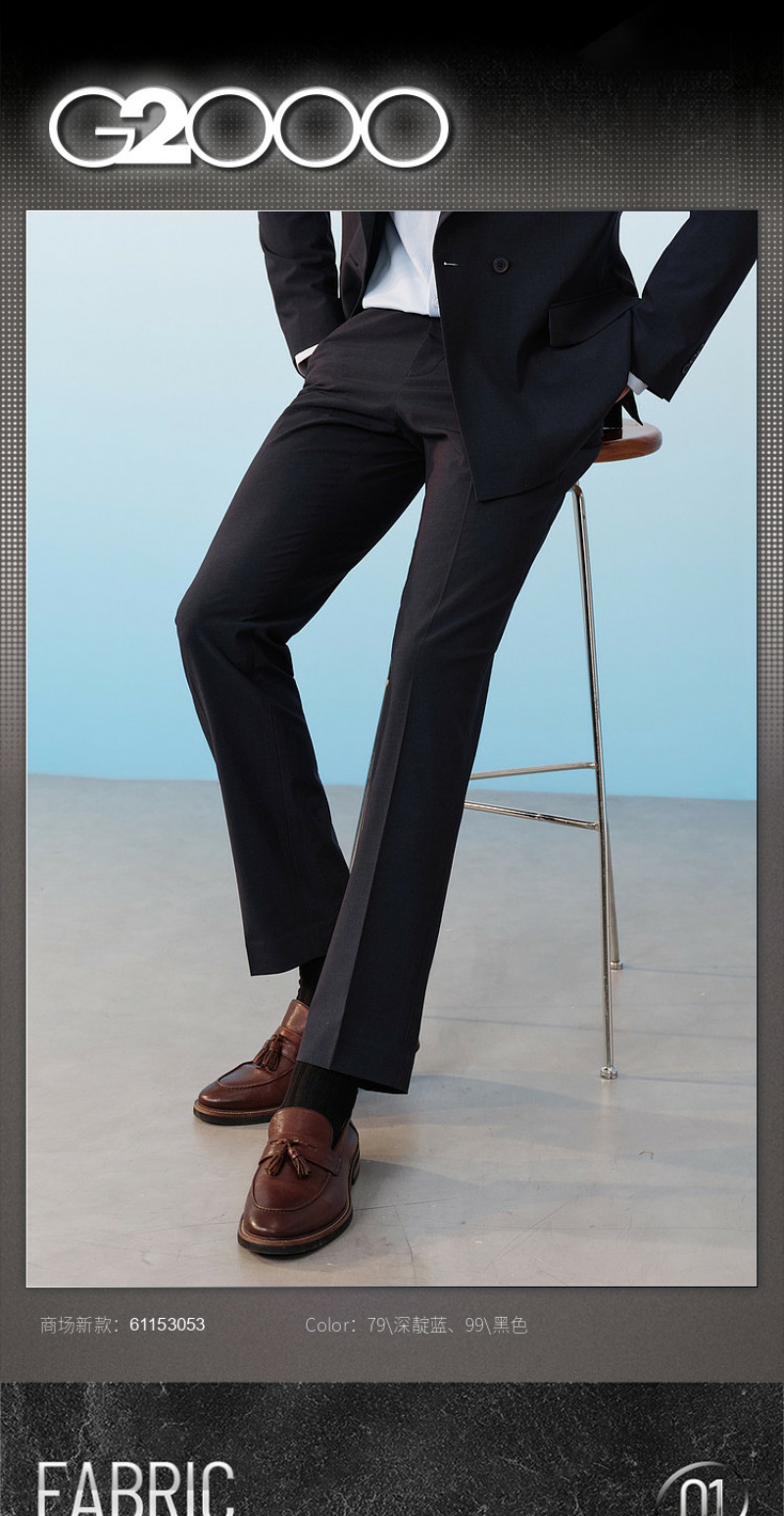 G2000男装SS26商场新款【三防科技/防静电/多面弹】通勤修身西裤61153053