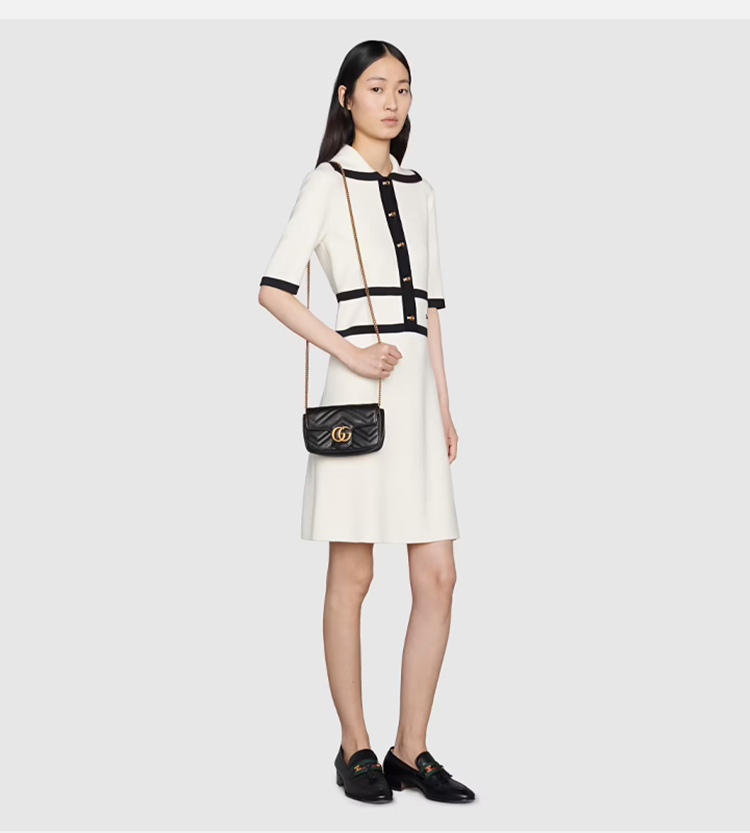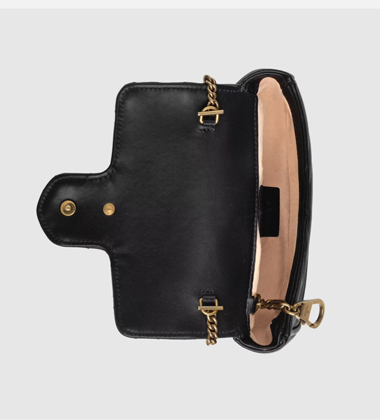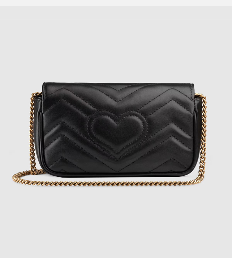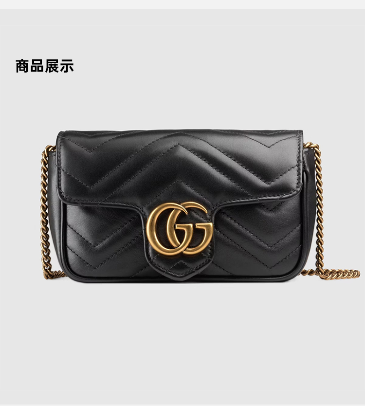 【三】GUCCI 古驰 女士 GG Marmont系列 绗缝皮革超级迷你斜挎单肩包 黑色 476433 DTDCT 1000