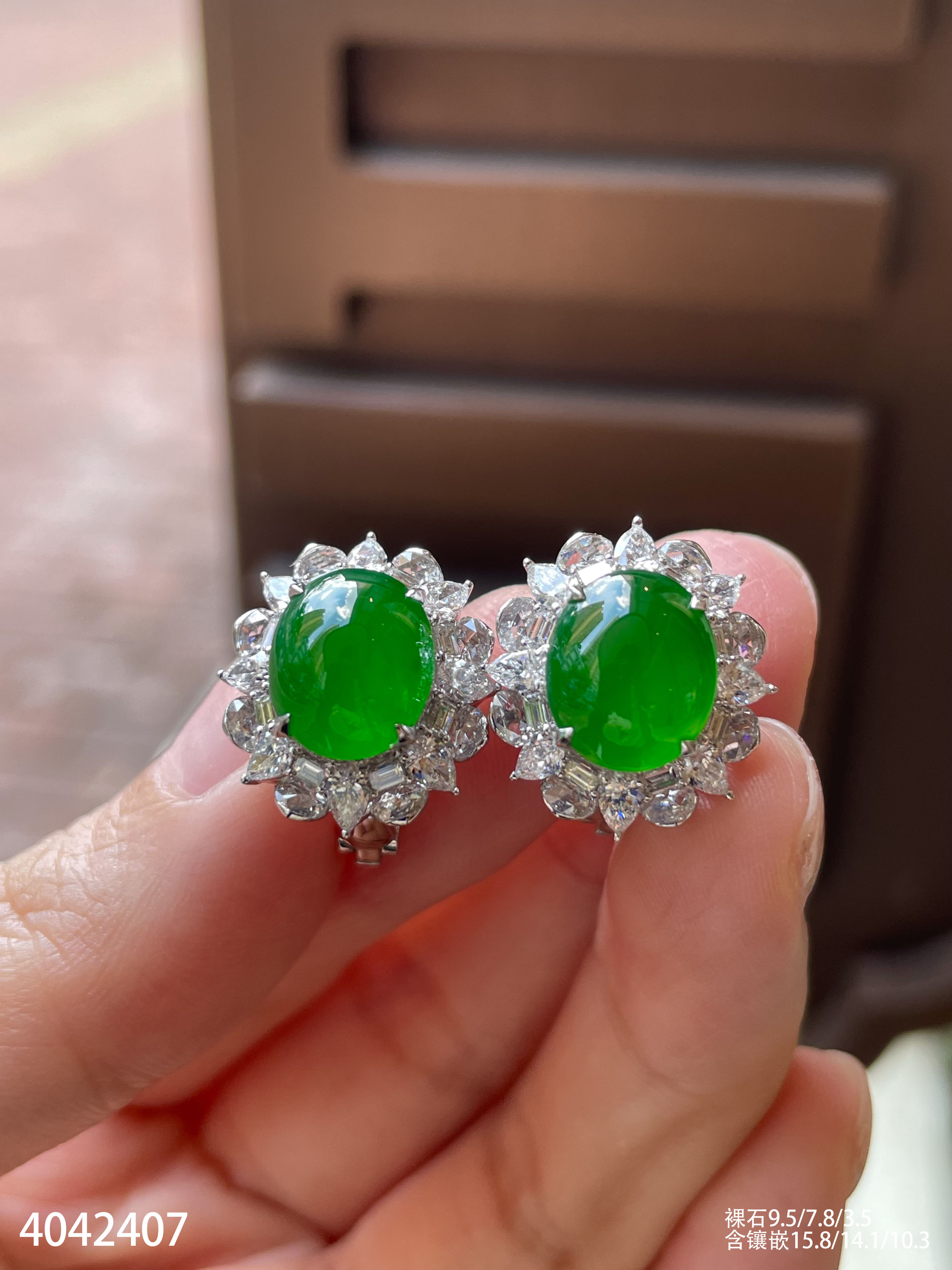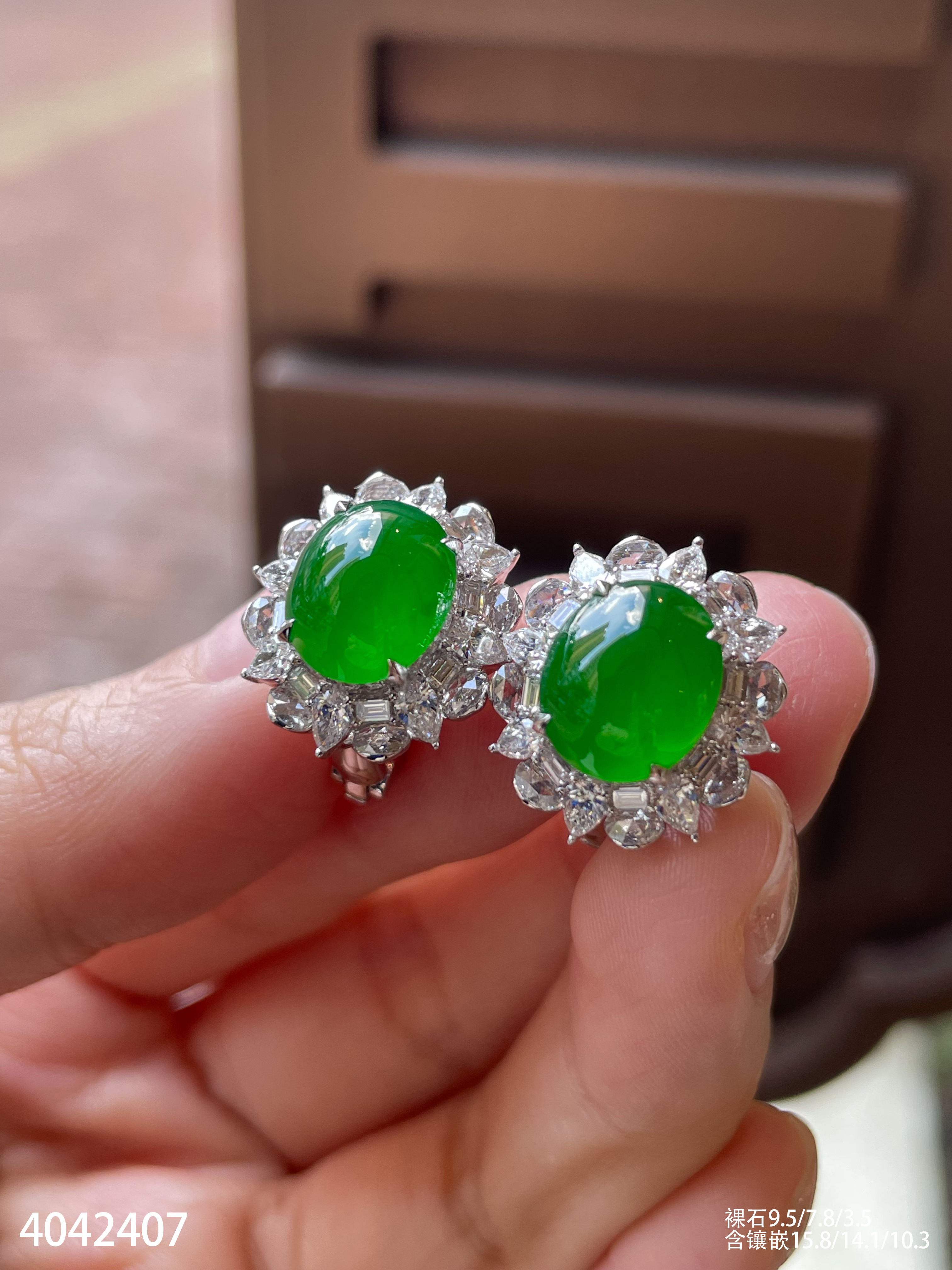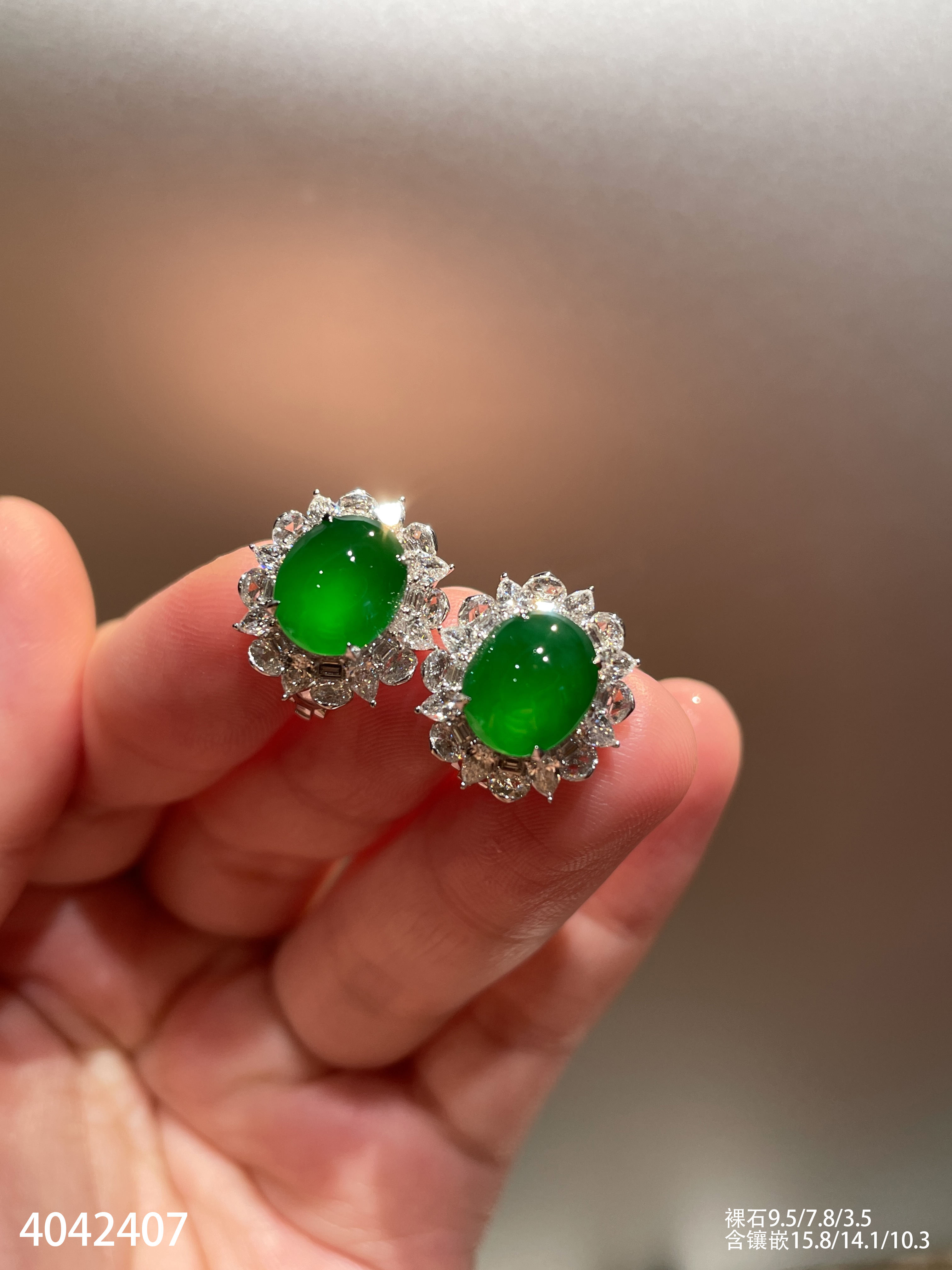 老坑玻璃帝王绿蛋面耳钉【4042407】具体价格微信咨询