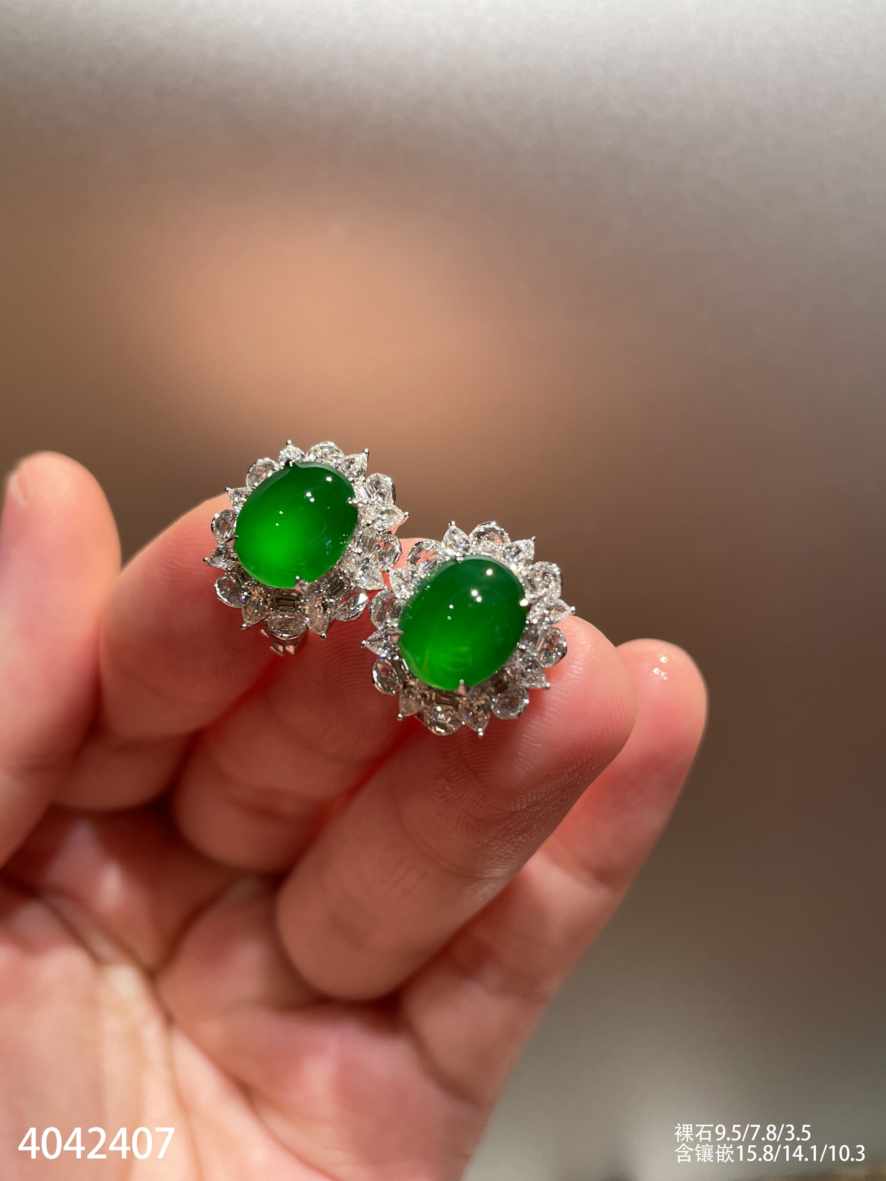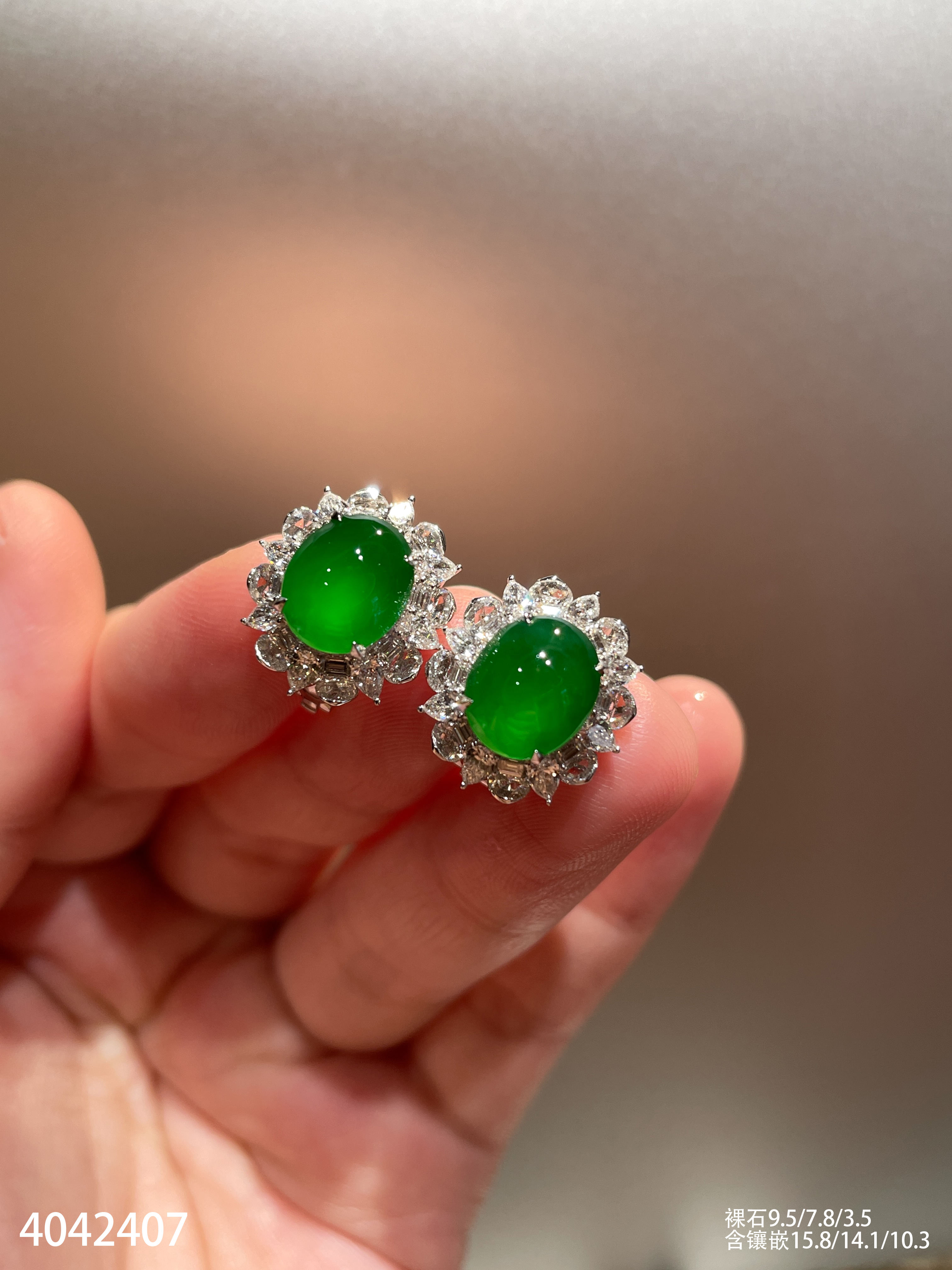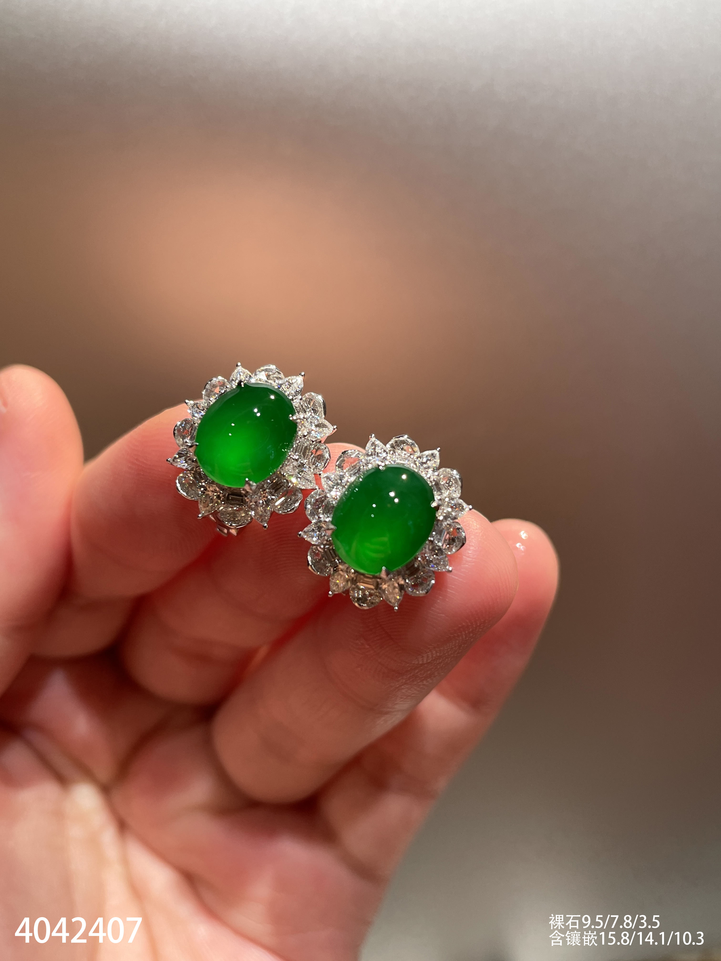 老坑玻璃帝王绿蛋面耳钉【4042407】具体价格微信咨询